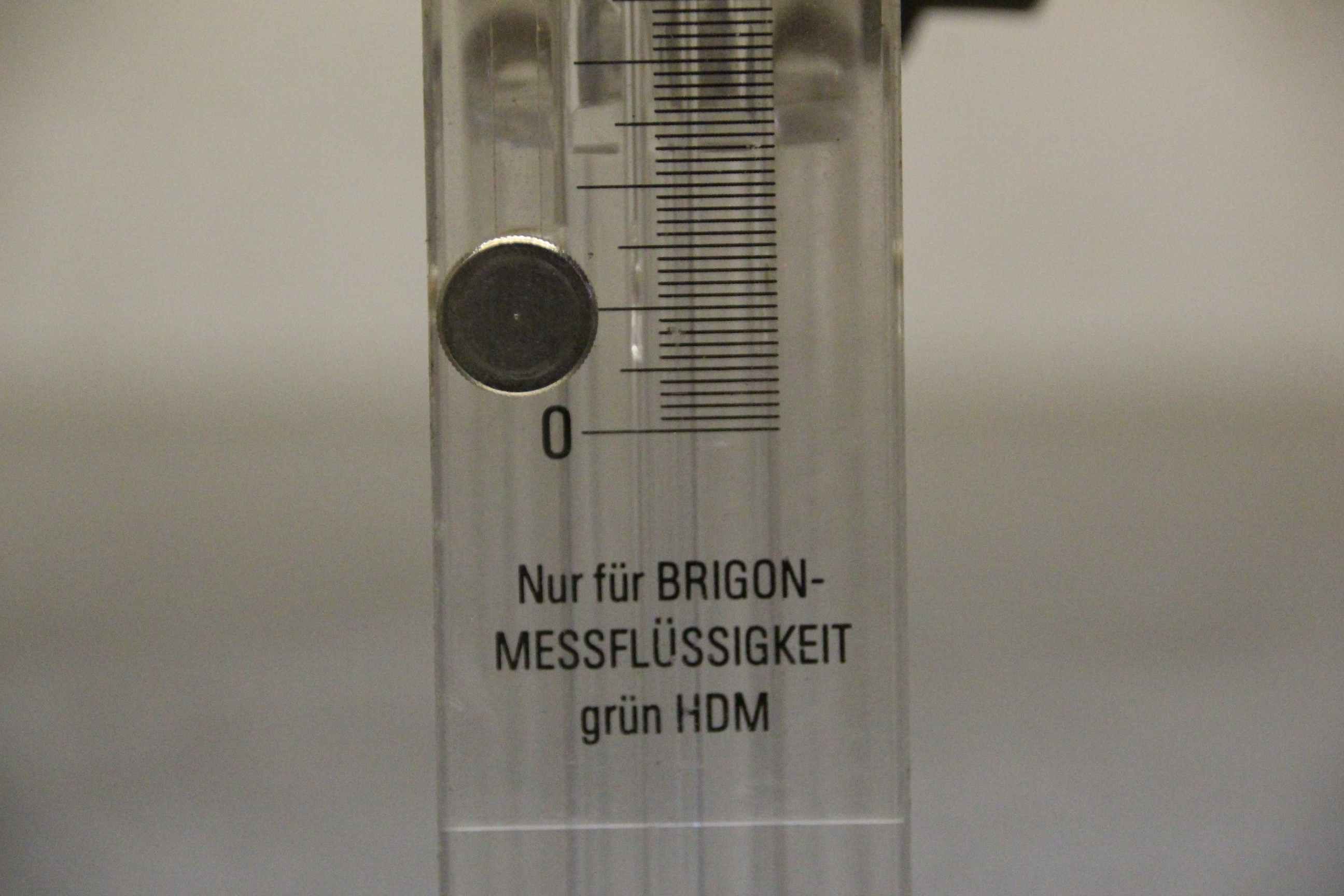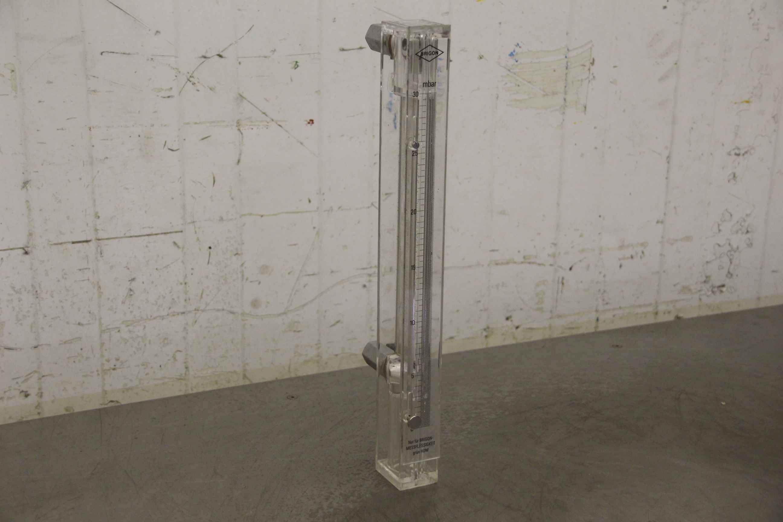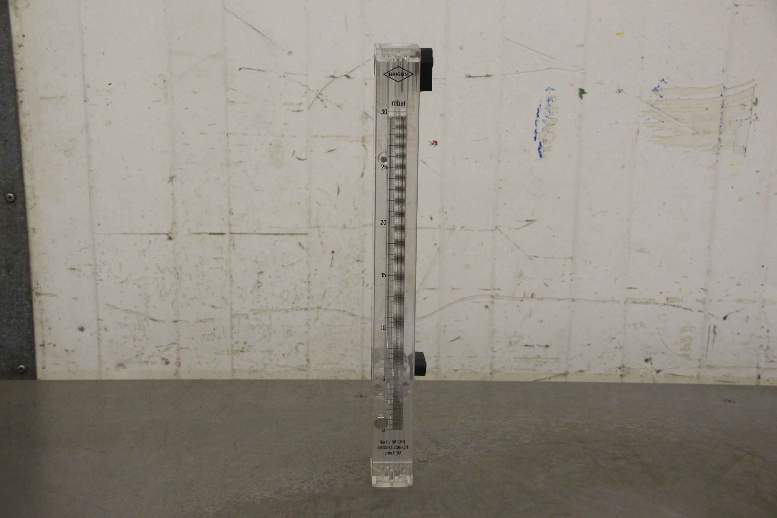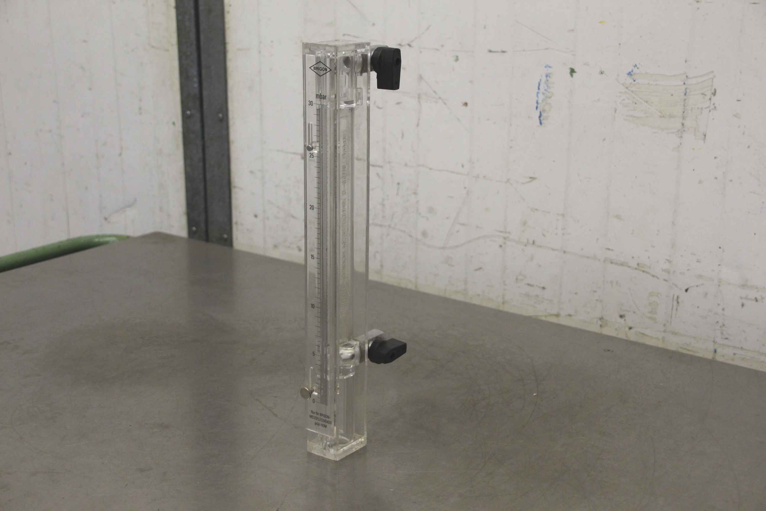 Pressure measuring device, flow measuring device, measuring and control technology, flow meter-Manufacturer: Brigon, accessories pressure measuring devices-Measuring liquid: green HDM-Measuring range: up to 30 mbar-Dimensions: 95/50/H385 mm-Weight: 0.6 kg