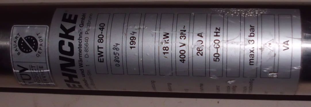 Electric heat exchanger, swimming pool heating, heat exchanger -400 VAC 26.0 A -Pressure: max. 3 bar -Dimensions: 980/180/H180 mm -Weight: 3.1 kg