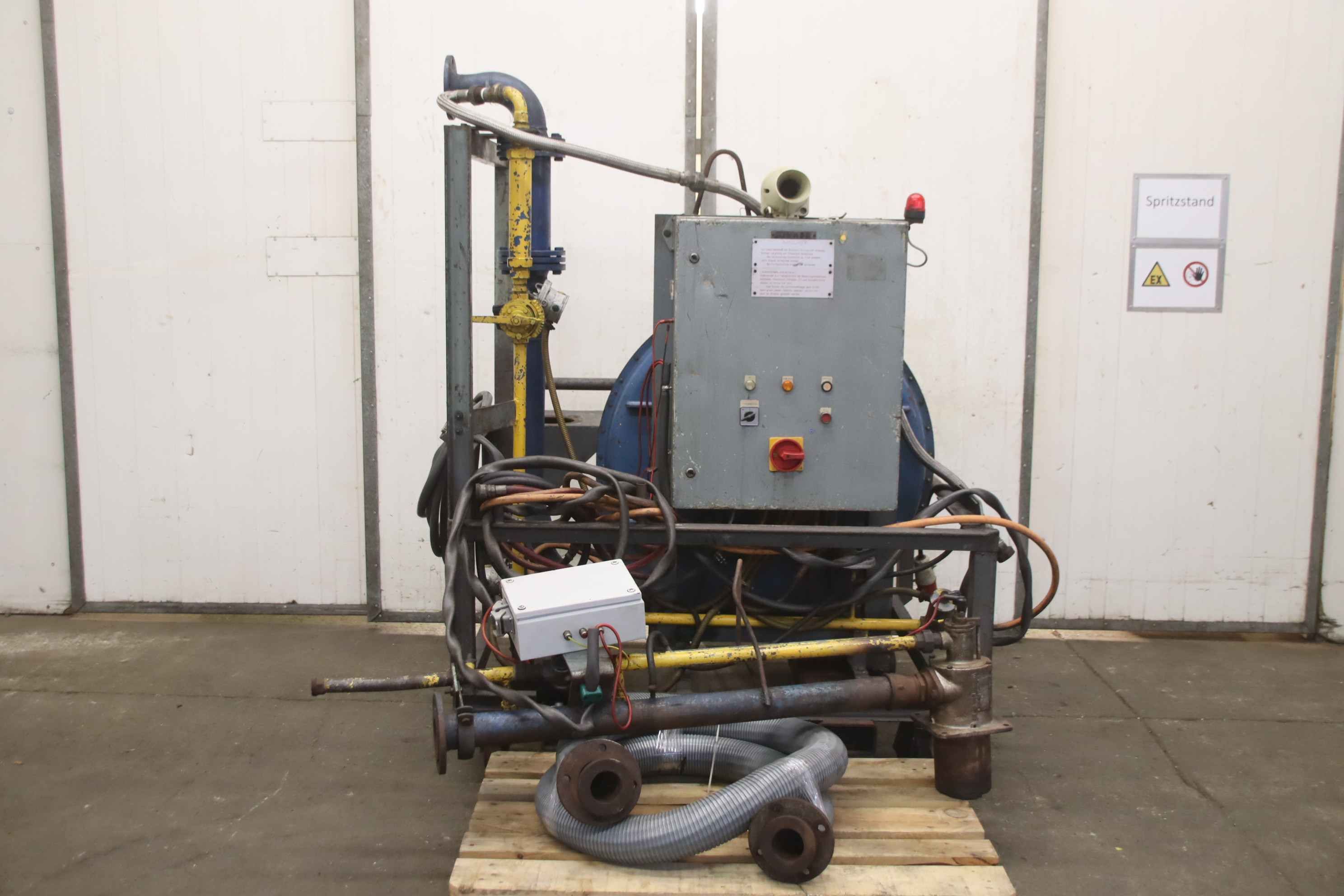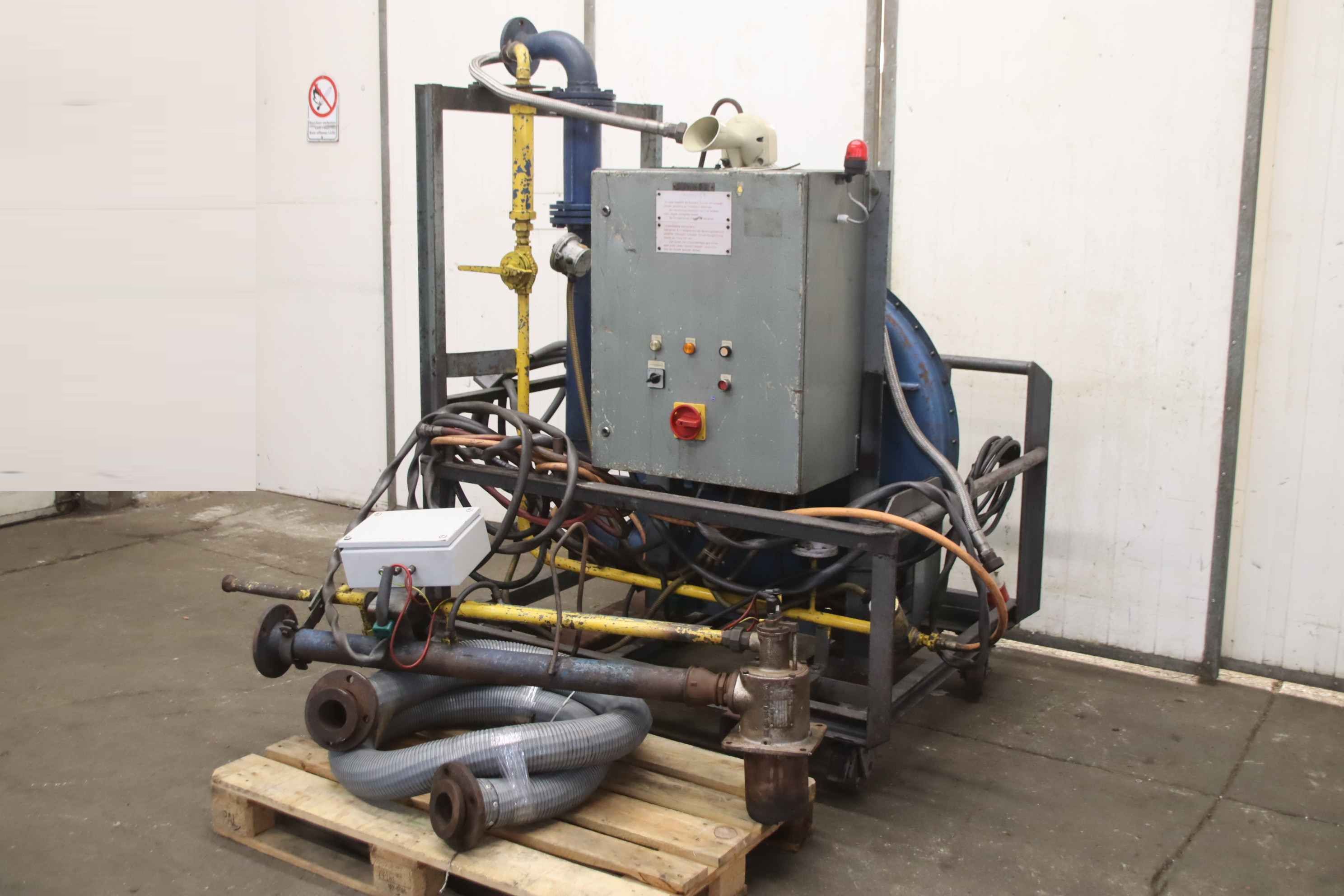 Mold heating, fan heaters, heating, gas heating, construction heating, construction dryers, heating, hall heating, gas heating for casting molds, foundry technology -Manufacturer: Junker, gas heating WA 26532 on a mobile transport frame -Burner: Wiedemann B202 H2-3 175 kW -Blower: Spelleken 5.5 kW volume flow 500 m³/h -Individual components/accessories: see photos -Dimensions 1500/1250/H2010 mm -Weight 625 kg