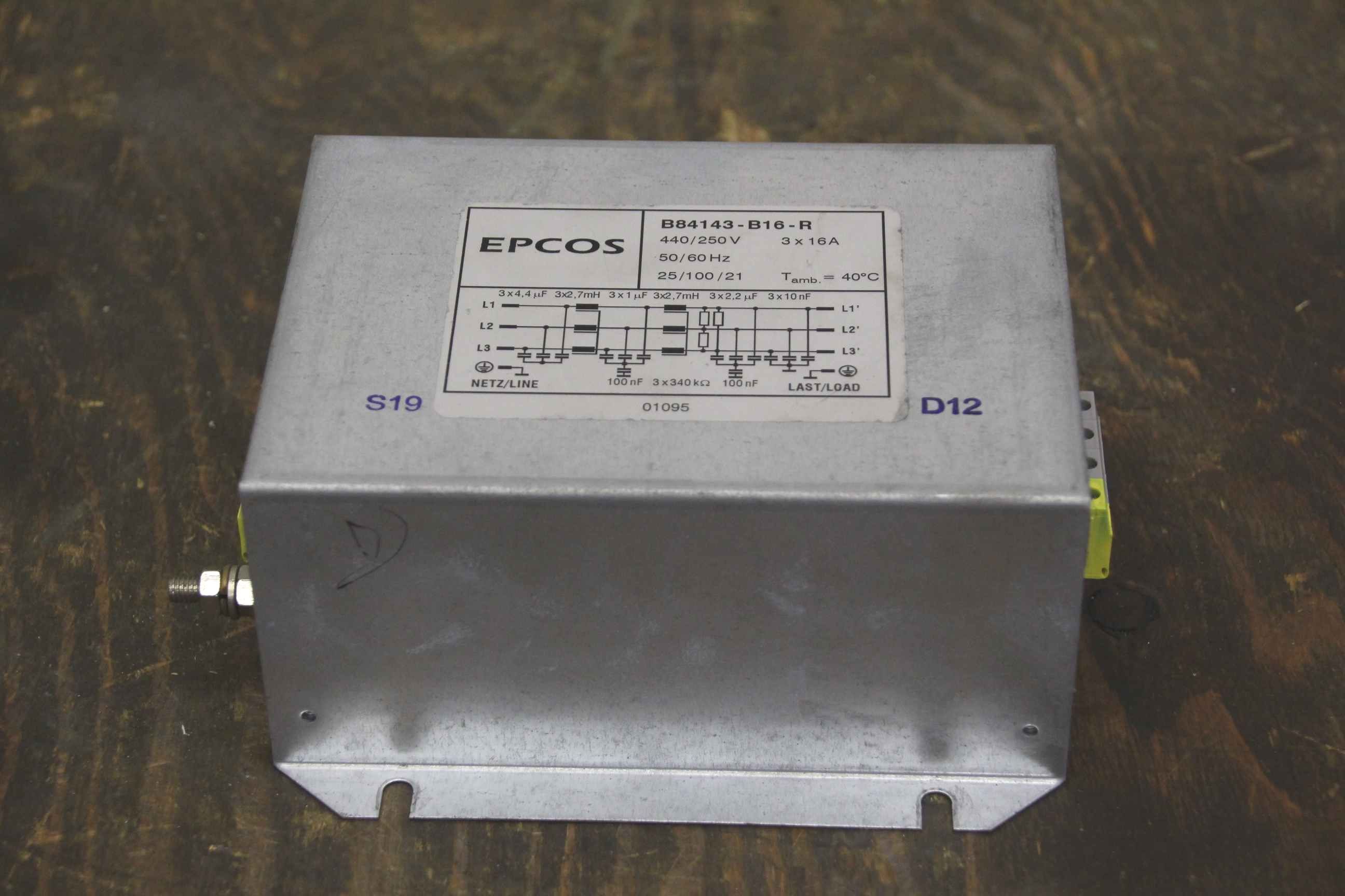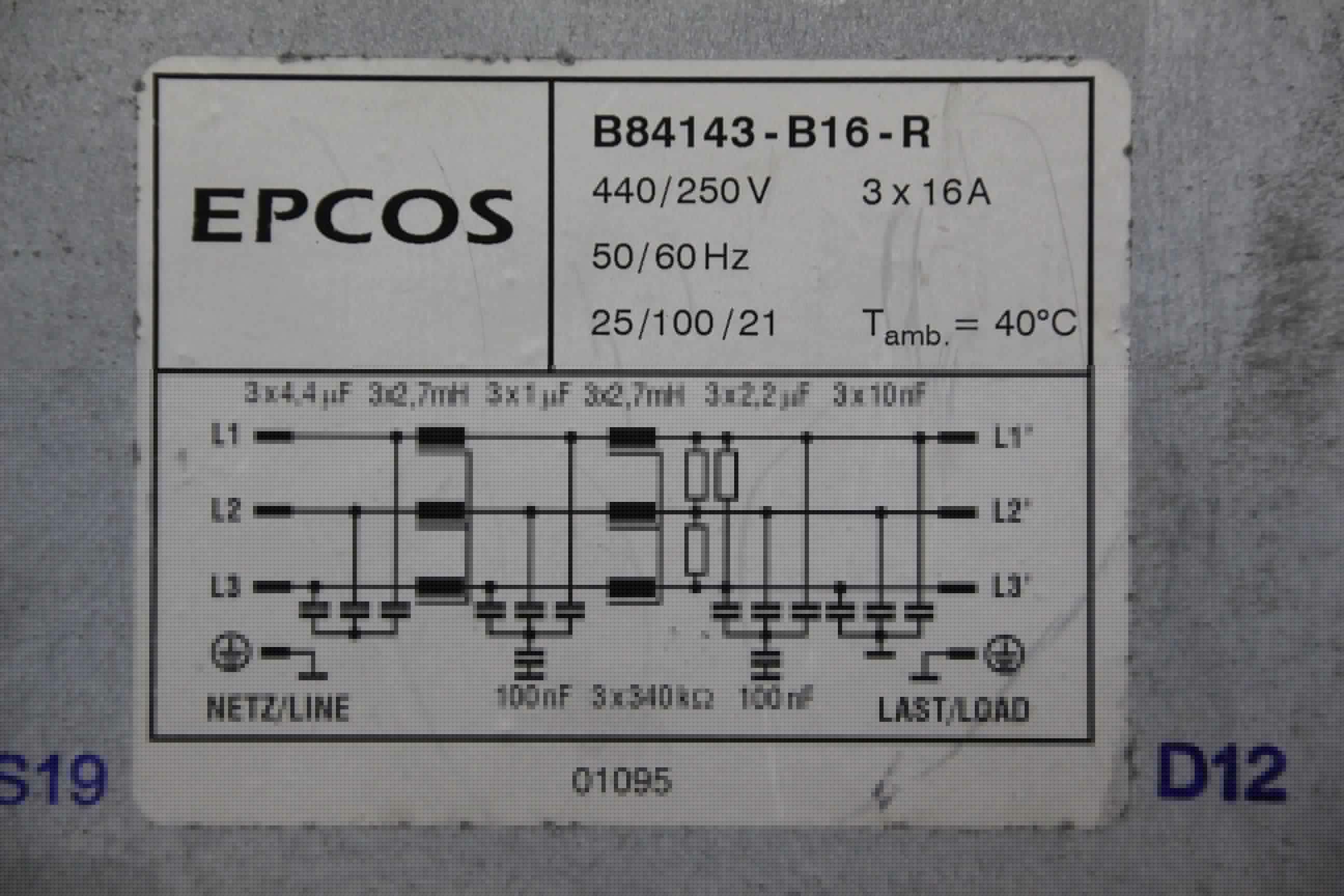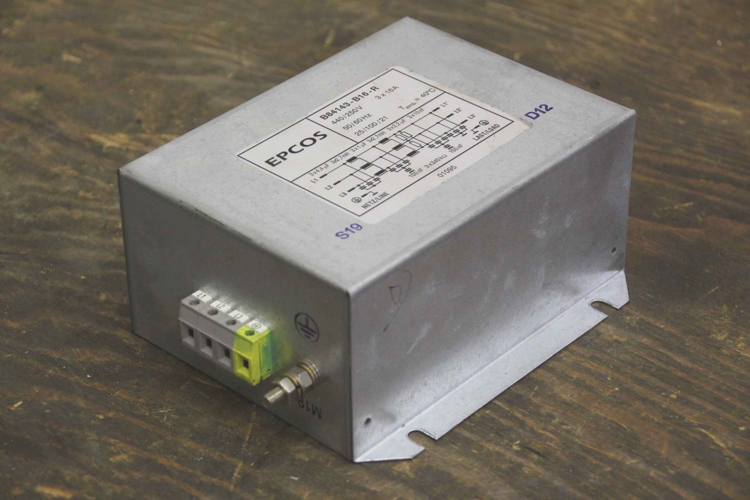 Line filters, power line filters, three-phase filters, three-phase line filters-Manufacturer: EPCOS-Type: FS.06.3.50-Voltage: 440/250 V/3 x 16 A/50-60 Hz-Dimensions: 200/155/H80 mm-Weight: 3.6 kg