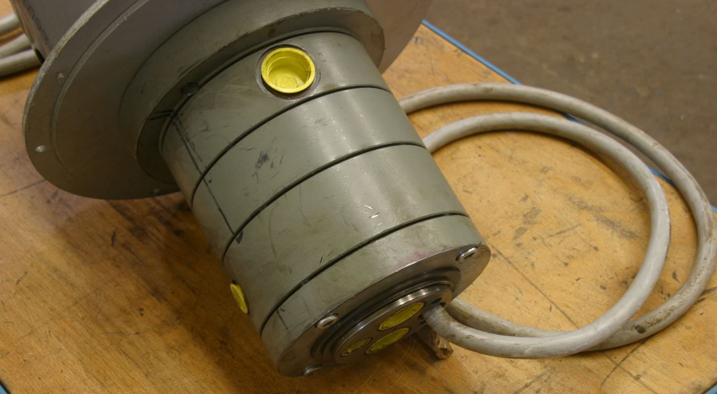 Slip ring, rotary joint, rotary transmitter, slip ring rotor, rotary head slip ring, column slip ring, slip ring transmitter -comes from: HUSS Rides, manufacturer of leisure facilities -with: rotary valve -for: Hydraulic oil 2x -for: Air 1x -for: electricity 11x