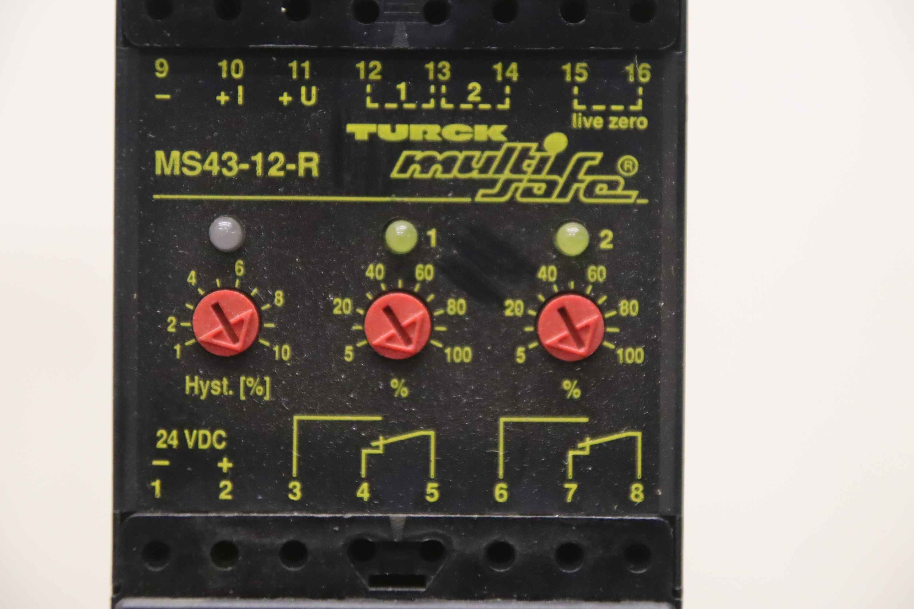 Limit value signaller, logic controller, trigger point control, multisafe switching amplifier-Manufacturer: Turck, multi safe limit value signal generator ovp-Type: MS43-12-R-Number: 3x module available-Price per piece-Dimension box: 130/60(H80 mm-Weight: 0.3 kg/pc.