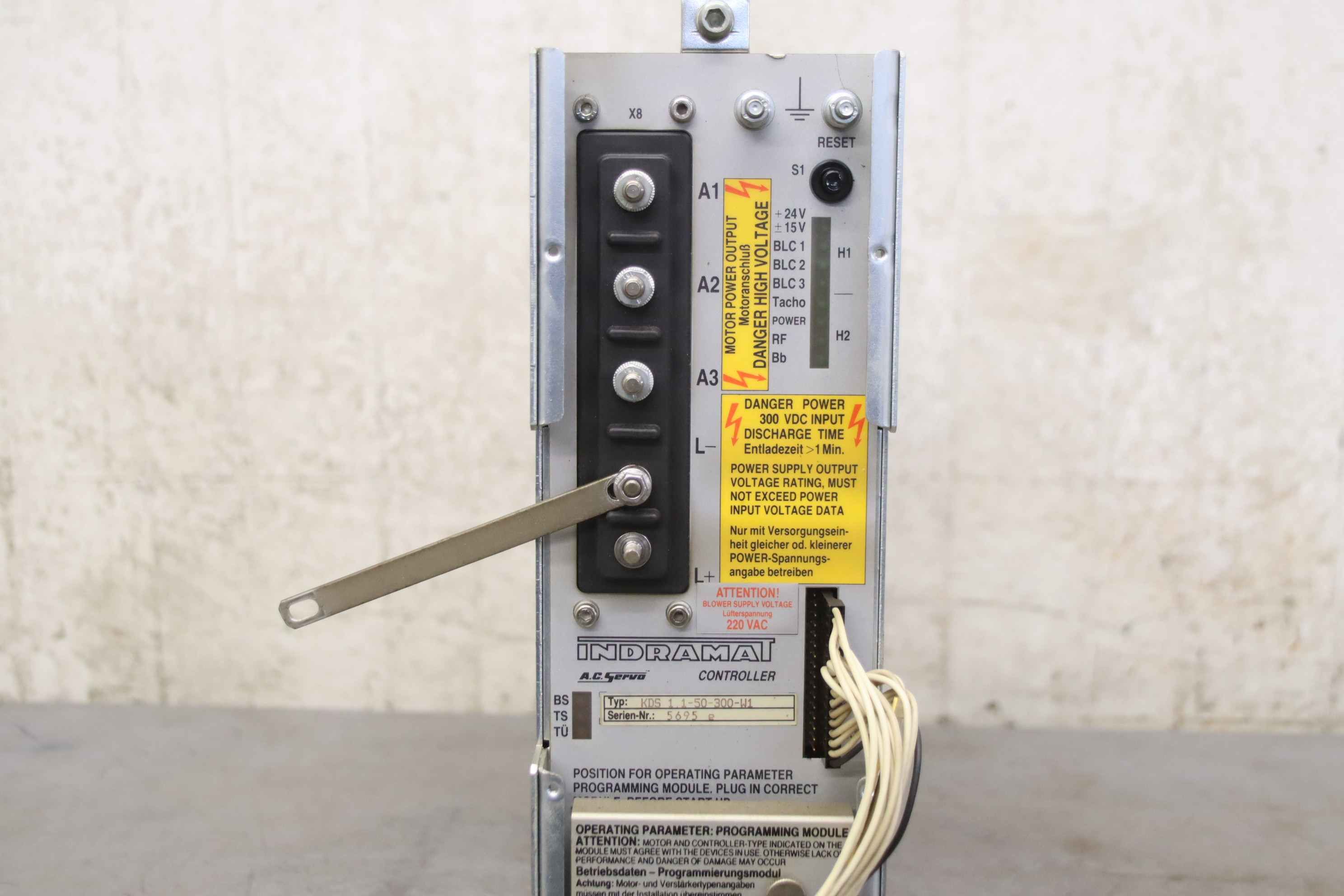 Servo drive, servo card, output module, CPU card, input processor, power supply, control card, input card, controller, converter, controller-Manufacturer: Indramat, AC servo controller from CNC milling machine MAHO MH 800C-Type: KDS 1.1-50-300-W1 MOD 4/1X108-091-Quantity: 1x servo controller available-Dimension: 490/110/H390 mm-Weight: 15 kg