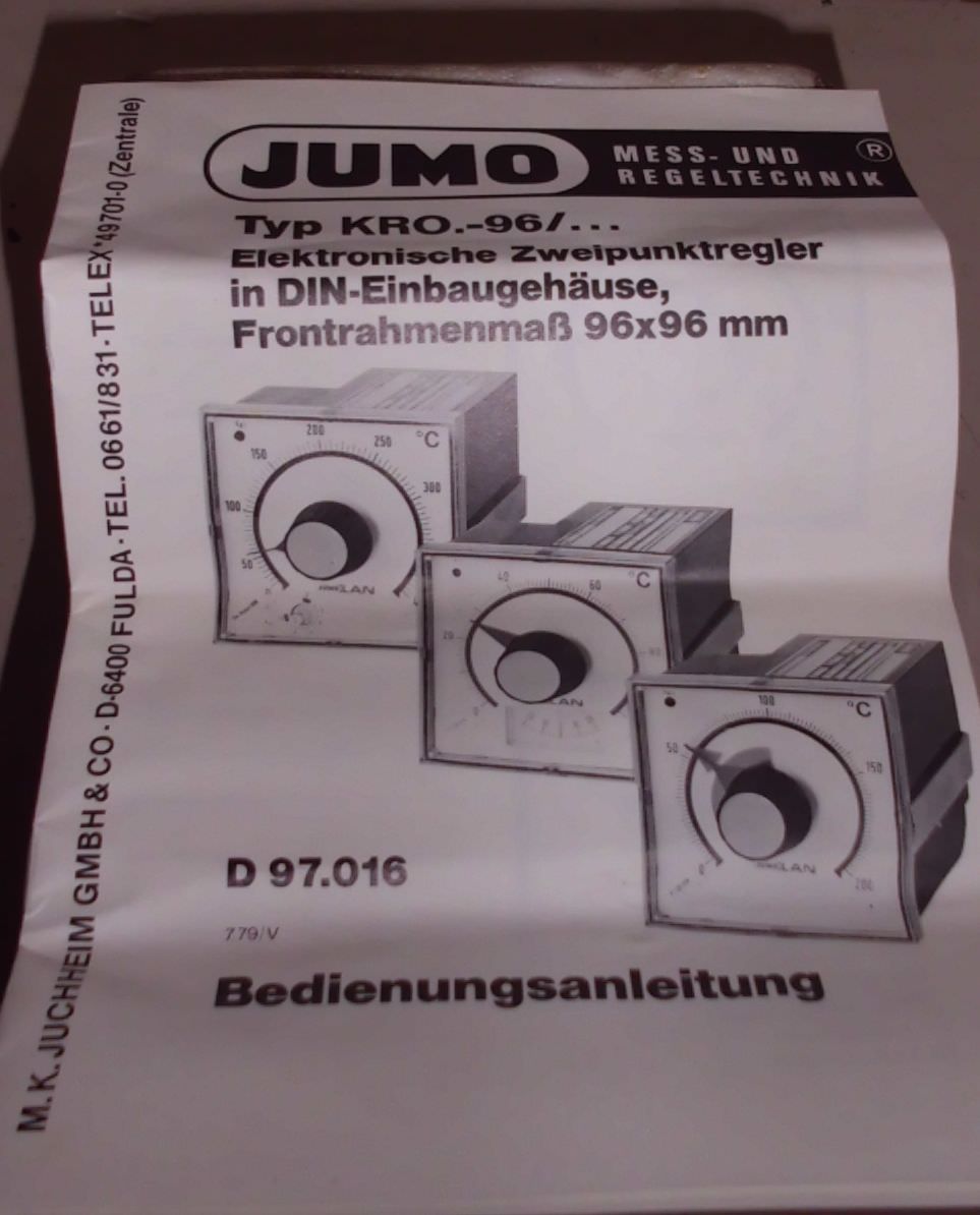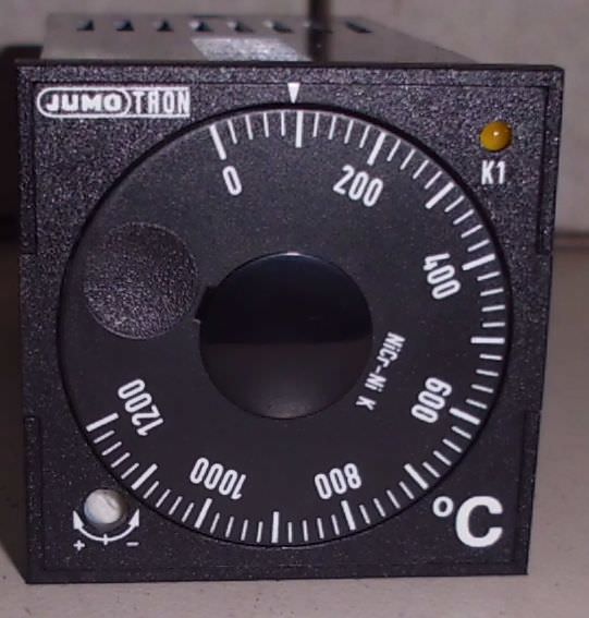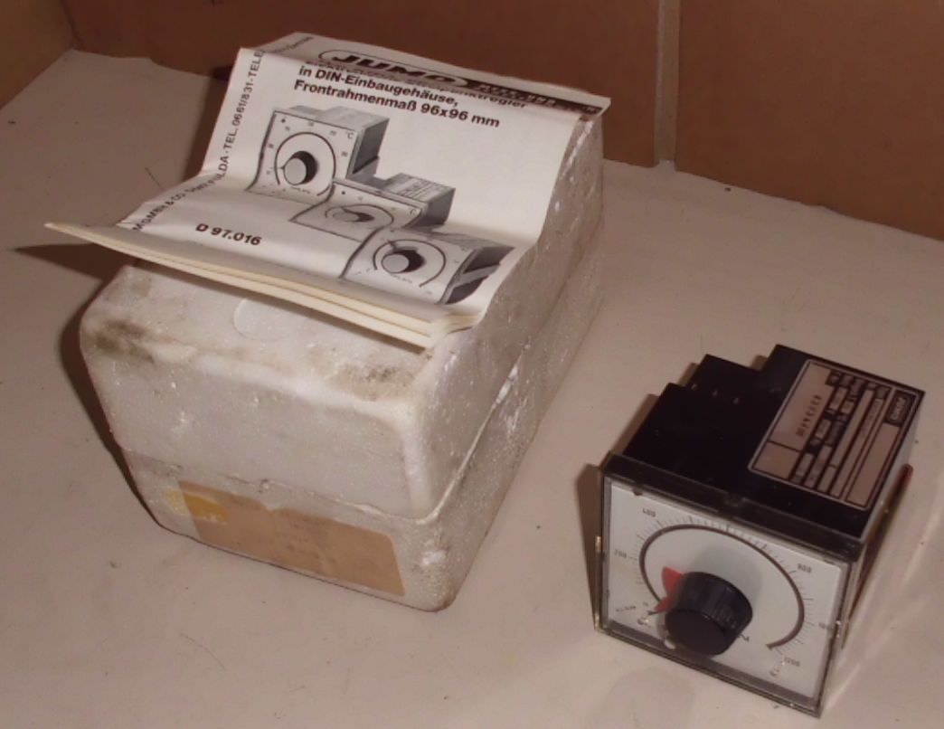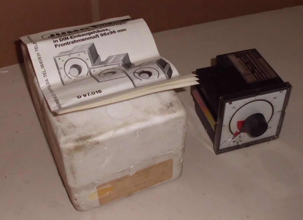 Temperature controller, temperature sensor, setting for temperature, signal converter, temperature converter, temperature limiter, electronic temperature controller-Manufacturer: Jumo, temperature controller 0 to 250 °C-Type: unfortunately without type designation-Art.Nr.: 624603-10114-JR10A-Dimension: 130/100/H95 mm-Weight: 0.5 kg