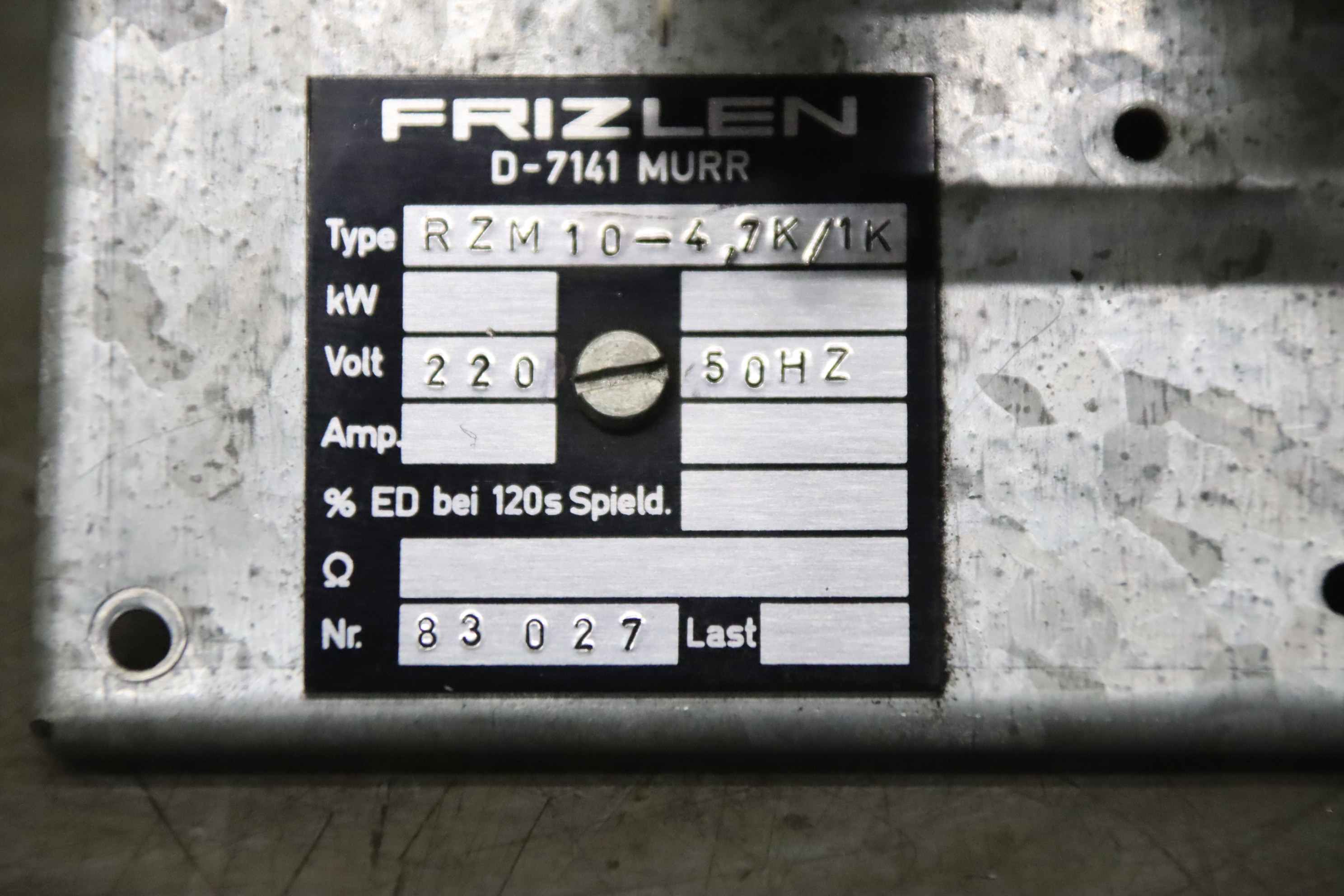 Power resistor, wire potentiometer, resistor, braking resistor, tube resistor -Manufacturer: Frizlen, power resistor -Type: RZM10-4.7/1K -Voltage: 220 V / 50 Hz -Dimensions: 220/110/95 mm -Weight: 0.9 kg