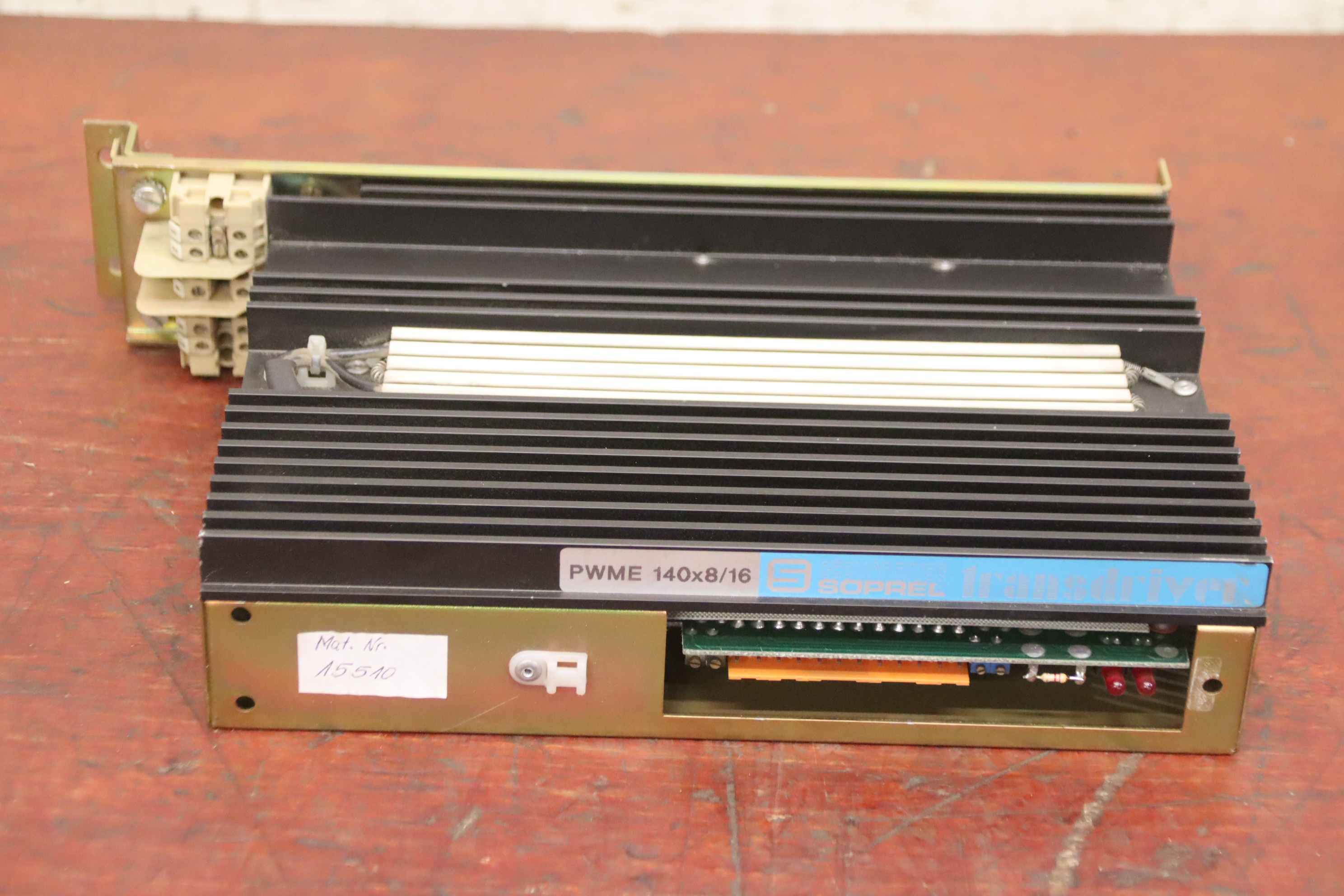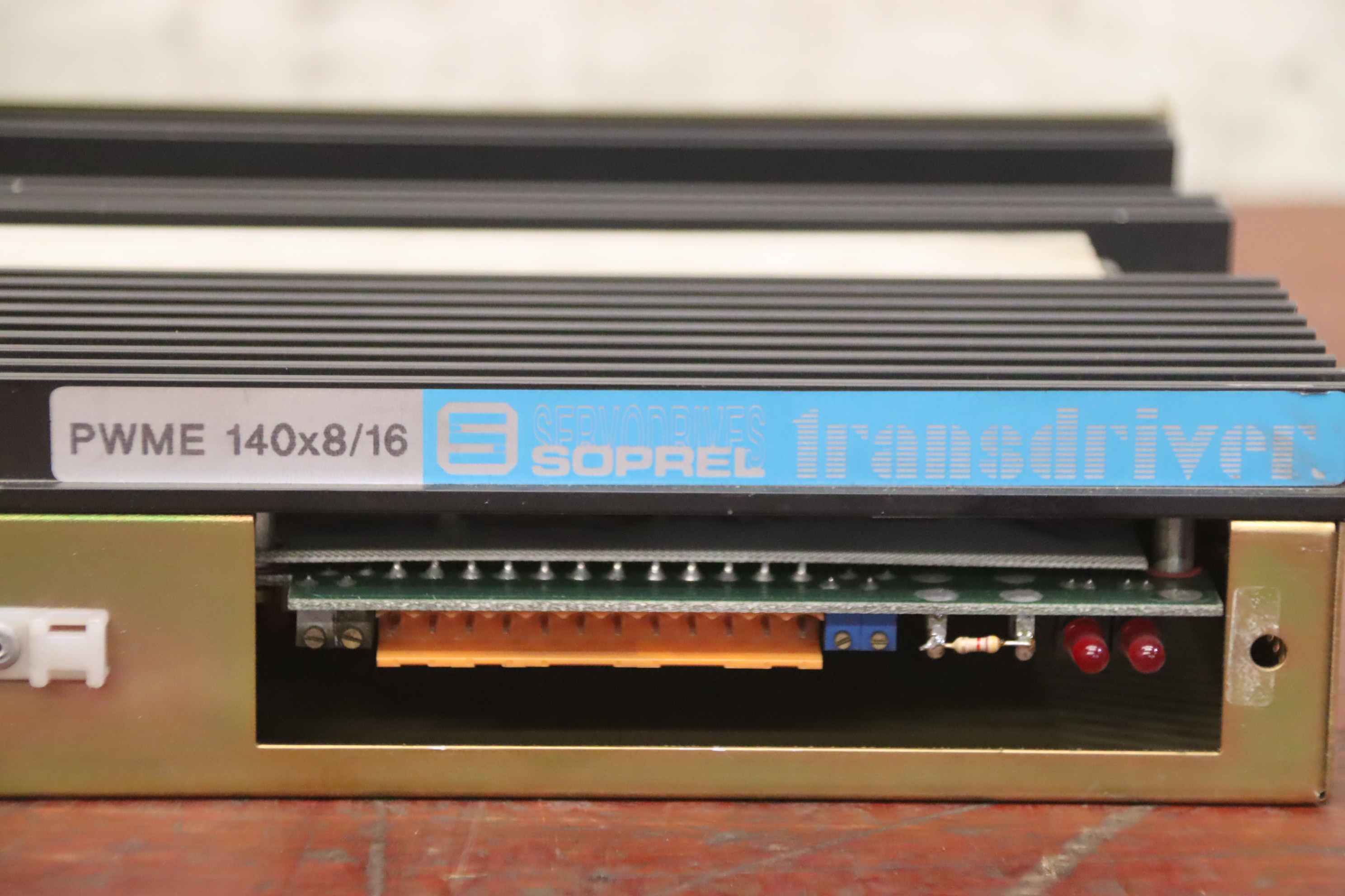 Servo drive, servo card, output module, CPU card, frequency converter, frequency converter, drive converter, controller, variable speed drive, servo controller, control, converter, PLC control, supply unit, converter, power module, U/E module-Manufacturer: Soprel, servo controller type PWME 140x8/16-PN.: 7.31.715 41916 / 1088-Quantity: 1x module available-Dimensions: 320/210/H65 mm-Weight: 2.6 kg