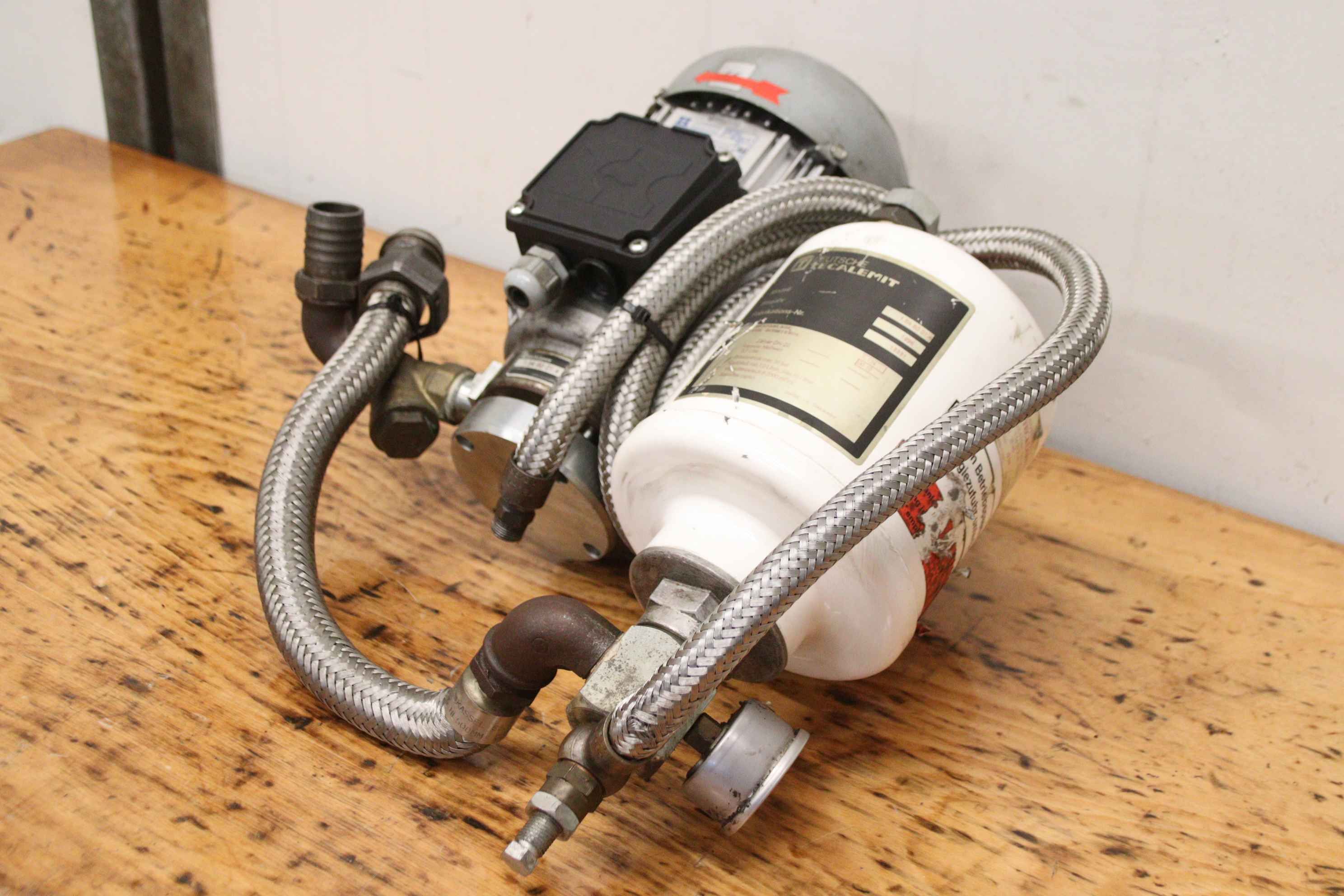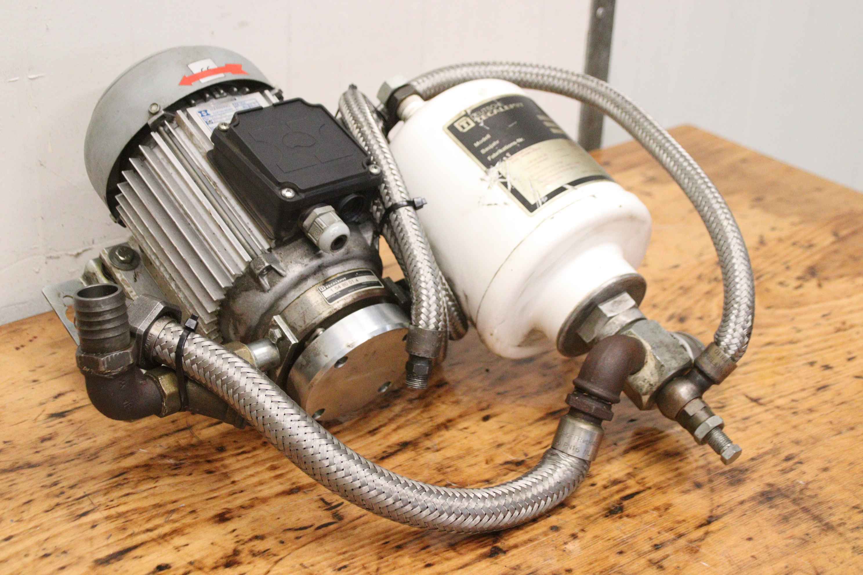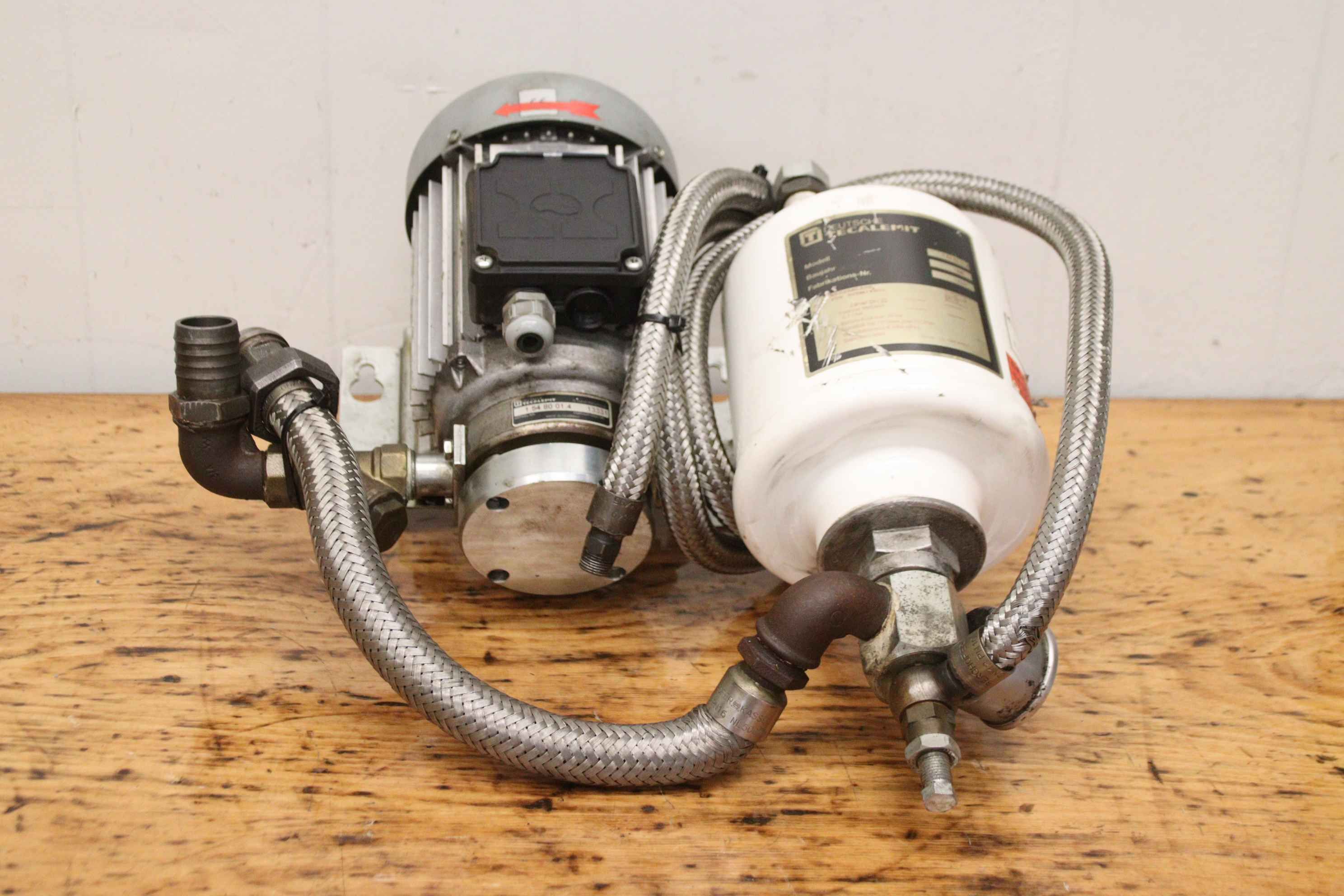 Fuel gauge, oil pump, oil dispensing system, oil station, fuel pump, tank data recording, tank system display, oil cabinet, fresh oil pump-Manufacturer: Tecalemit, electric pump for fresh oil-Type: 1.54 80 01.4-Volume flow: 1 to 10 l/min-Engine: Hanning 0.55 kW-Pressure vessel: volume 2.8 liters-Individual components: see photos-Number: 2x oil cabinet available-Price: per piece-Dimensions: 500/480/H250 mm-Weight: 19 kg/piece