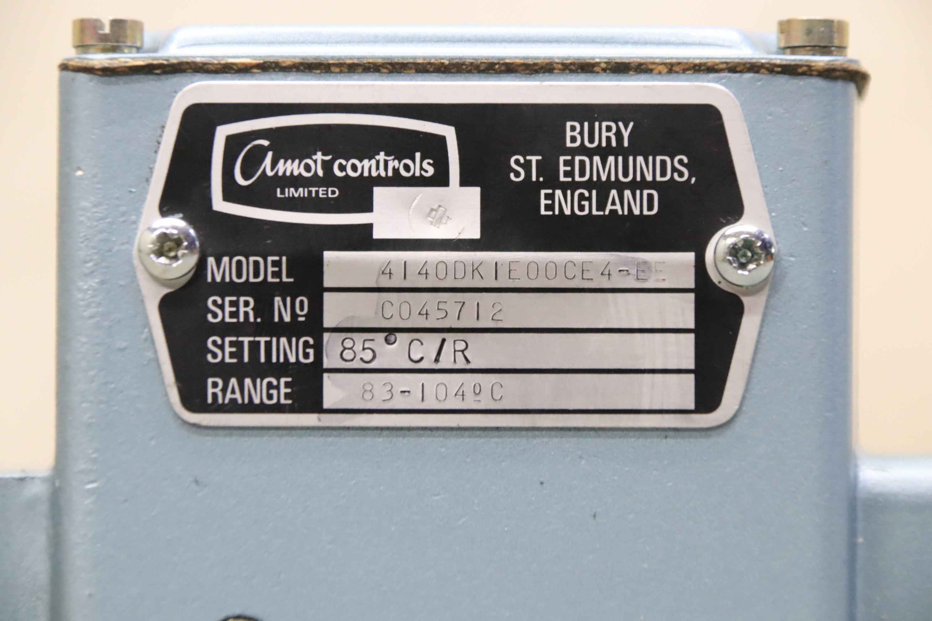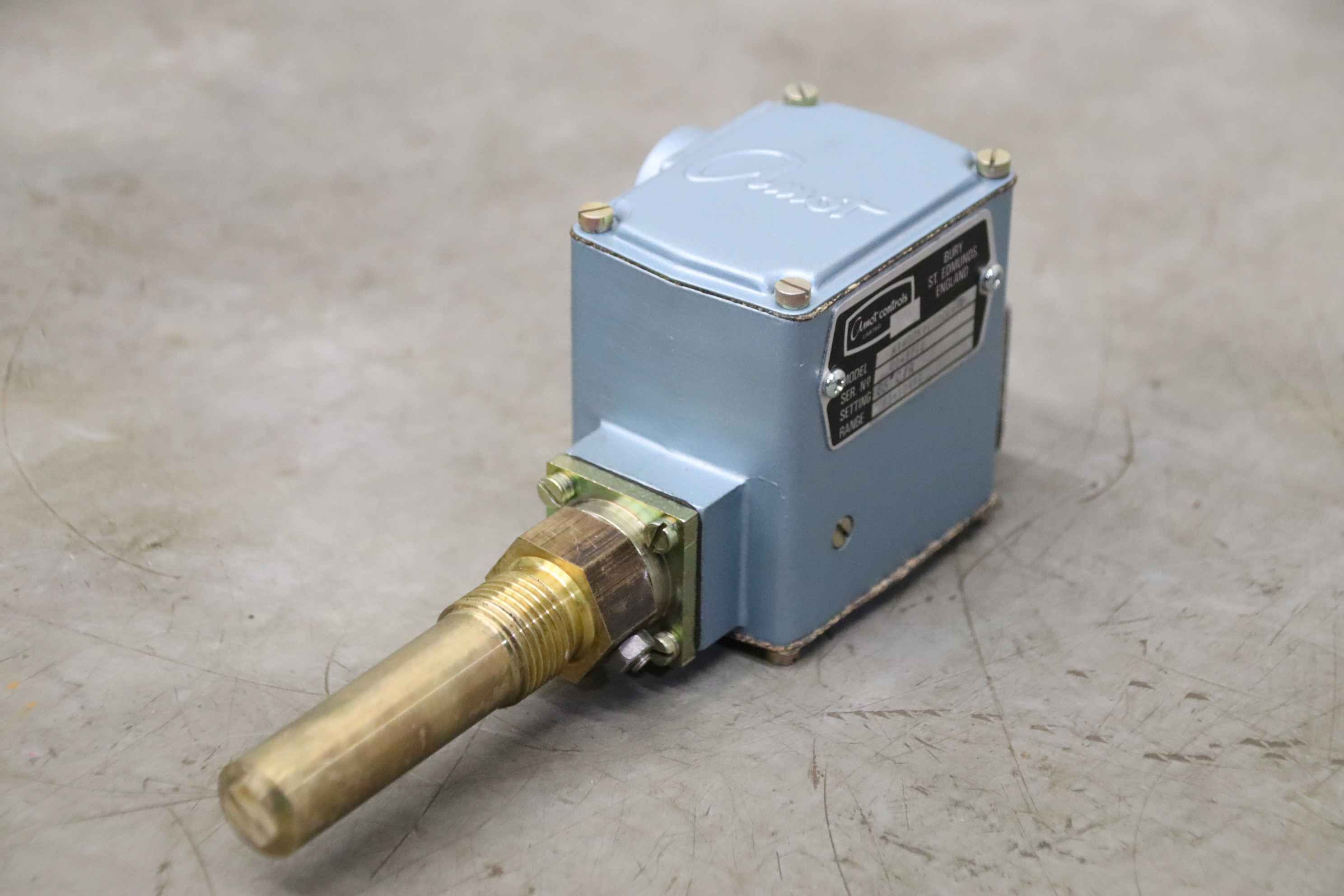 Temperature controller, temperature sensor, temperature setting, temperature converter, temperature limiter, electronic temperature controller, temperature switch, thermostat, sensor, pressure and temperature switch -Manufacturer: Amot, pressure and temperature switch unused -Type: 4140DKIE00CE4-EE -Temperature range: 83-104°C Setting 85°C -Number: 2x thermostat available -Price: per piece -Dimensions: 200/70/H80 mm -Weight: 0.6 kg/piece