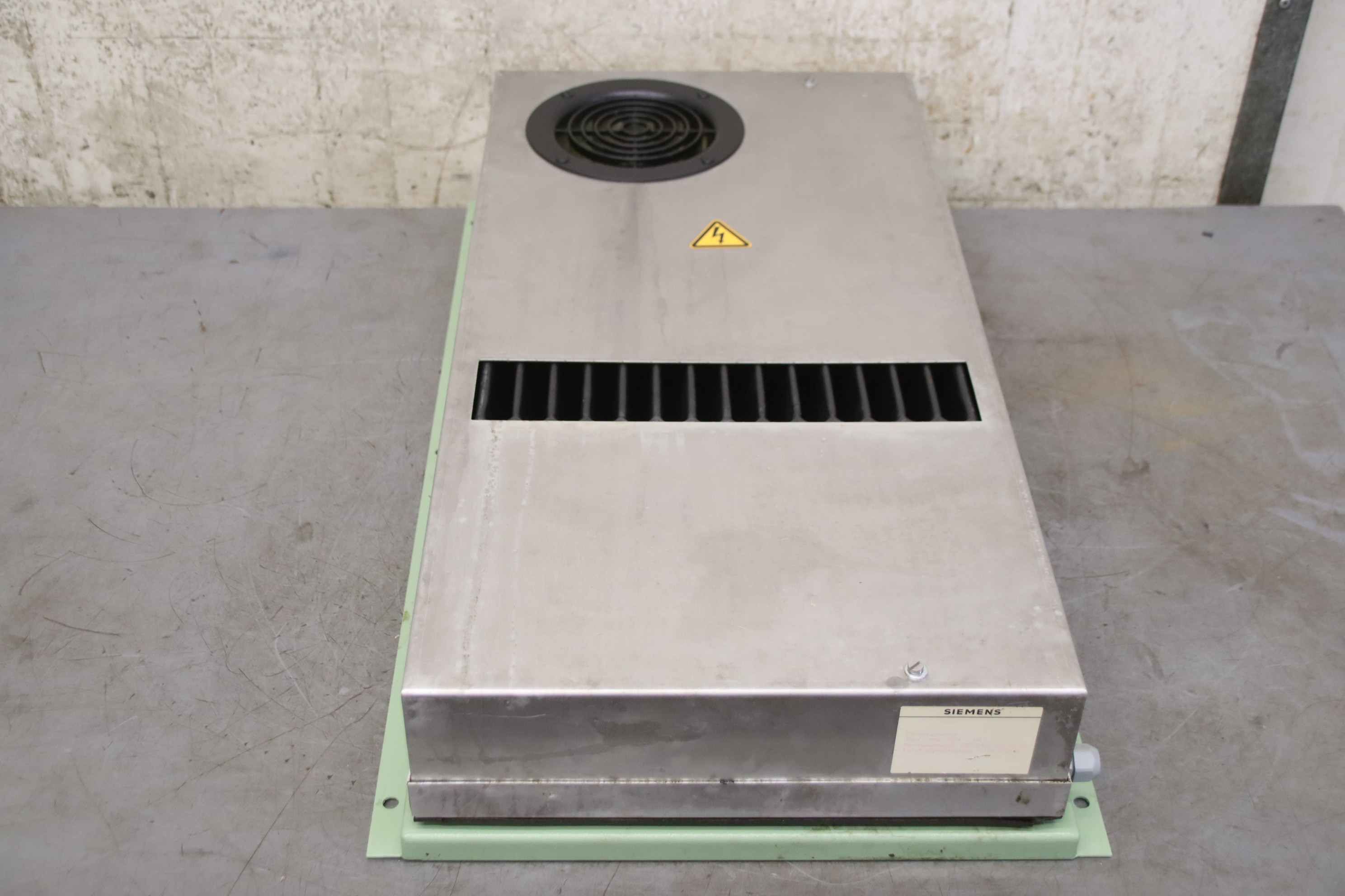 Control cabinet - cooling device, control cabinet air conditioner, distribution cabinet, heat exchanger, wall-mounted cooling device, control cabinet cooler-Manufacturer: Siemens, heat exchanger control cabinet cooling device from milling machine MAHO MH 800C-Type: 8ME 7874-DR-Voltage: 230V-Power consumption: 170W-Dimensions: 415/130/H725 mm-Weight: 14.2 kg