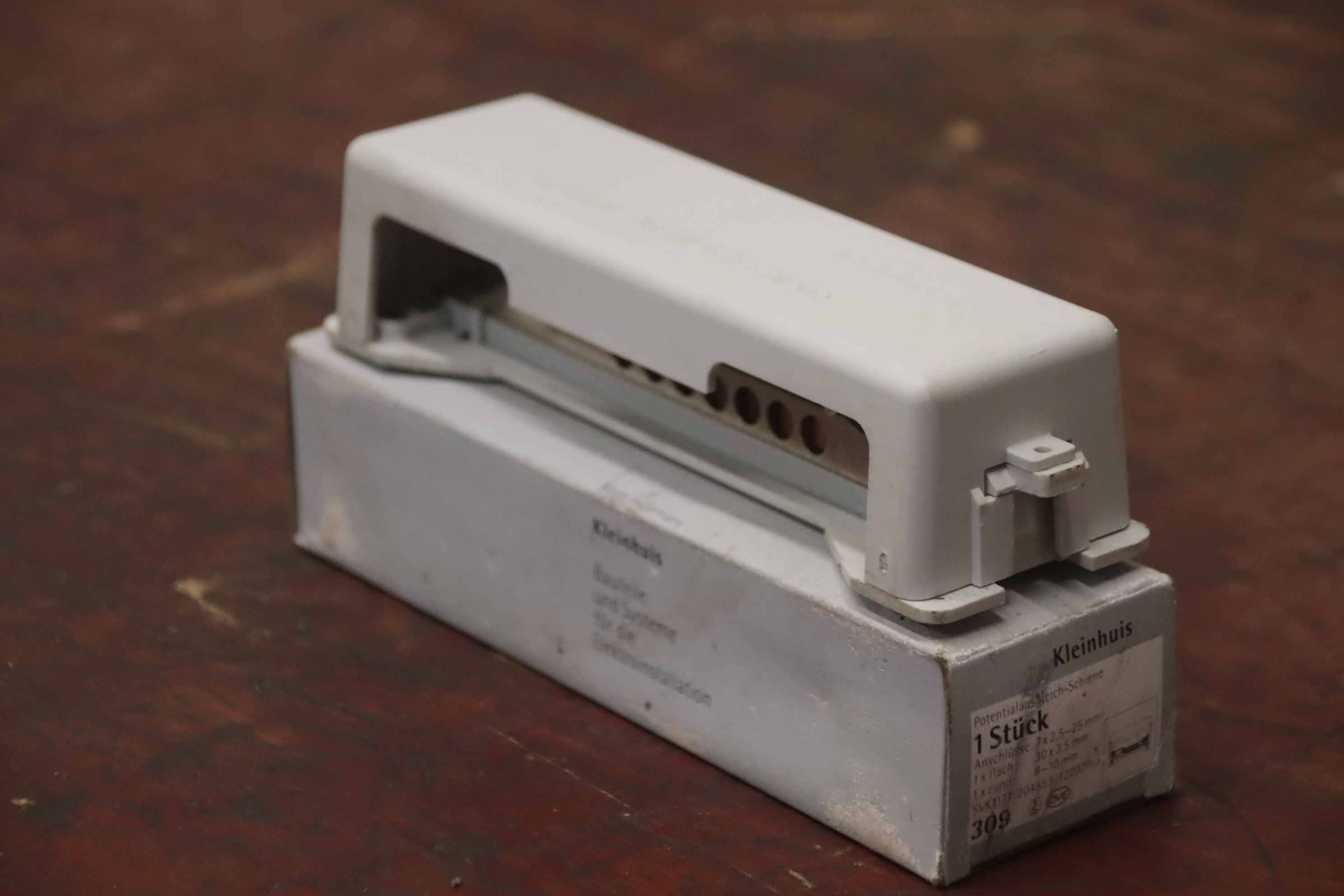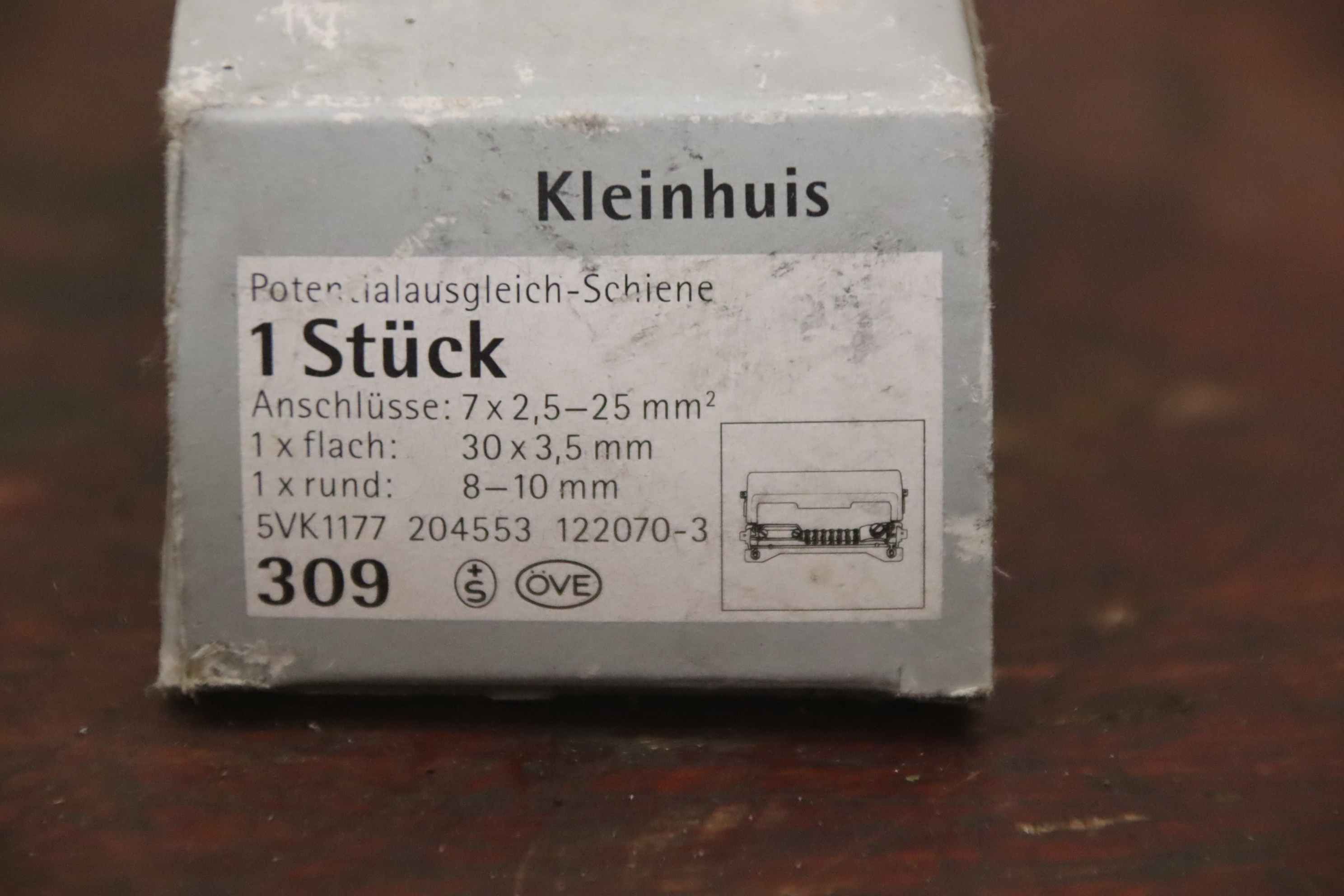 Switch cabinet and distribution board construction, busbars, busbar supports, busbar adapters, terminal plates, equipotential bonding bars, terminal blocks-Manufacturer: Kleinhuis, connection terminal potential equalization rail 4 pieces Ovp-Type: 309-Delivery/Price: complete-Dimensions of box: 185/55/H45 mm each-Weight: 0.3 kg/piece