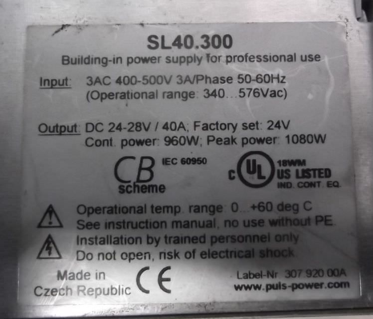 Converter, power supply, power supply, switching power supply-Type: SL40.300-Input: 3 AC 400/500 V-Output: DC 24-28 V/40 A-Dimensions: 275/125/H120 mm-Weight: 3.25 kg