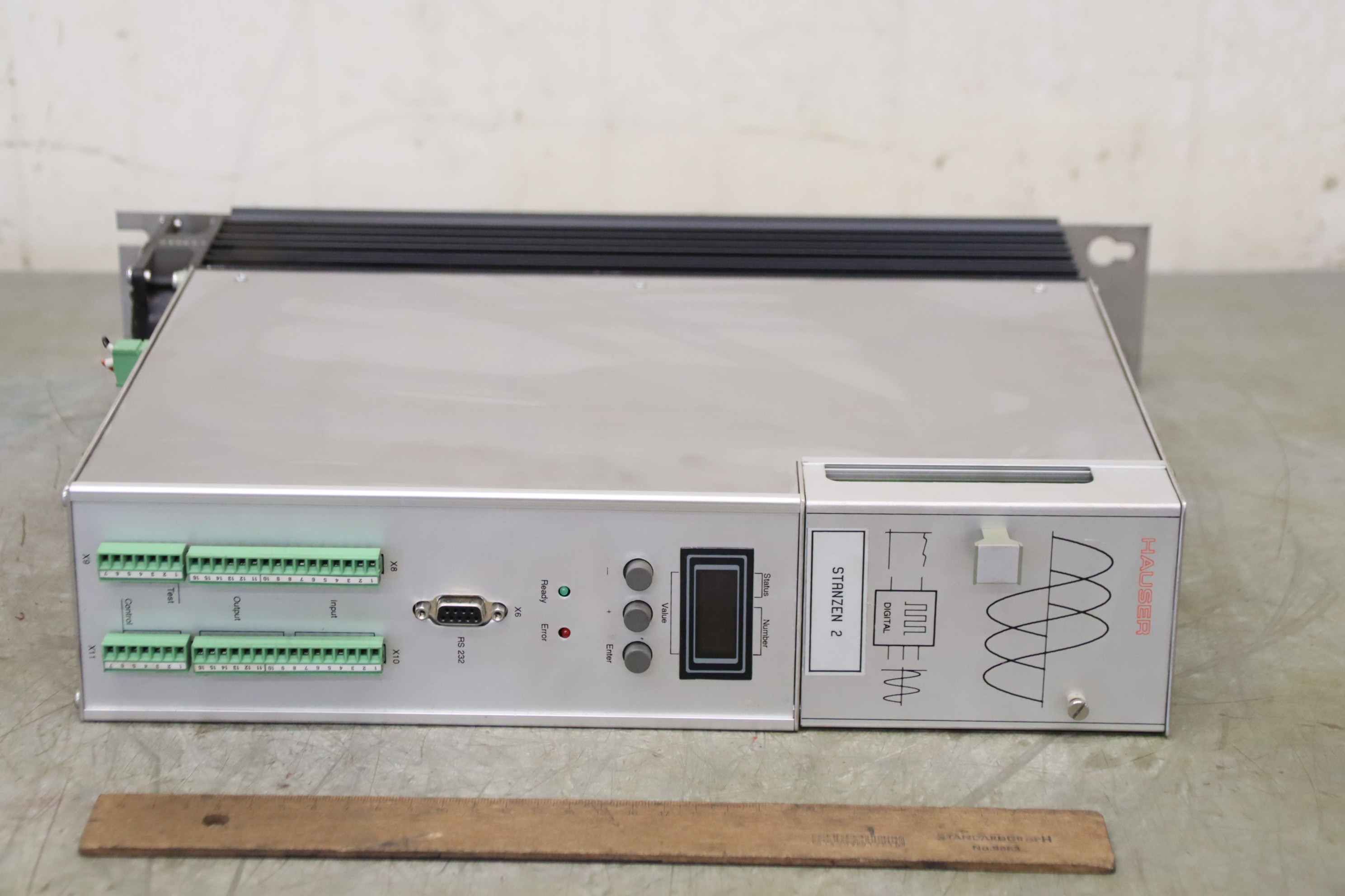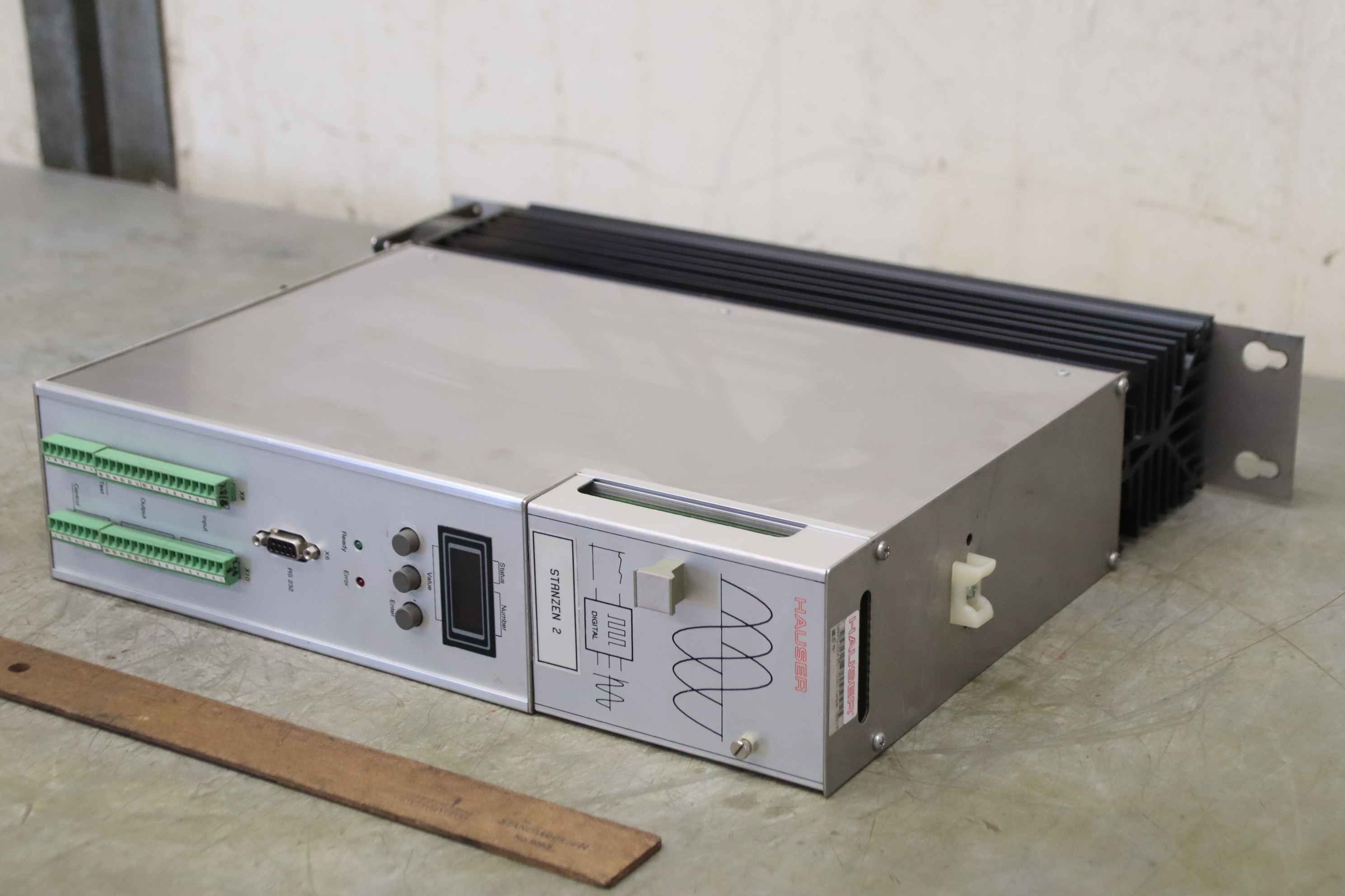 Frequency converter, frequency converter, drive inverter, controller, variable speed drive, servo controller, control, converter, PLC control, supply unit, inverter, servo drive, servo control, power supply-Manufacturer: Hauser, Servo Drive basic device-Type: 951-100200 Compax 0500-M-Number: 3x servo module available-Price per piece-Dimensions: 450/80/H350 mm-Weight: 6.8 kg/pc.