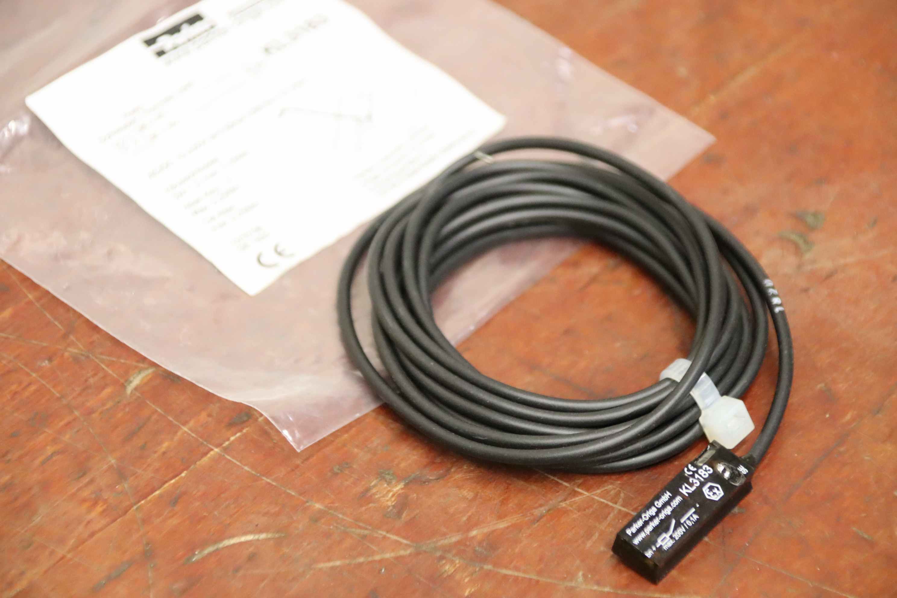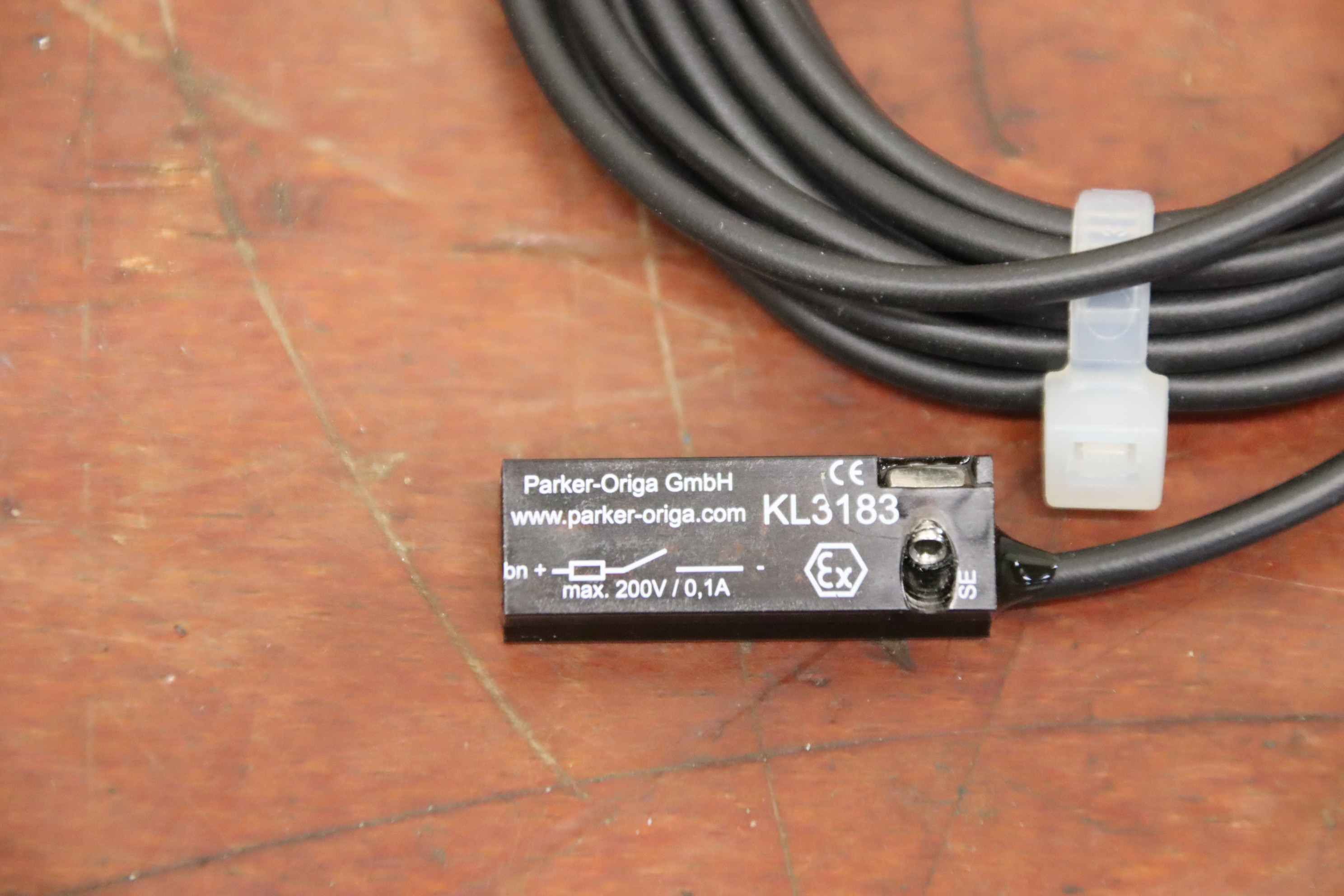 Inductive sensor, electronic sensor, proximity switch, magnetic sensor, magnetic safety sensor-Manufacturer: Parker, sensor closer unused Ovp-Type: KL3183-Voltage: 10-200V-Number: 112x sensor available-Price per piece-Dimensions rolled up: Ø 90 x 10 mm-Weight: 0.1 kg/piece