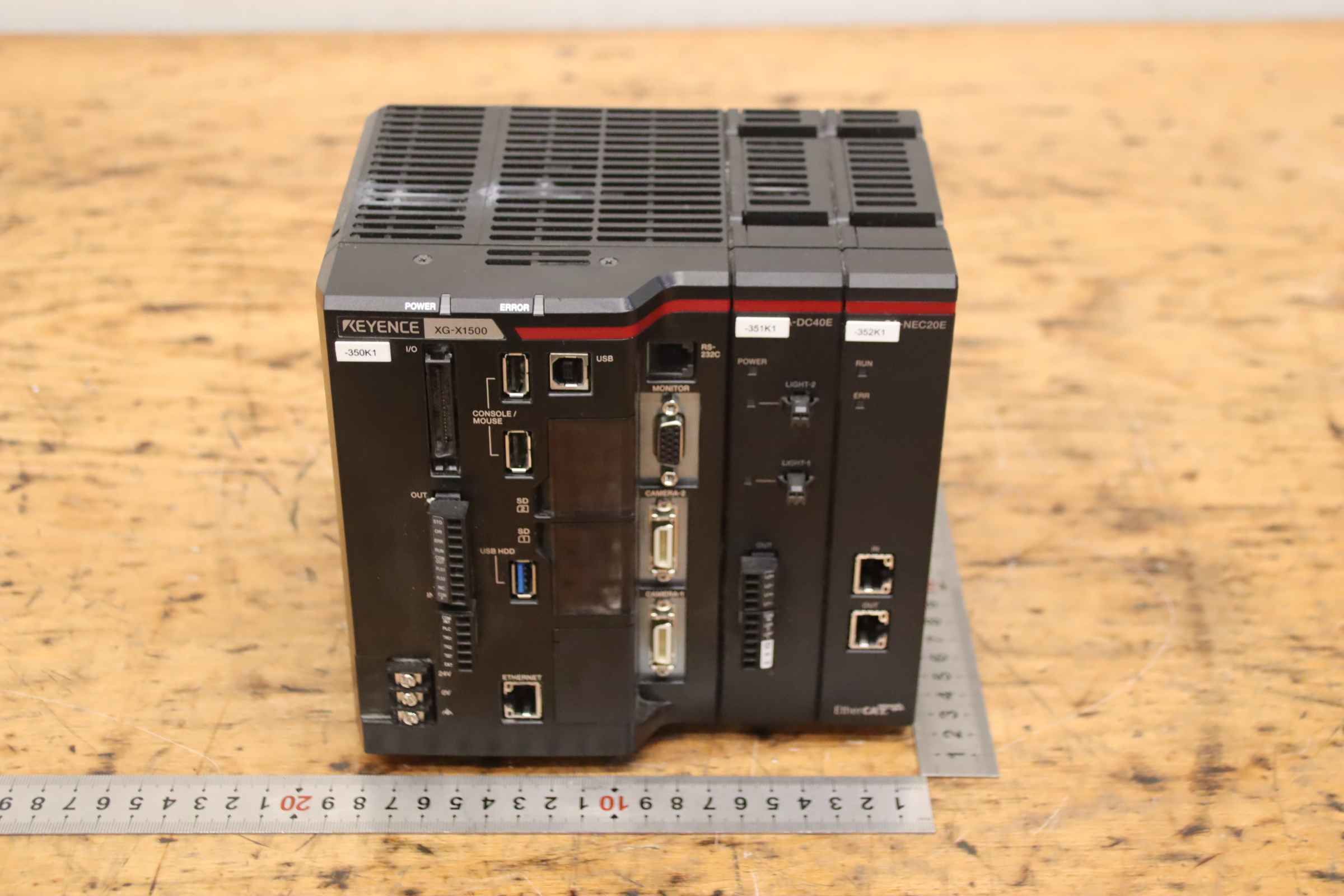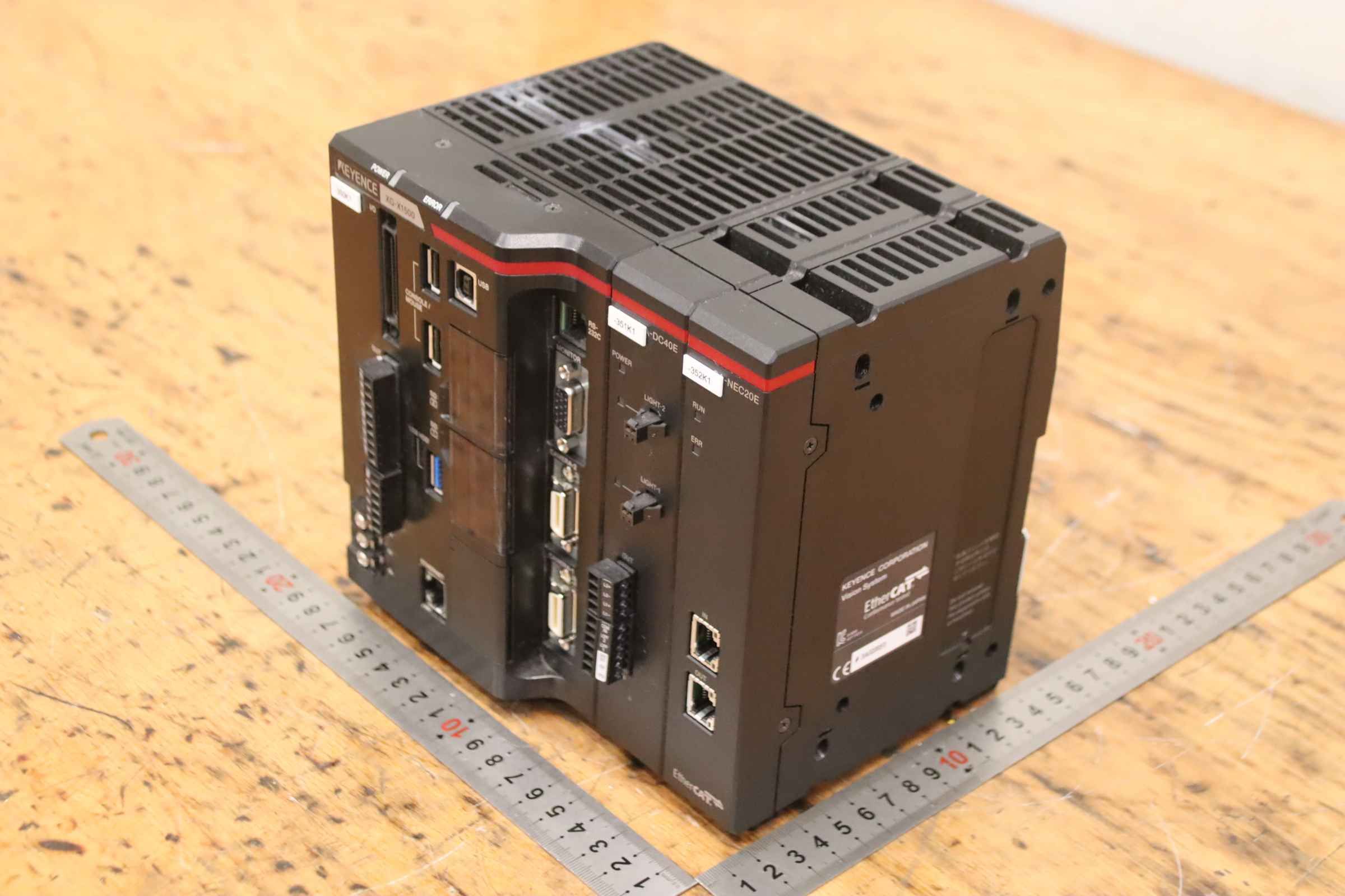 Image processing system, central unit, high-end image processing, image processing controller, camera controller -Manufacturer: Keyence, image processing system image processing controller -Type: XG-X1500 -Extension modules: -DC40E / -NEC20E see photos -Shipping/Price: complete -Dimensions: 180/150/H175 mm -Total weight: 2.5 kg