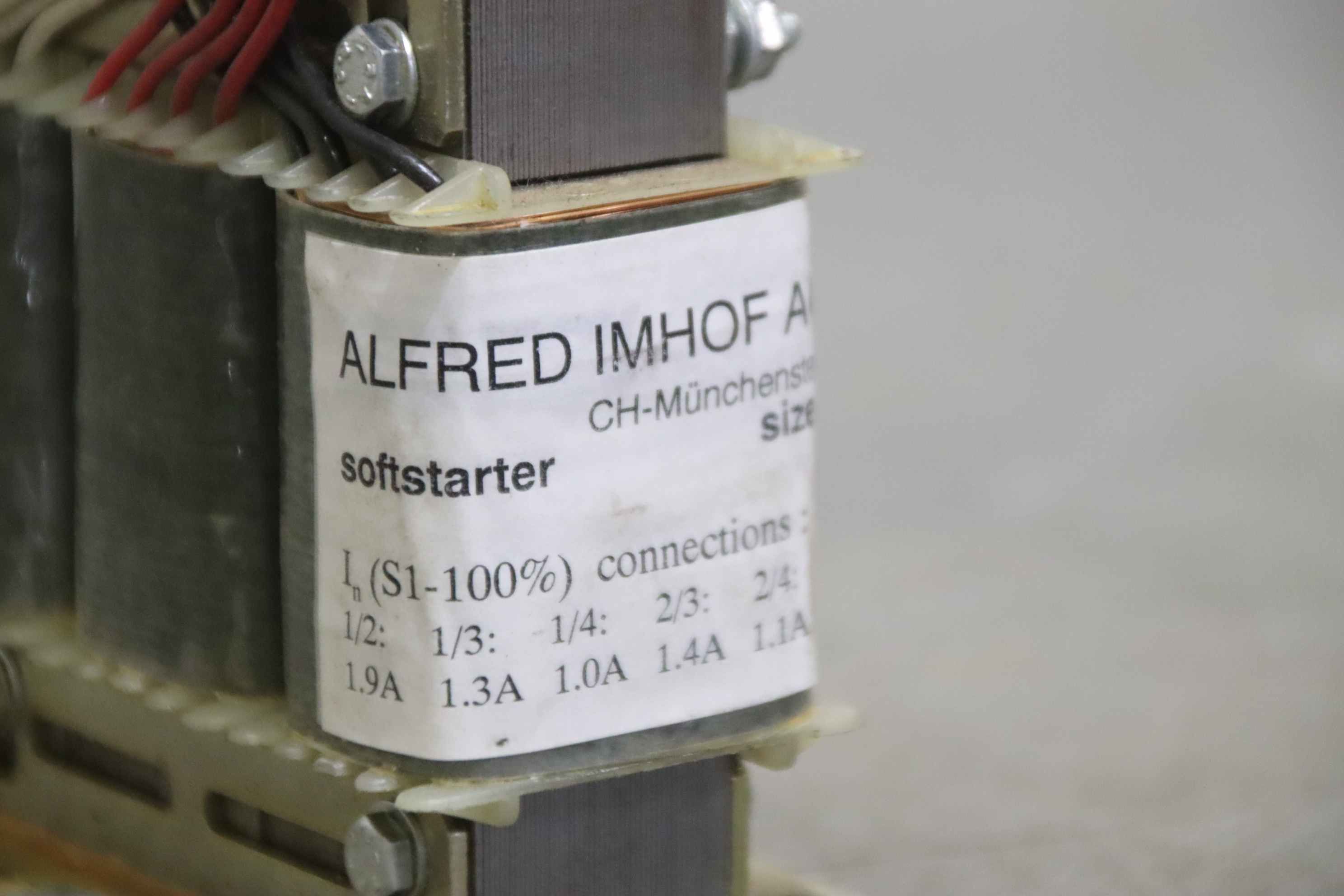 Inrush current limiter, soft starter, soft starter, starting current limiter-Manufacturer: Alfred Imhof, soft starter size D08-Technical data: see photo identification plate-Number: 2x soft starters available-Price per piece-Dimension: 95/65/H110 mm-Weight: 1.5 kg