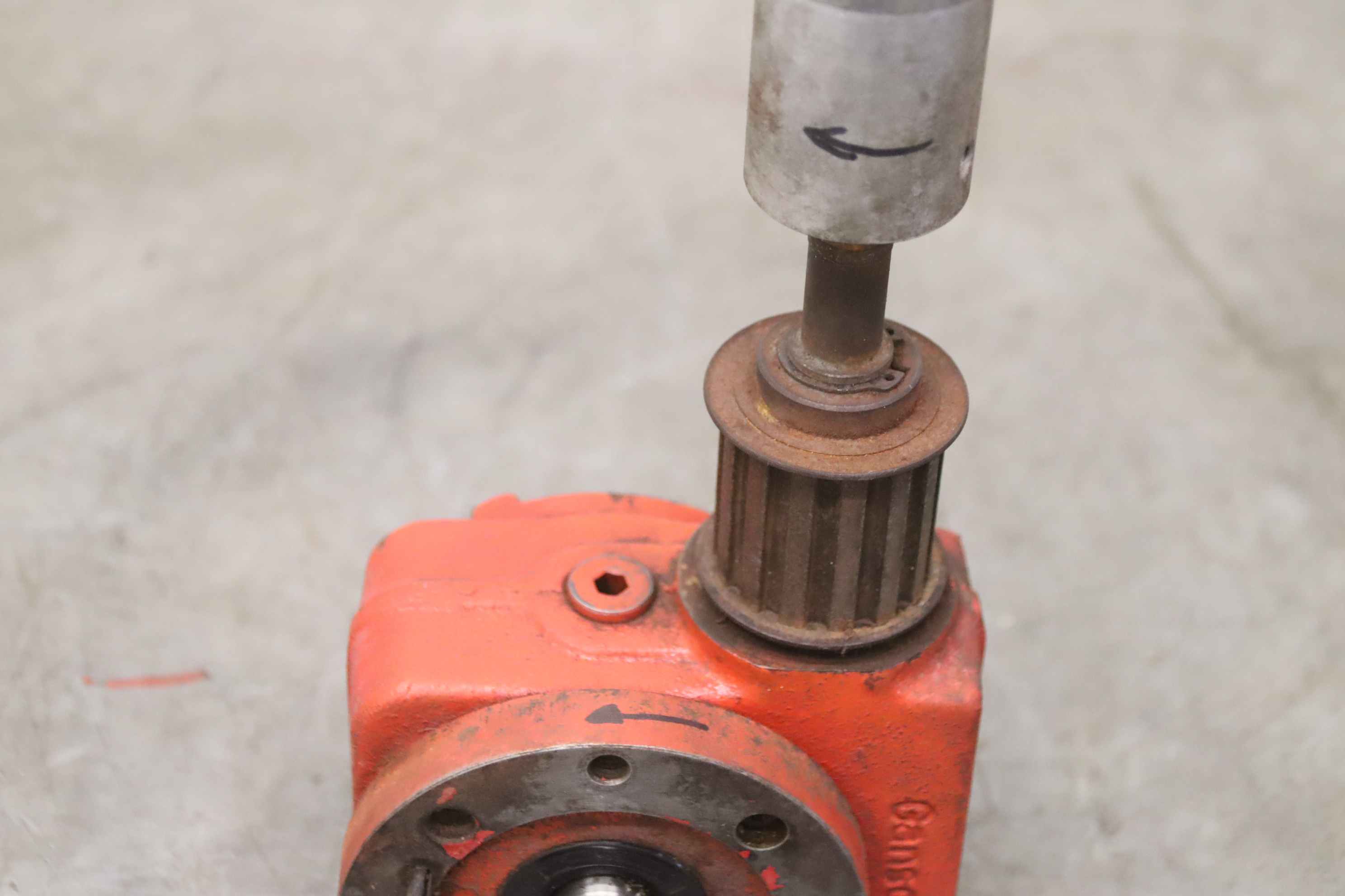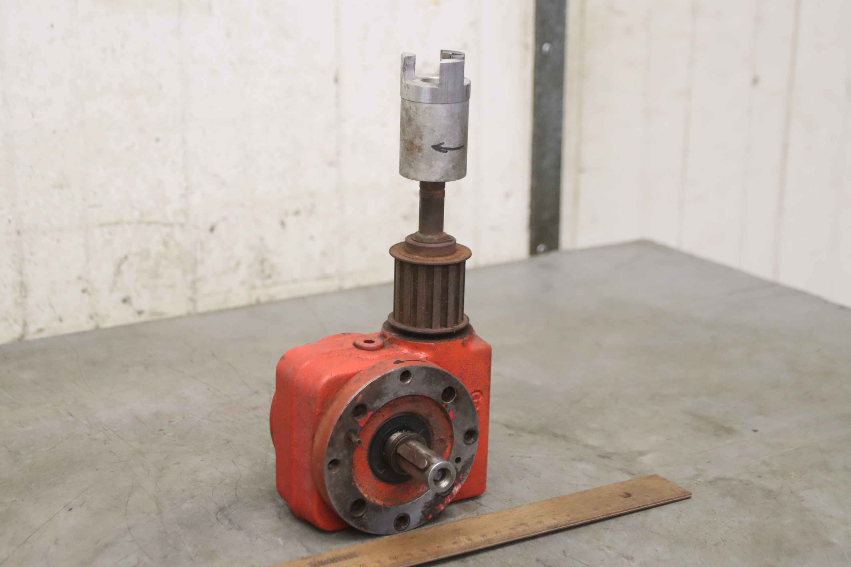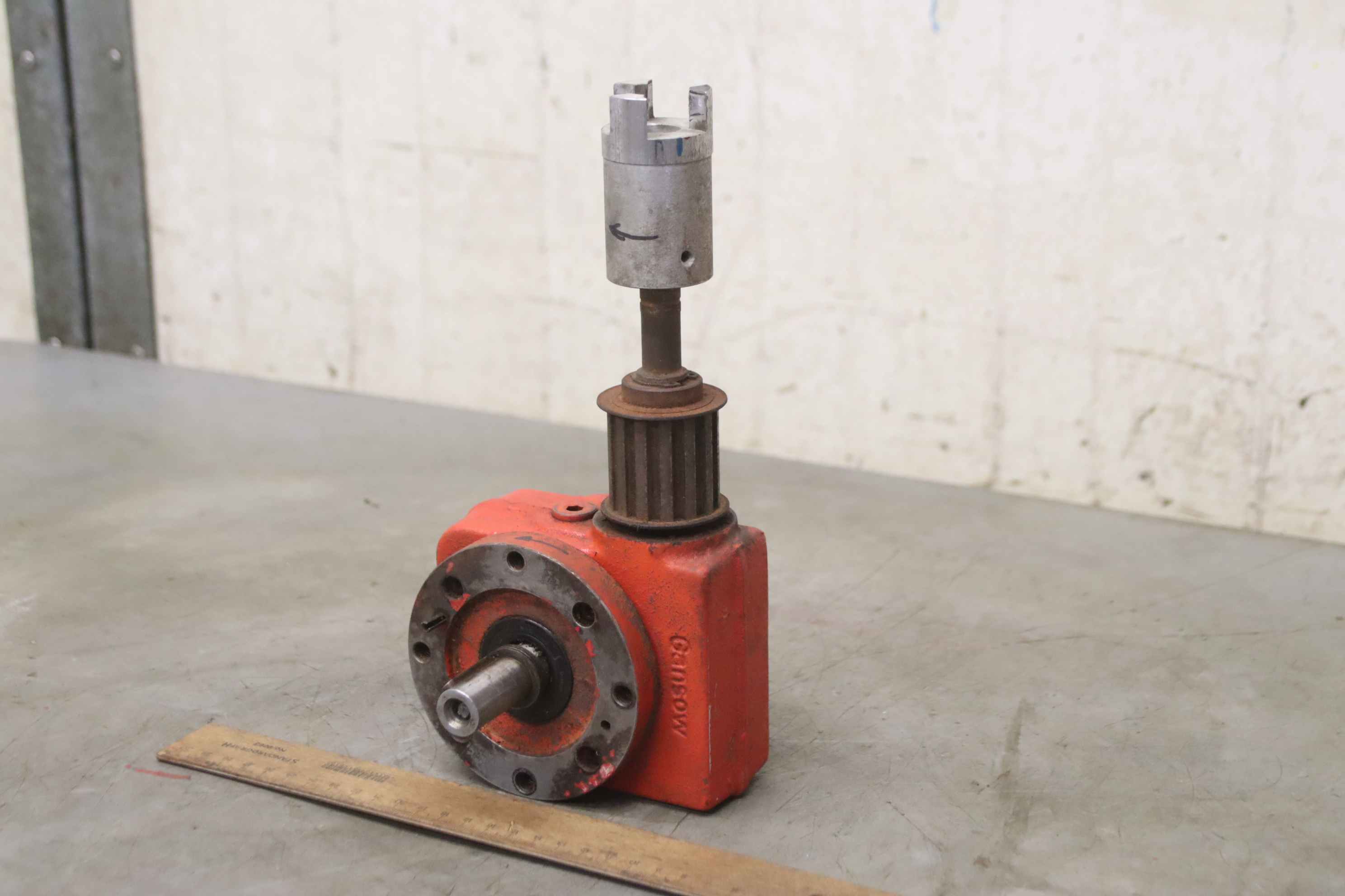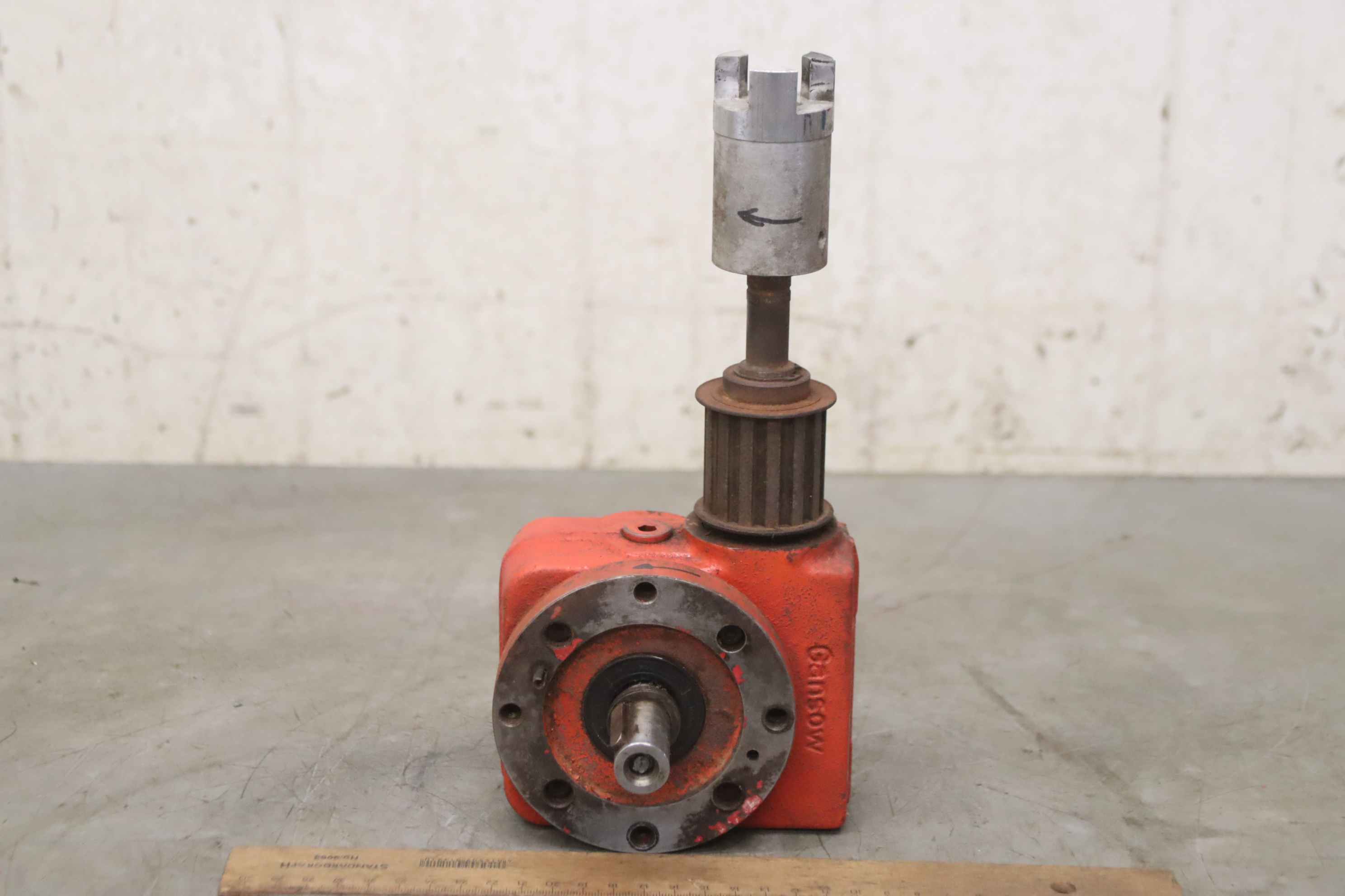 scrubber-dryer, floor cleaning machine, mop, gearbox -Manufacturer: Gansow, gearbox from scrubber-dryer 70 BF 70 -Mat.No.: 40S 11 001 -Bolt circle: Ø 90 mm -Translation: i= 8:1 -Number: 2x gearboxes available -Price: per piece -Dimensions: 270/125/H125 mm -Weight: 4.7 kg/pc.