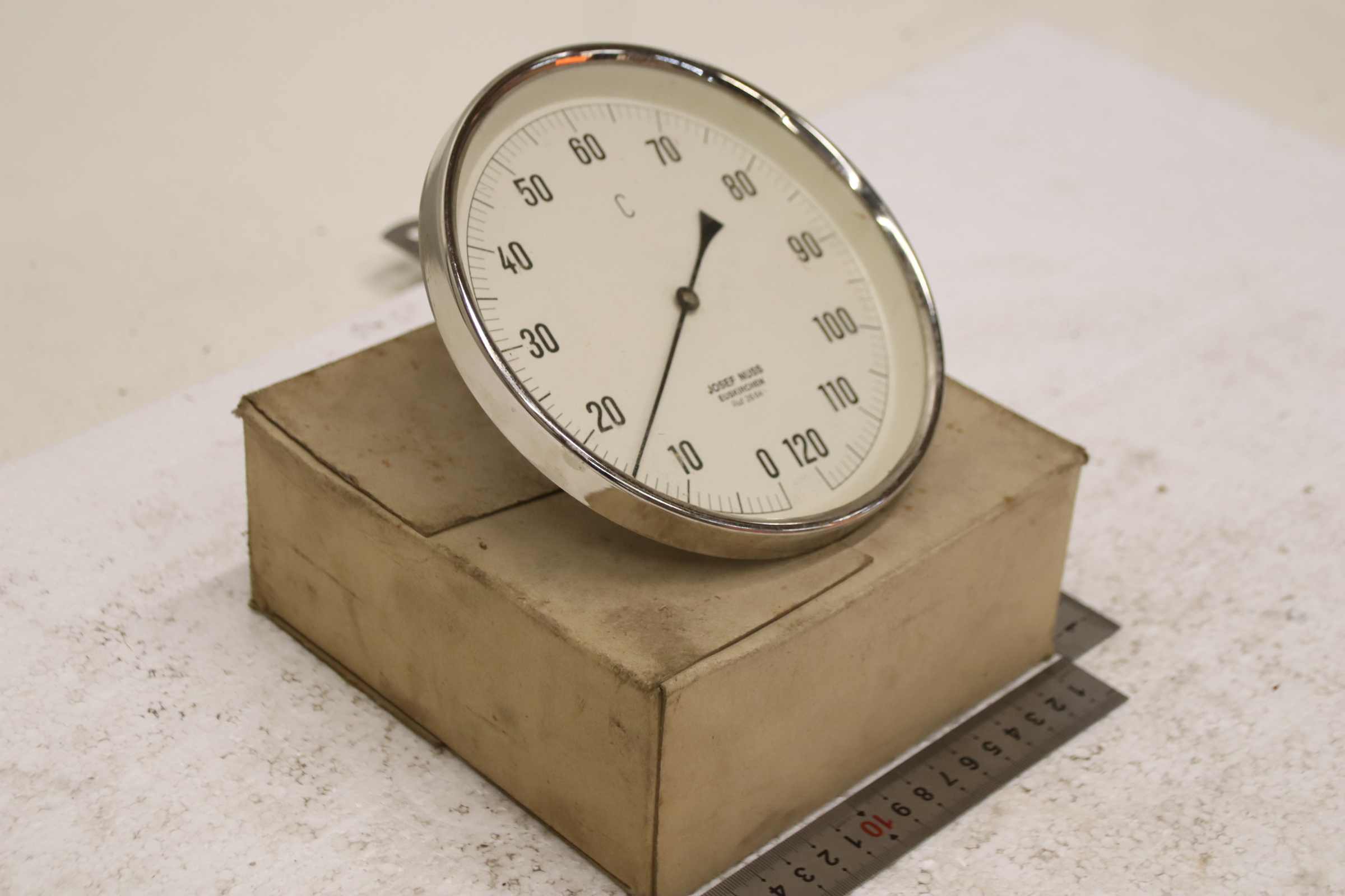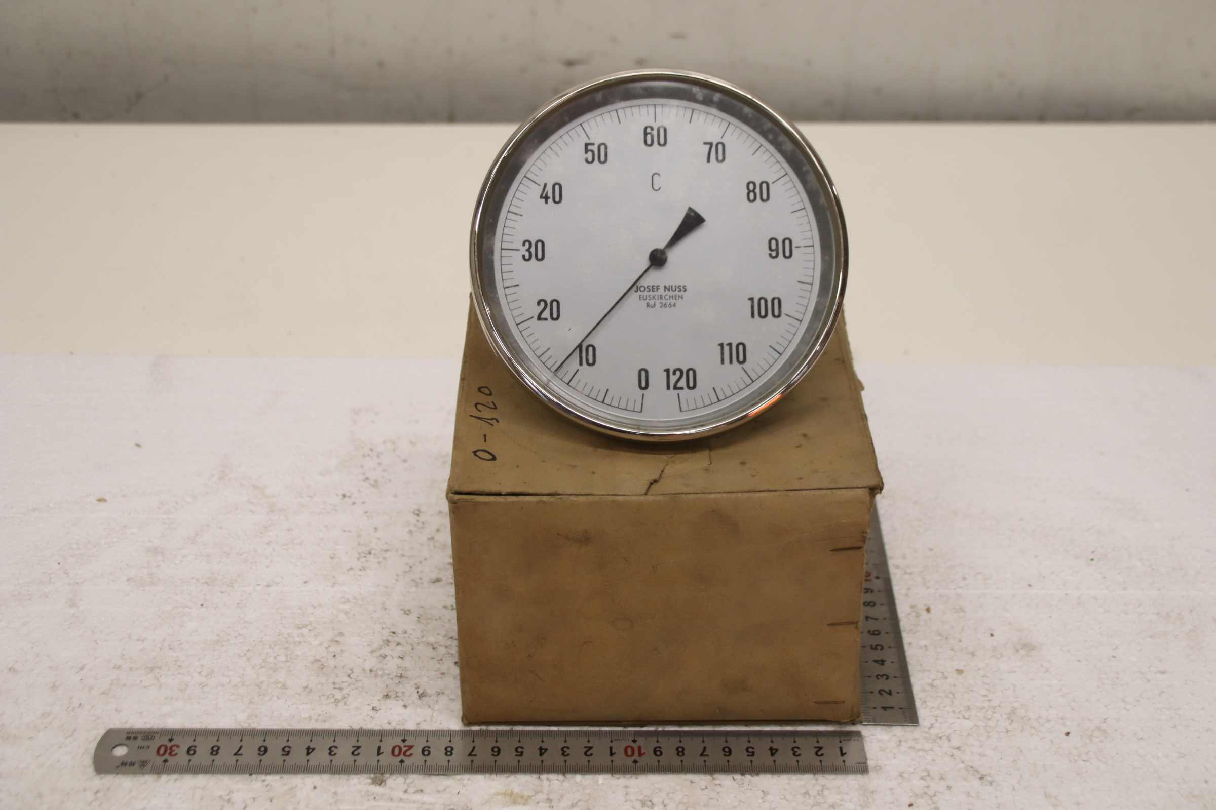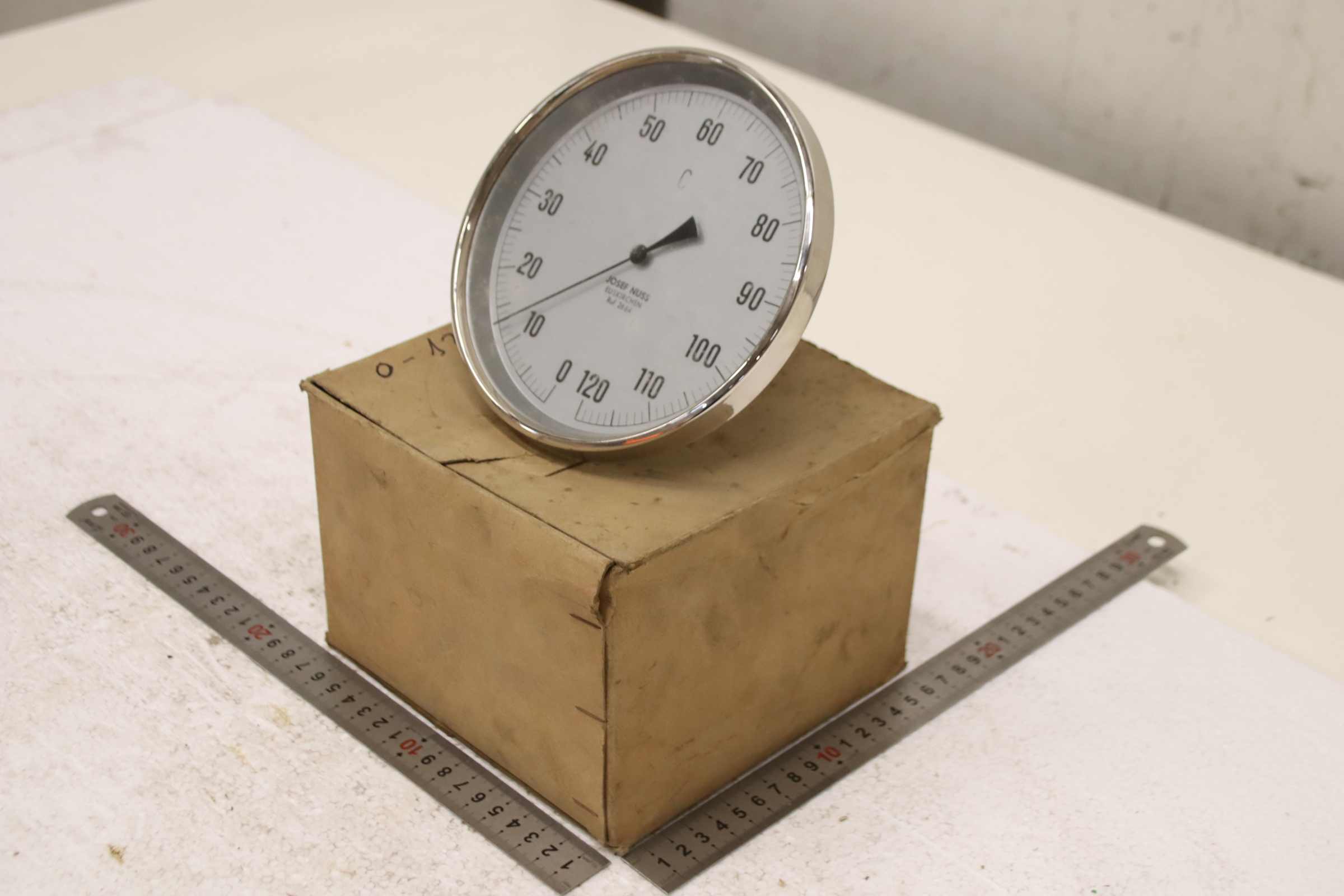 Temperature sensor, duct temperature sensor, screw-in temperature sensor, temperature sensor, thermometer, bimetallic thermometer -Manufacturer: Josef Nuss, Bimetallic temperature sensor thermometer, unused, original packaging -Measuring range: 0 to 120°C -Measuring probe: Length approx. 40 mm, see photo -Cardboard dimensions: 175/175/H80 mm -Weight: 0.5 kg