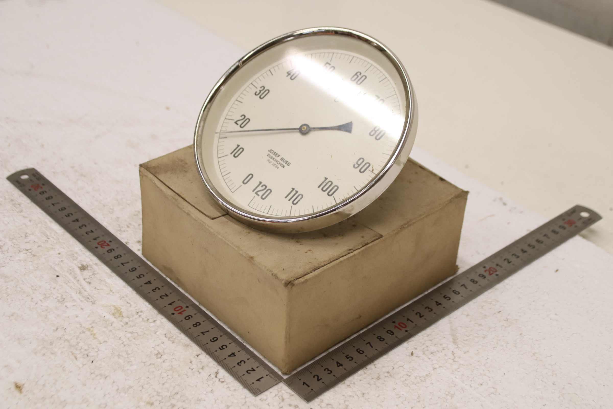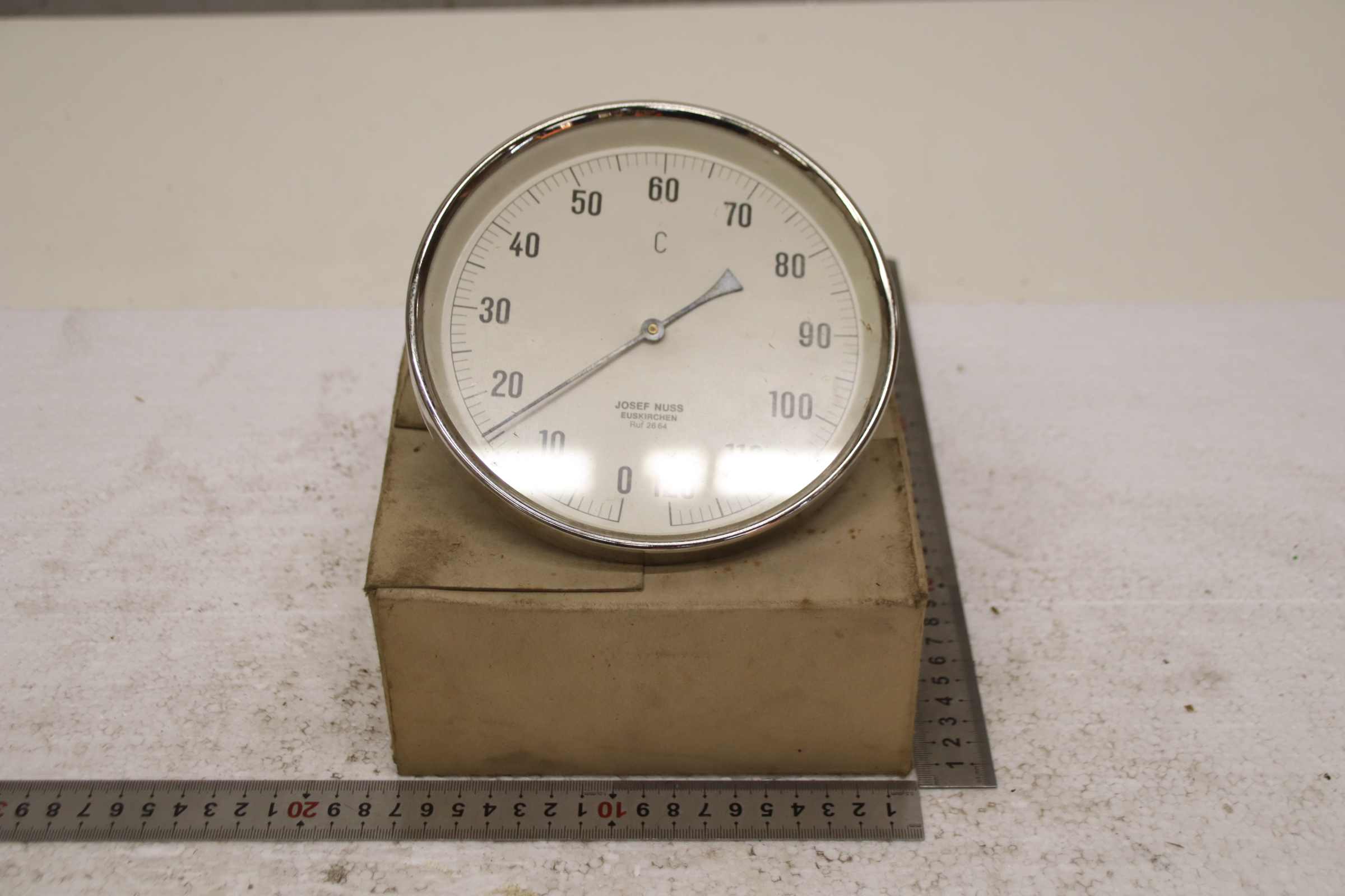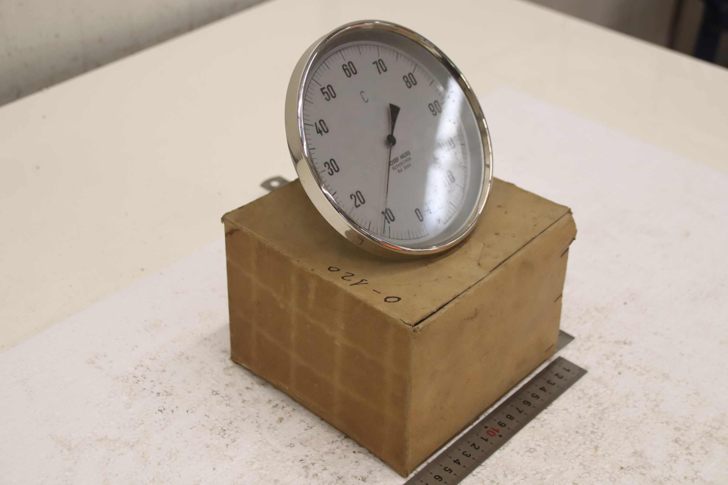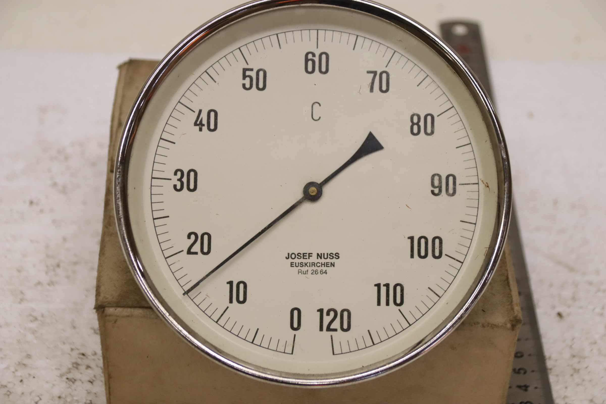 Temperature sensor, duct temperature sensor, screw-in temperature sensor, temperature sensor, thermometer, bimetallic thermometer -Manufacturer: Josef Nuss, Bimetallic temperature sensor thermometer, unused, original packaging -Measuring range: 0 to 120°C -Measuring probe: Length approx. 40 mm, see photo -Cardboard dimensions: 175/175/H80 mm -Weight: 0.5 kg