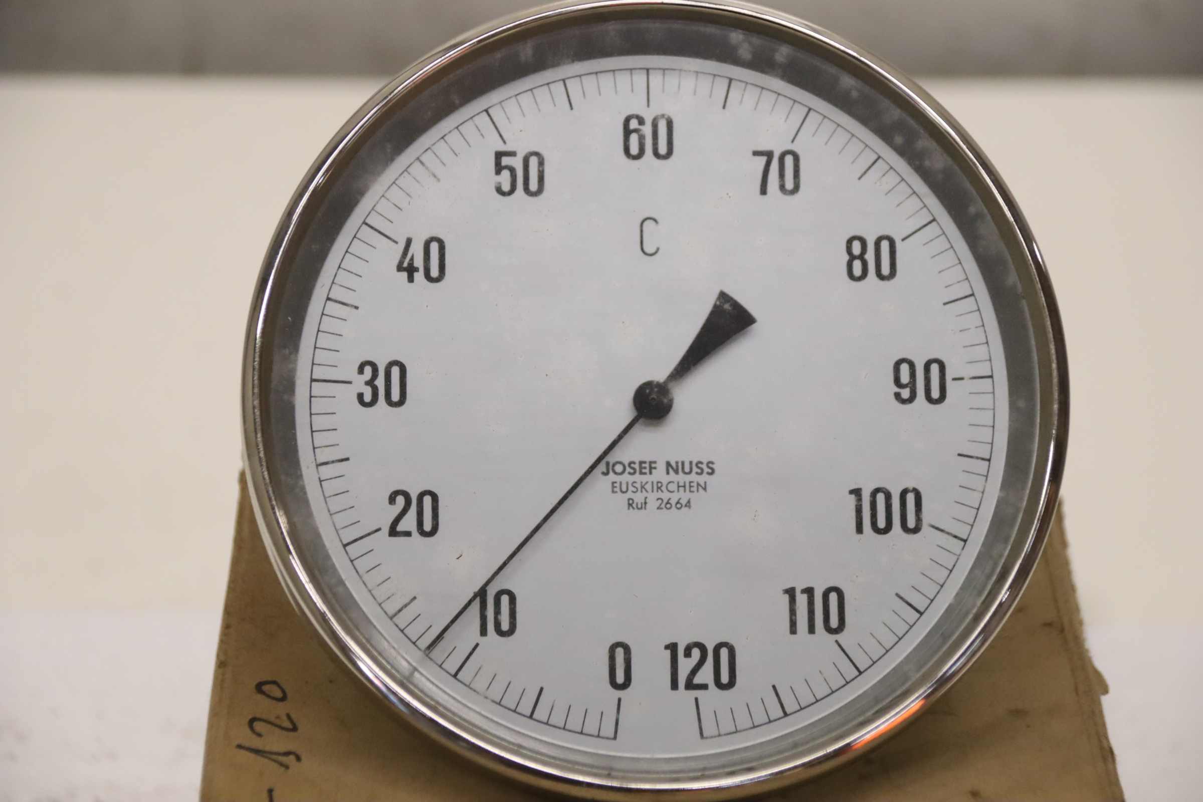 Temperature sensor, duct temperature sensor, screw-in temperature sensor, temperature sensor, thermometer, bimetallic thermometer -Manufacturer: Josef Nuss, Bimetallic temperature sensor thermometer, unused, original packaging -Measuring range: 0 to 120°C -Measuring probe: Length approx. 70 mm, see photo -Cardboard dimensions: 180/180/H125 mm -Weight: 0.5 kg