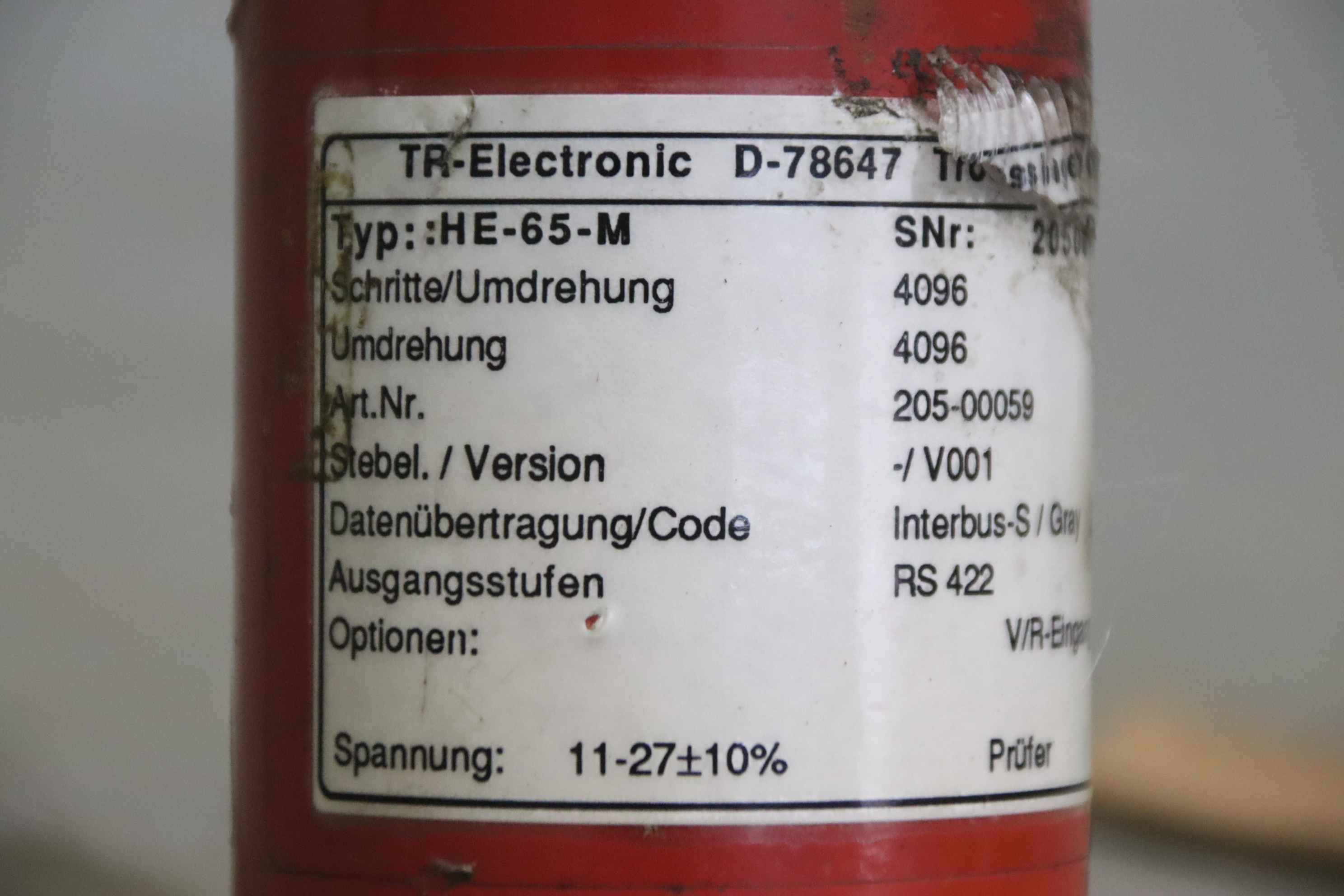 Absolute encoder, encoder, rotary encoder, encoder, absolute encoder, absolute encoder, function encoder, resolver, resolver -Manufacturer: TR-Electronic, rotary encoder -Type: HE-65-M -Art.No: 205-00059 -Voltage: 11-27 V -Number: 1x encoder available -Price: per piece -Dimensions: 140/100/H165 mm -Weight: 1.3 kg/piece