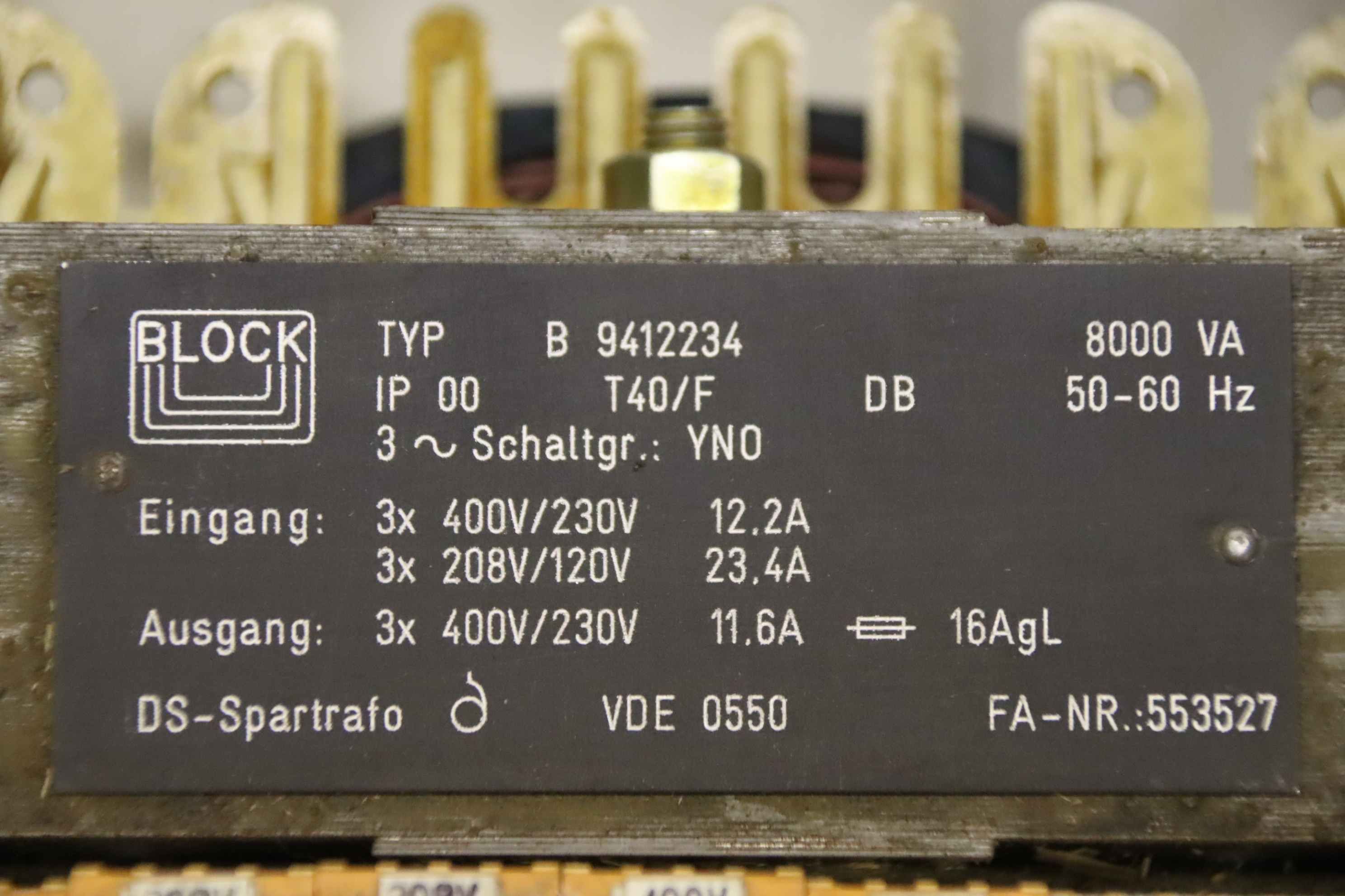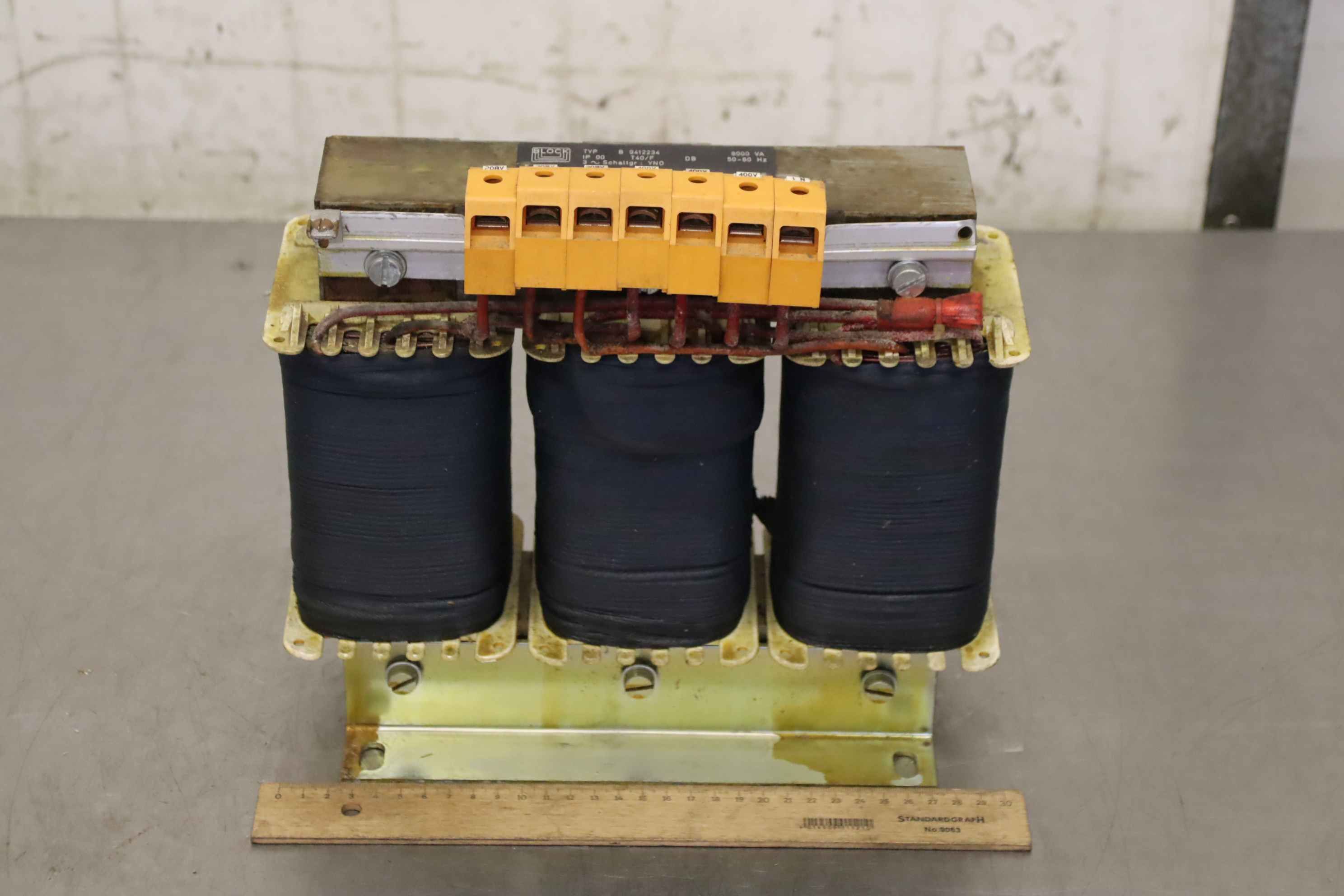 Transformer, transformer, converter, three-phase autotransformer, three-phase transformer, three-phase transformer, single-phase transformer-Manufacturer: Block, transformer type B 9412234-Power: 8000 VA-Technical data: see photo identification plate-Number: 6 x transformer available-Price per piece-Dimensions: 295/120/H280 mm-Weight: 32 kg/pc.