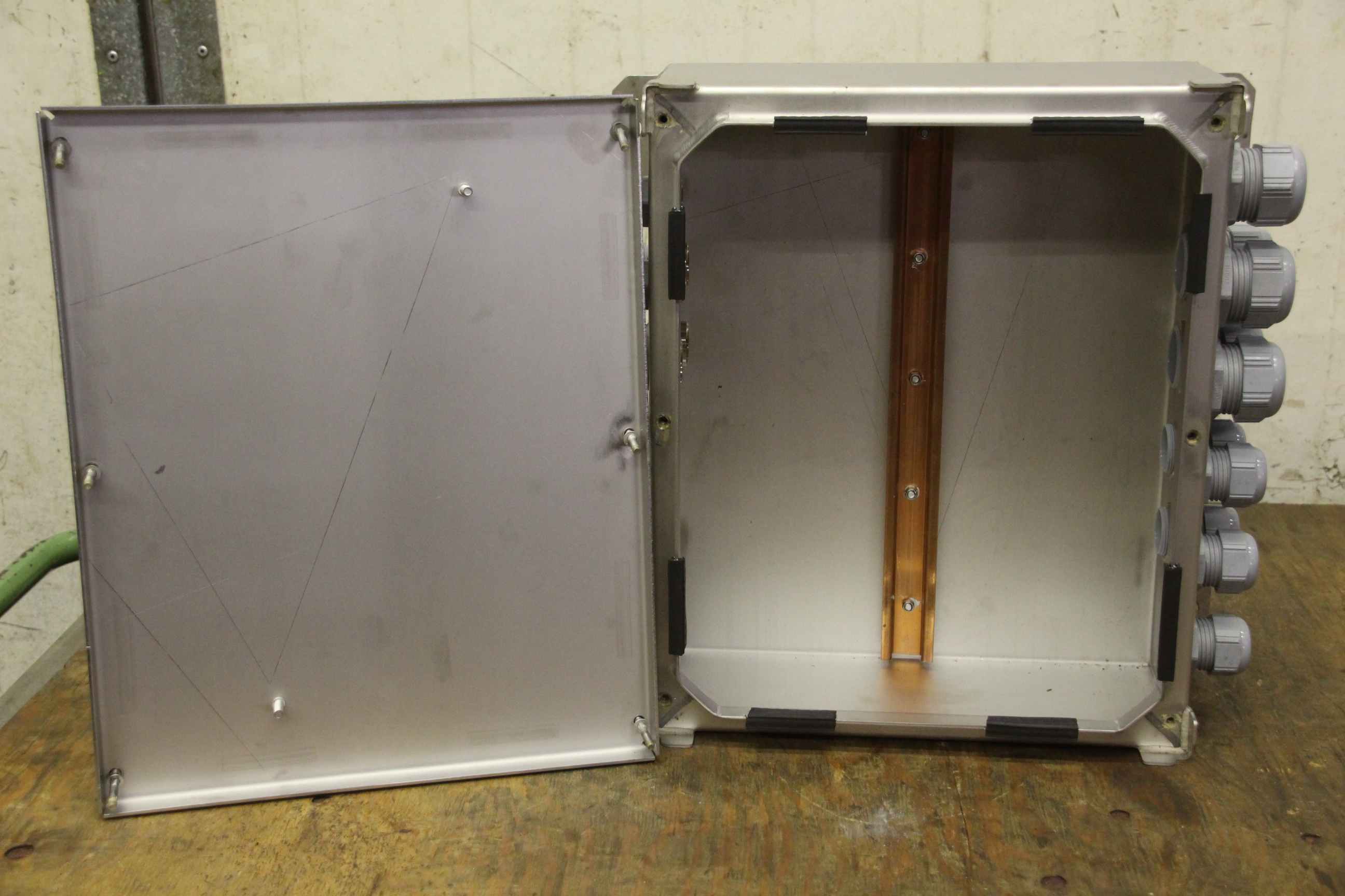 Site power distributor, site power meter, connection cabinet, crane distributor, distributor cabinet, power distributor, crane connection cabinet-Distribution box made of: VA-Dimensions: 410 x 400 mm-Depth: 165 mm-Weight: 10.5 kg