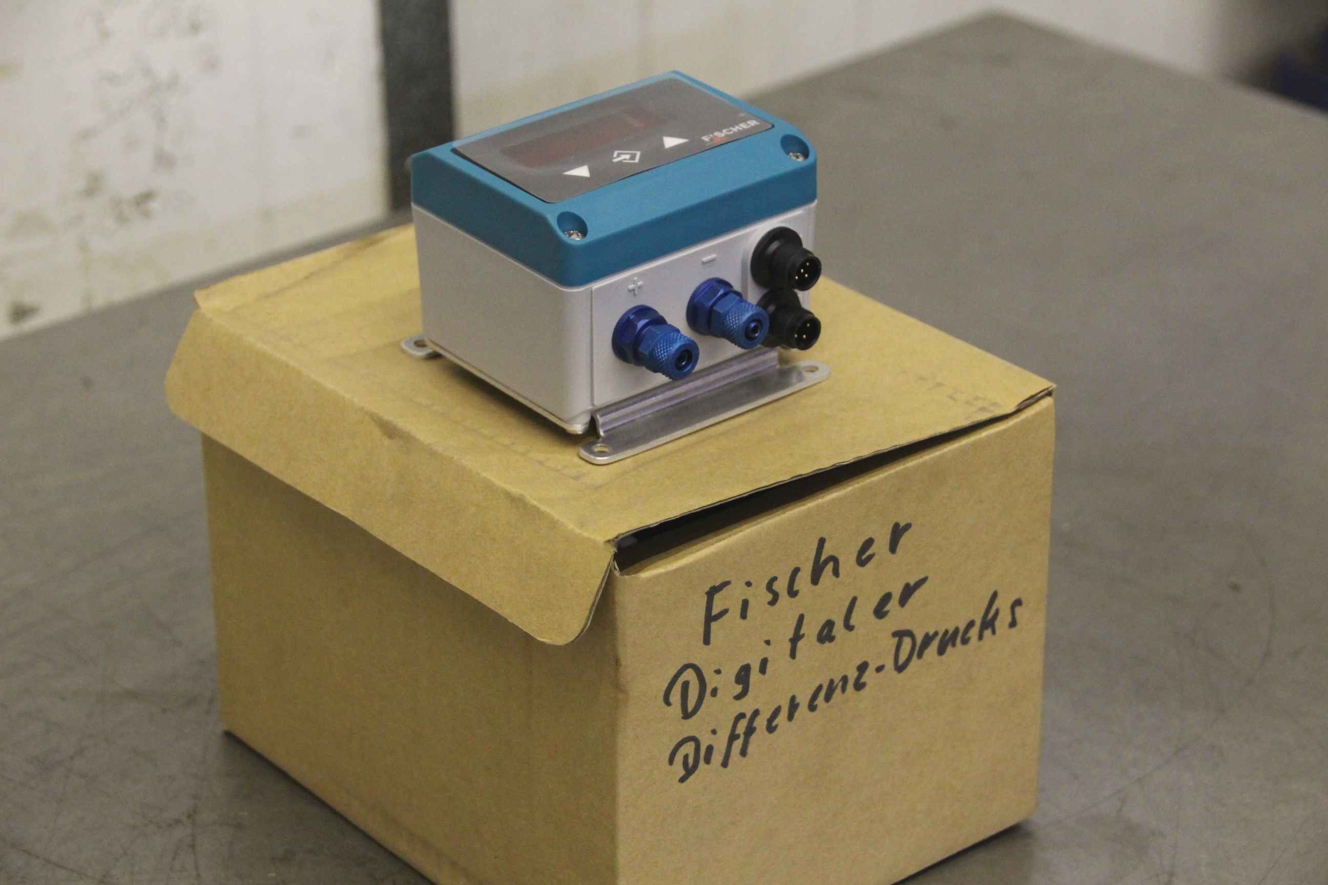 Differential pressure indicator, transmitter, monitor, senso, differential pressure indicator, differential pressure switch-Manufacturer: Fischer, digital differential pressure switch-Article no .: DE45520040PK03MW-Basic measuring range: 0 ... 4 mbar-P max.: 50 mbar-Operating voltage 24 V DC/AC-Number: 2x pressure switches available-Price: per piece-Dimensions box: 200/160/H140 mm-Weight: 0.5 kg/piece