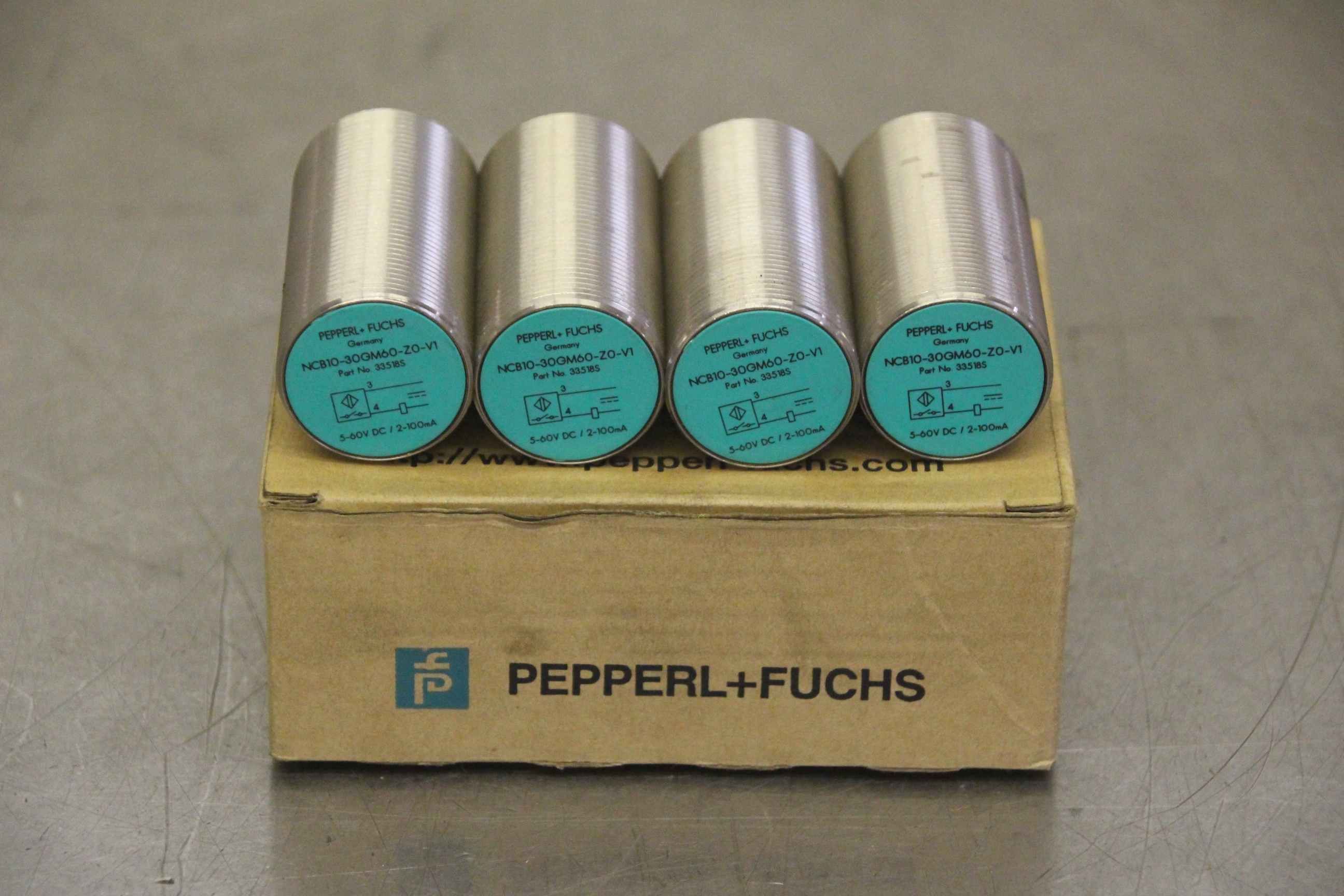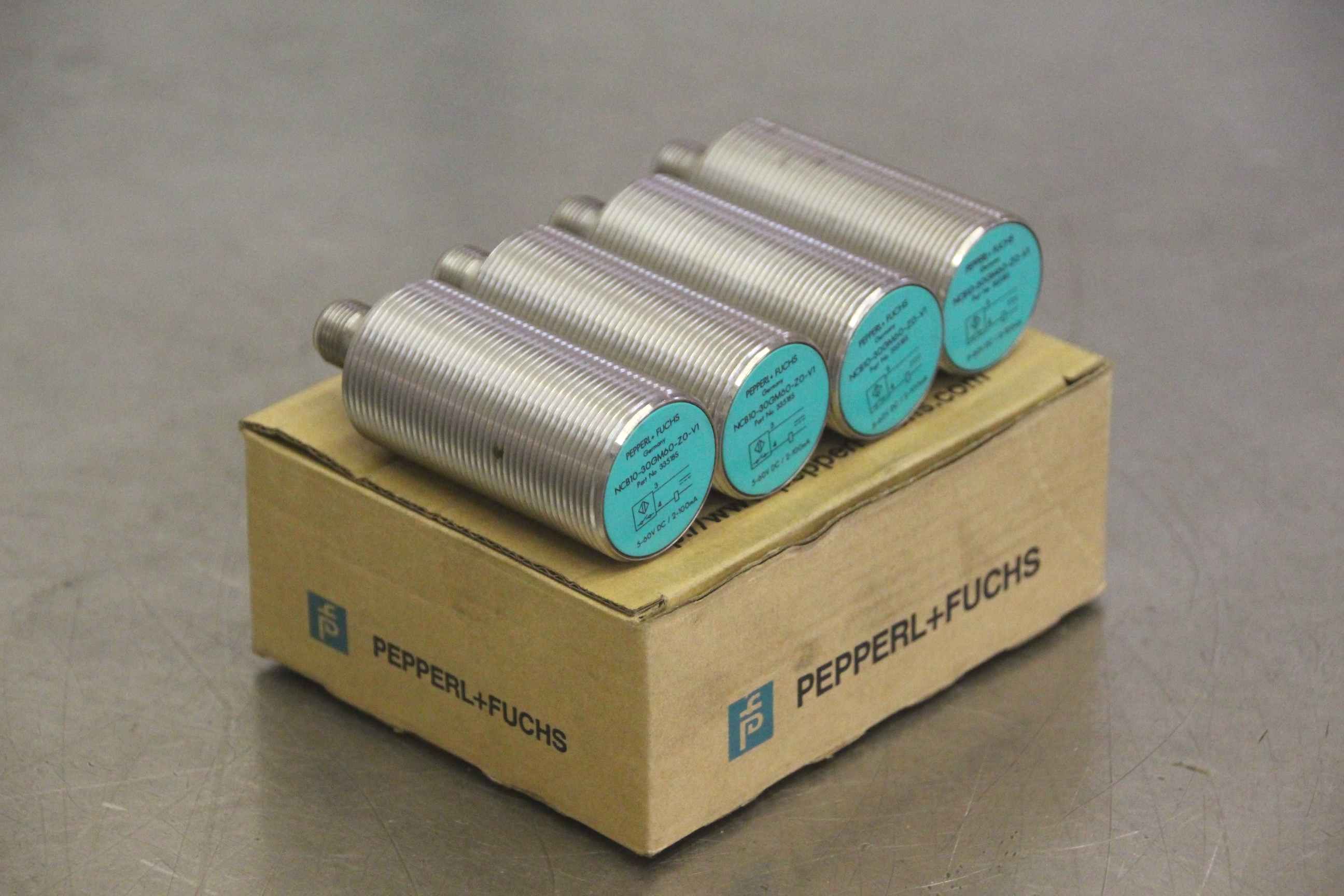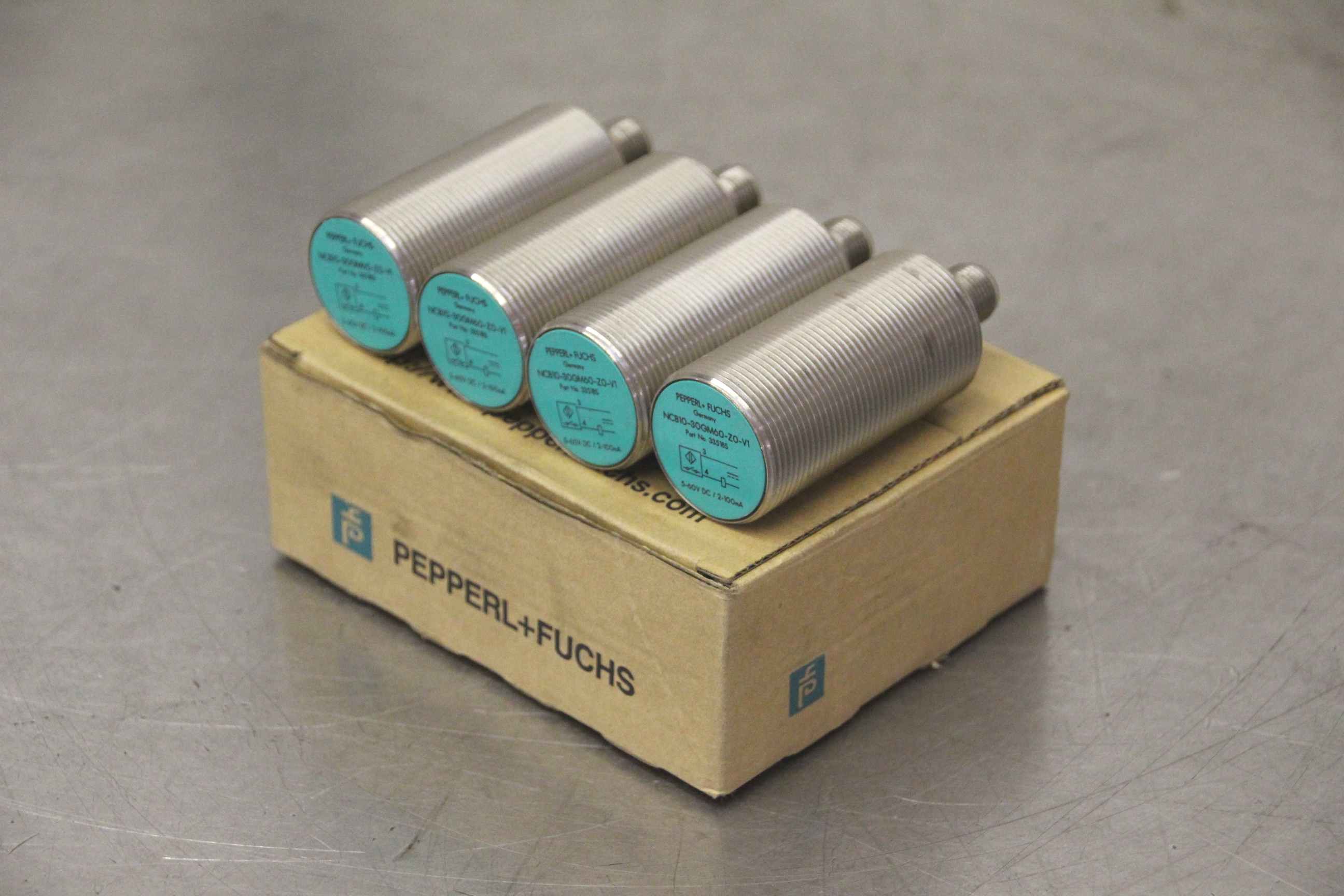 Inductive sensor, electronic sensor, proximity switch-Manufacturer: Pepperl Fuchs, inductive sensor 4 pieces-Type: NCB10-30GM60-ZO-V1 Part No. 335185-Price: complete-Dimension box: 95/120/H45 mm-Weight: 0.6 kg