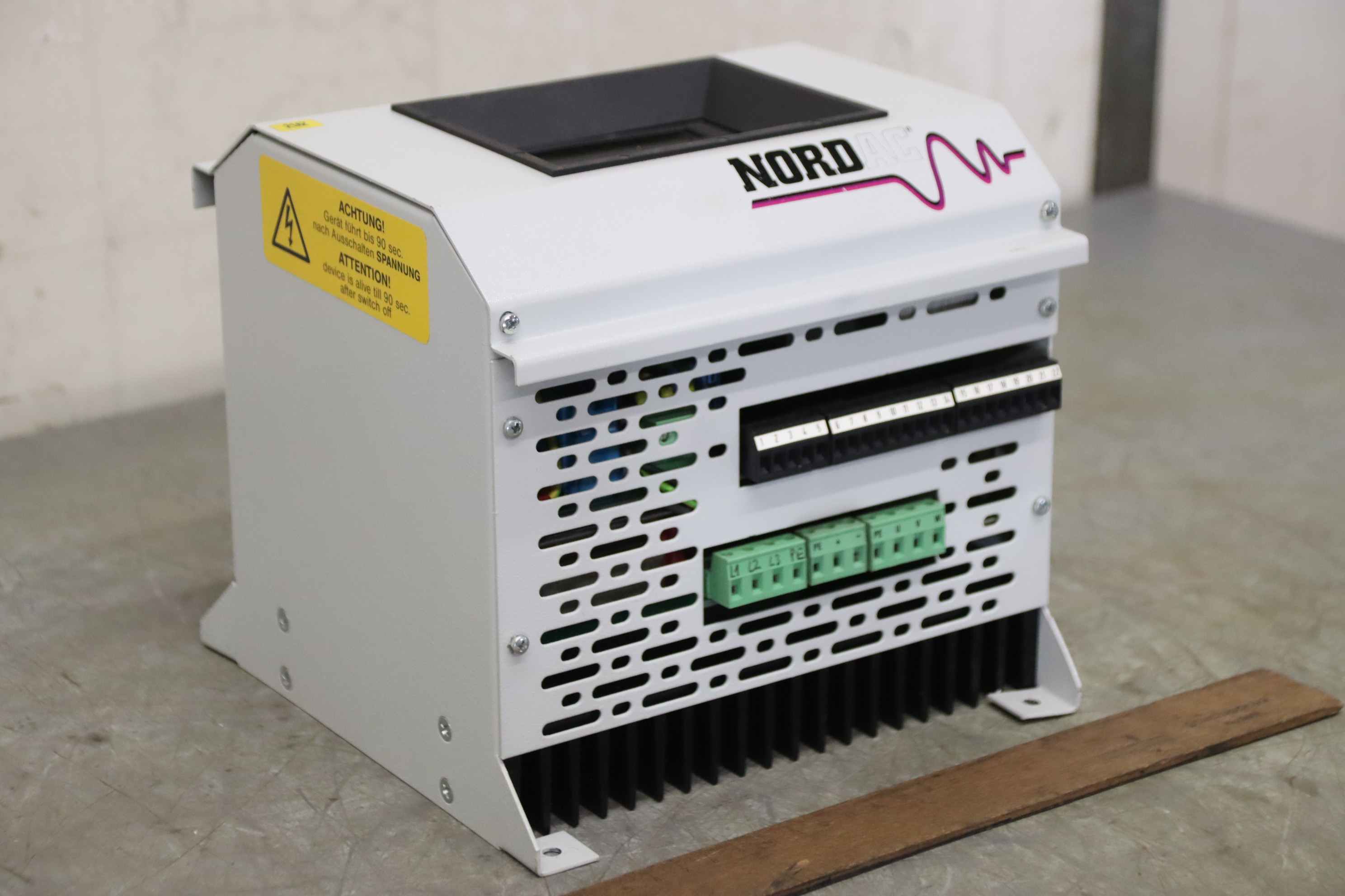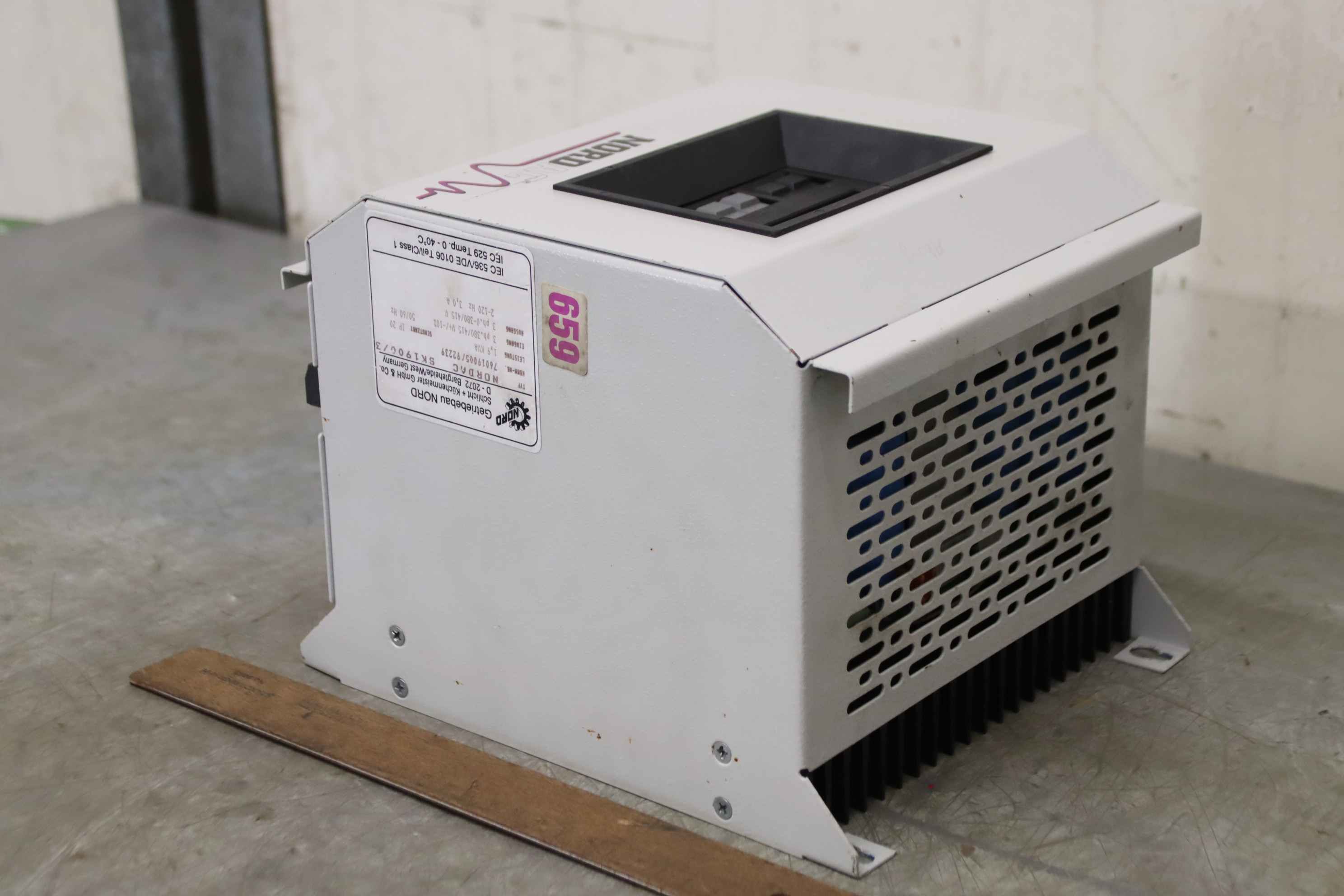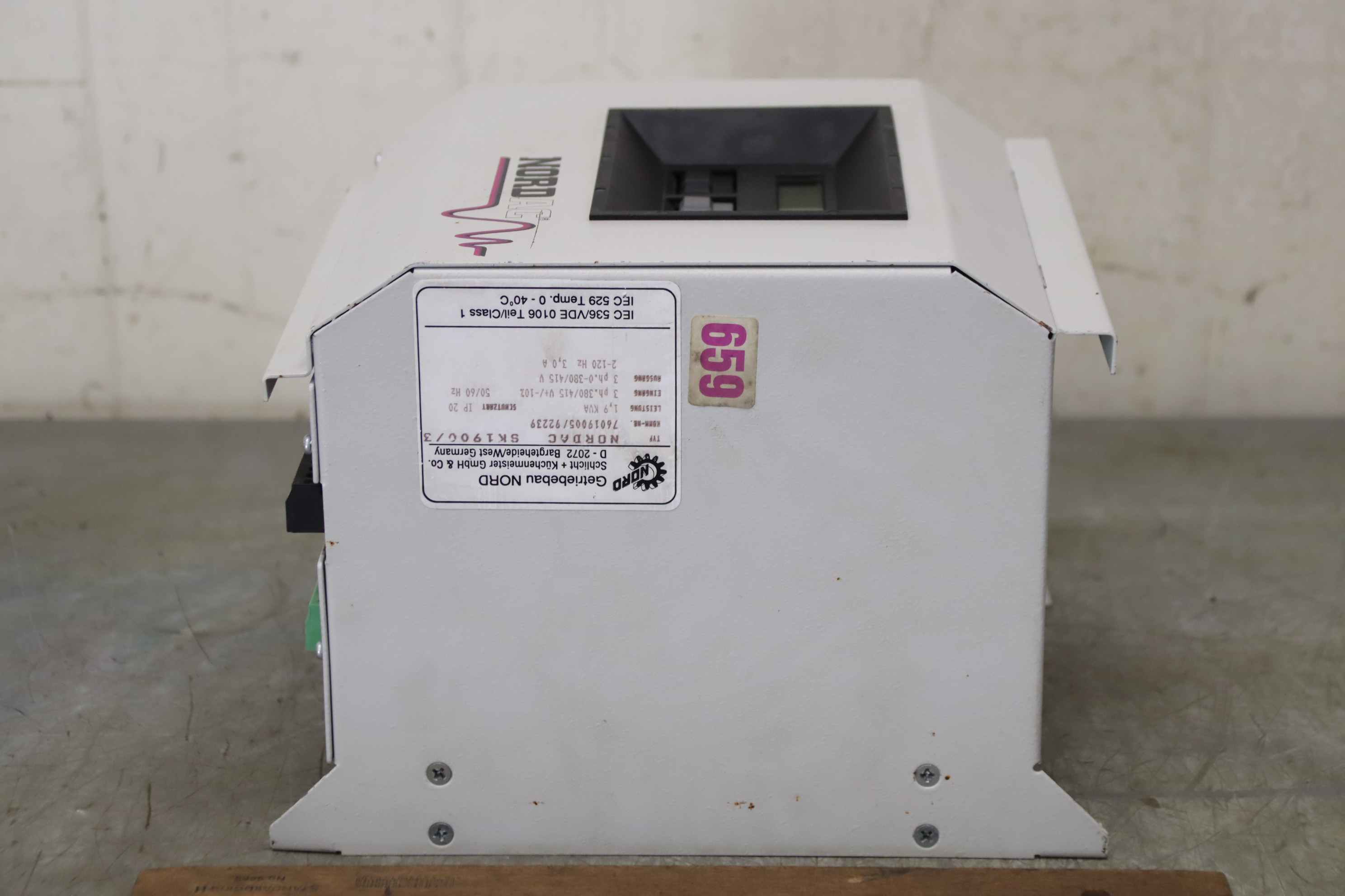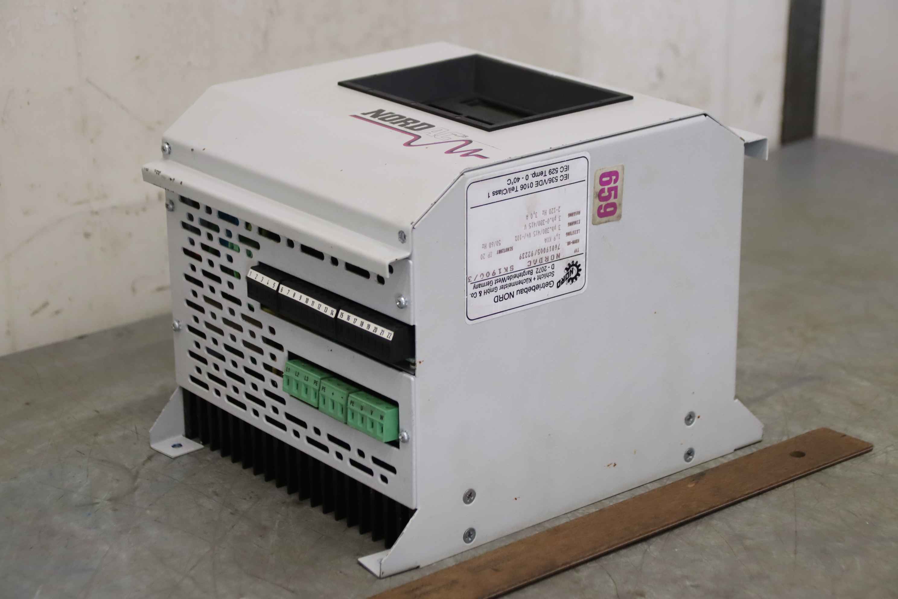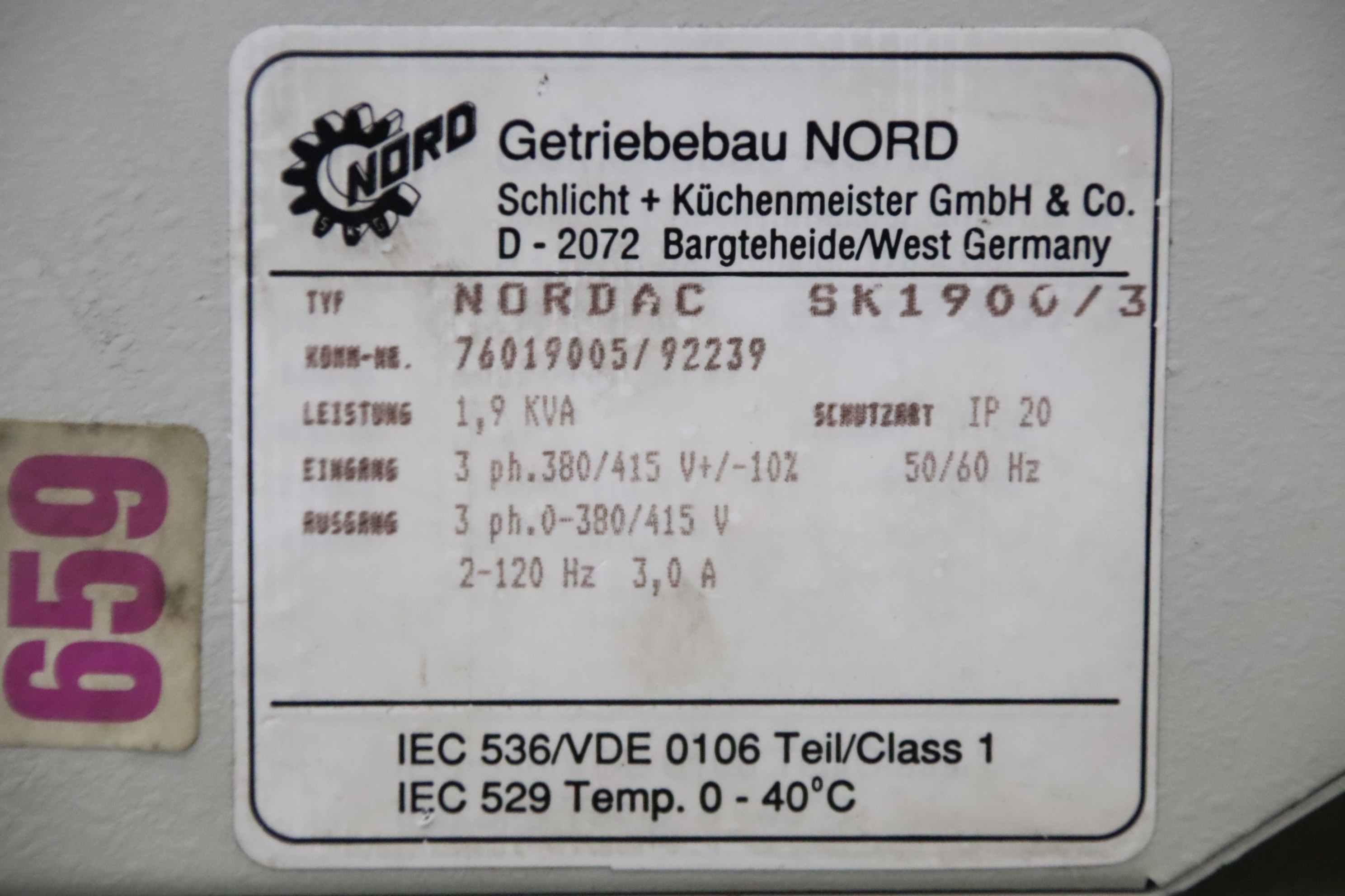 Frequency converter, frequency converter, drive converter, controller, variable speed drive, servo controller, control, converter, PLC control, supply unit, converter, servo drive, drive controller-Manufacturer: Nord, NORDAC frequency converter-Type: SK 1900/3-Power: 1.9 kVA-Input: 3ph 380/415V 50/60Hz-Output: 3ph 0-380/415V 2-120Hz-Dimension: 250/205/H190 mm-Weight: 8.1 kg