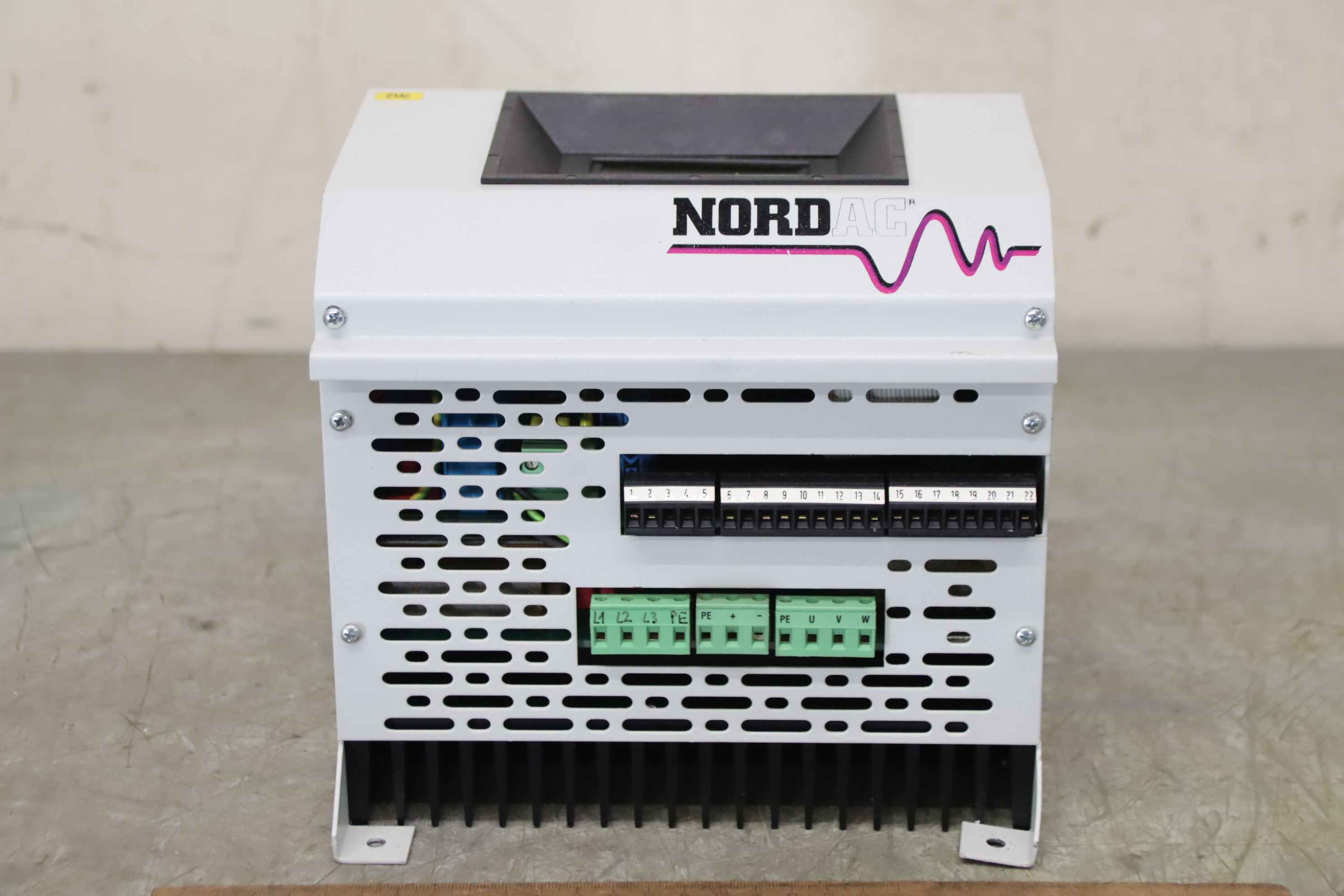Frequency converter, frequency inverter, drive converter, controller, variable speed drive, servo controller, control, converter, PLC control, supply unit, converter, servo drive, drive controller -Manufacturer: Nord, NORDAC frequency converter -Type: SK 1300/3 -Power: 1.3 kVA -Input: 3ph 380/415 V 50/60 Hz -Output: 3ph 0-380/415 V 2-120 Hz -Number: 1x inverter available -Price: per piece -Dimensions: 205/205/H190 mm -Weight: 6.5 kg/piece