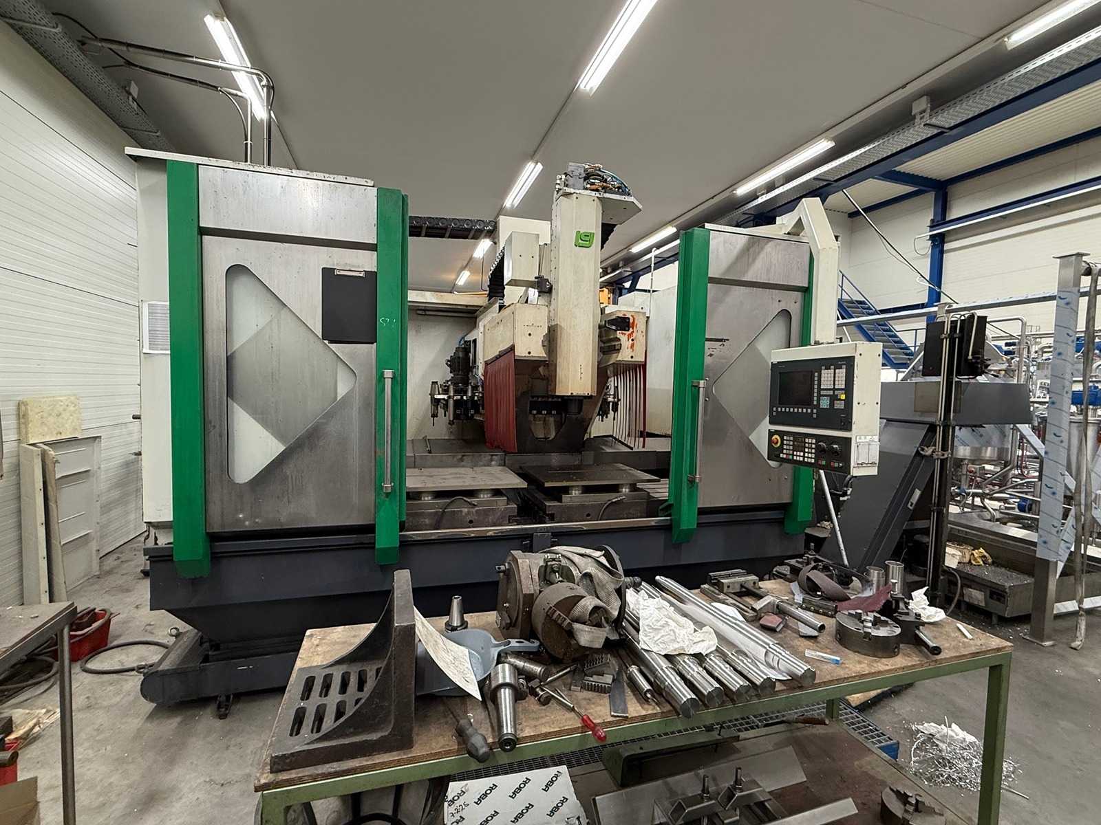 ATC Tool changer 51 positions, Double table 1100 x 600 x 150 mm, Feed rates 30.000 mm/Min, Spil table 190 to 690 mm, the tooling in the ATC are not part off the delivery machine ready for transport and to be assessed on viewing day.