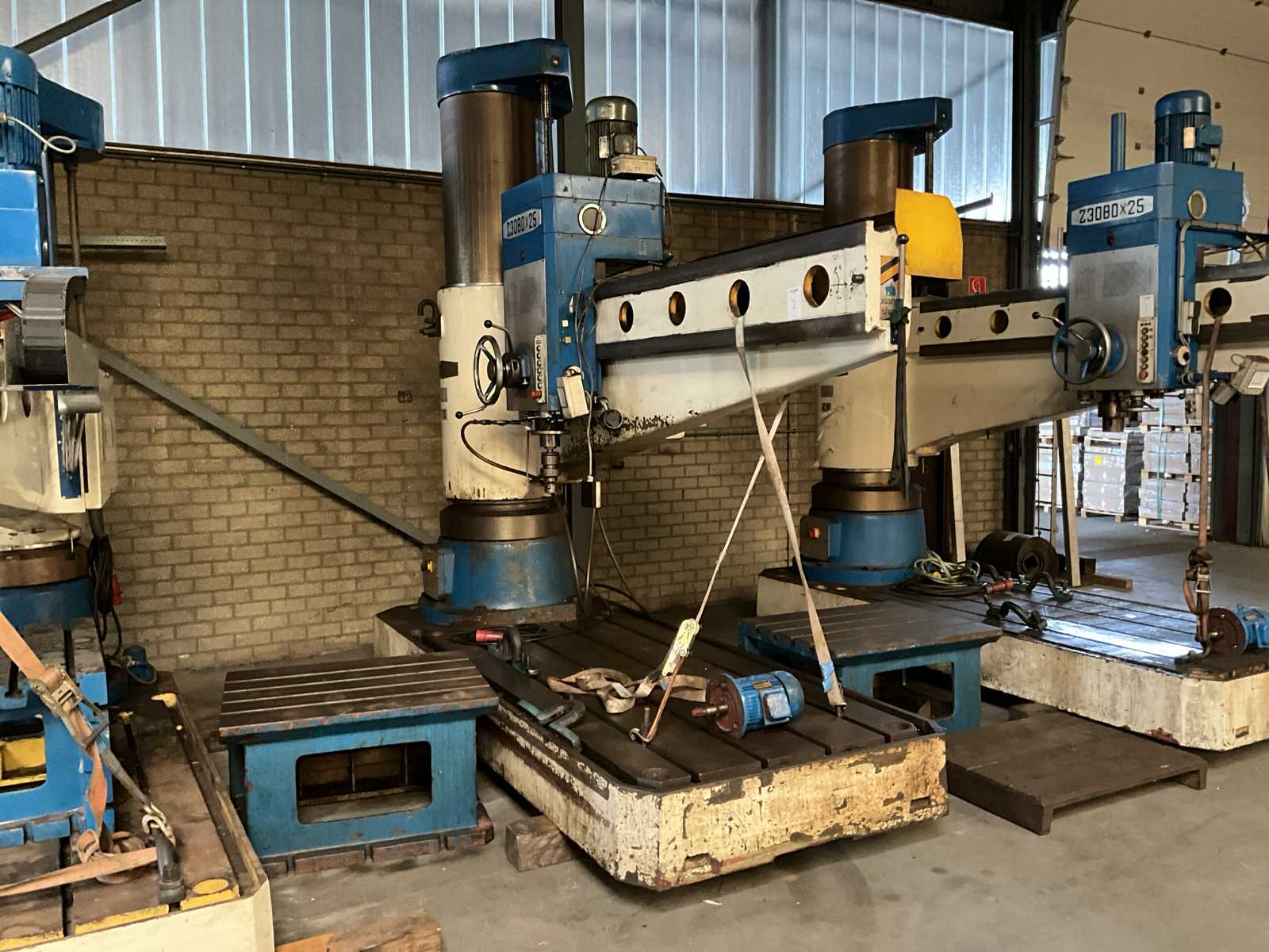 From RPM 16 to RPM 1250; 16 speeds; Drilling capacity: 80mm; Max spacing: 2500mm; 14kva; T-slot table size: 1200 x 2400mm; Z axis: 2300mm and y axis: 2700mm; Distance between spindle axis and column 500mm — 2500mm; equipped with coolant pump and T-slot clamping block: H570 x W800 x L1000mm;