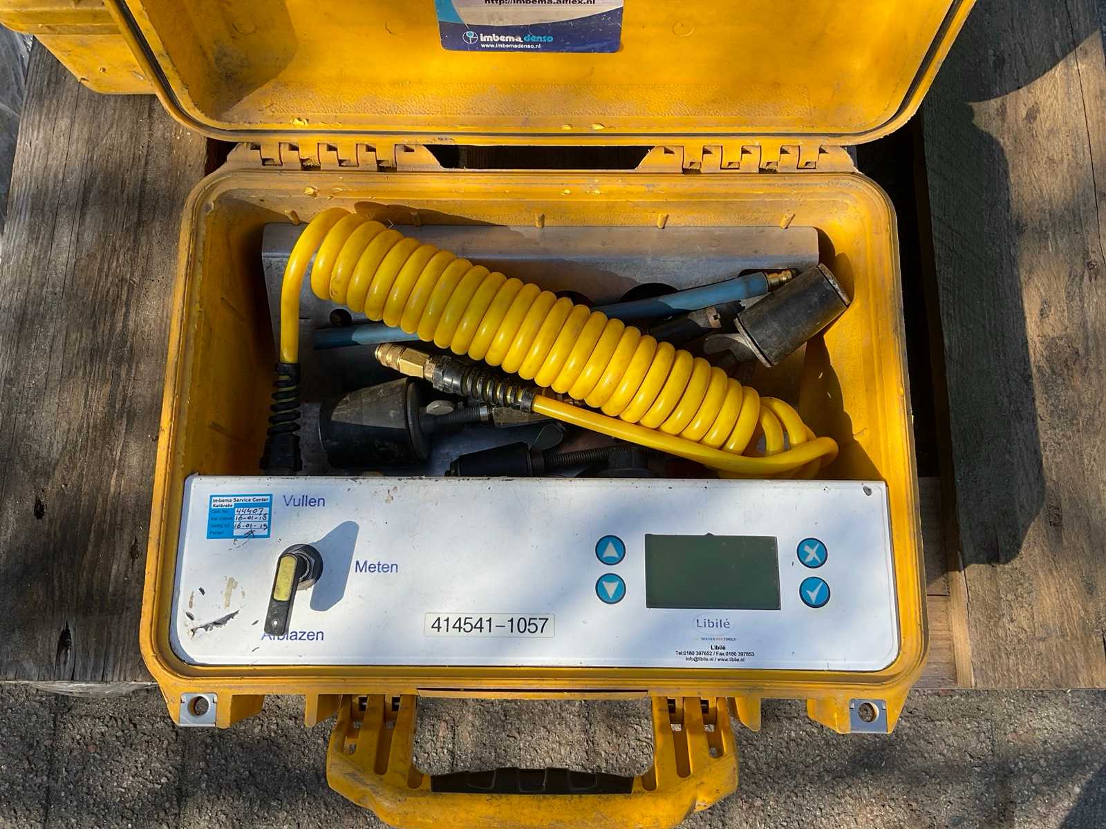 The case contains a digital display and connections for performing leak tests and pressure measurements.