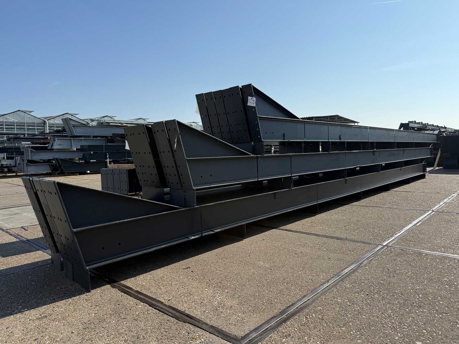 LOTE 17 Tipo: Garaje para coches Material: Acero Año de construcción: 2026 Superficie total: 54 m² Tamaño total (1): L 6000 mm Tamaño total (2): L 9000 mm Altura: 3000 mm Información adicional: Construcción metálica; La construcción consta de: 4 cerchas hechas de tubería cuadrada de 100x100; 8 pilares hechos de tubo cuadrado 100x100; 2 pilares de soporte hechos de tubo cuadrado de 100x100; barra transversal de puerta hecha de perfil U 100; cuñas de unión hechas de tubo rectangular 60x40; refuerzos para pilares hechos de tubería rectangular 30x20; Pintado RAL 7032; La construcción se ensambla con tornillos (extraíbles); Estado: no utilizado; La construcción incluye un certificado de conformidad y un plano de construcción. Auction-ID: A7-45215-17