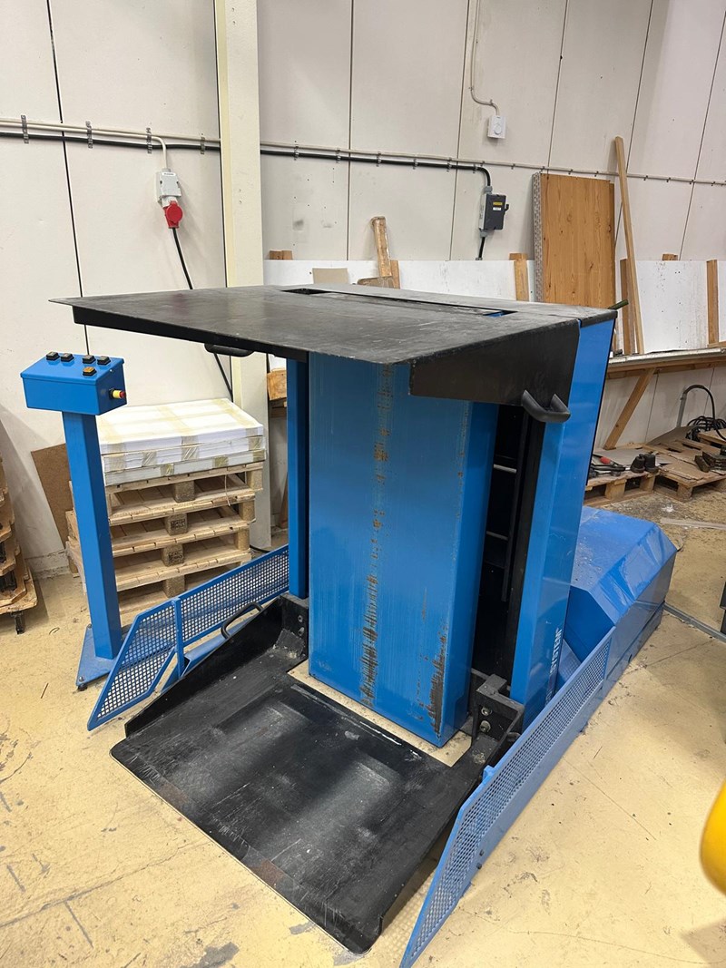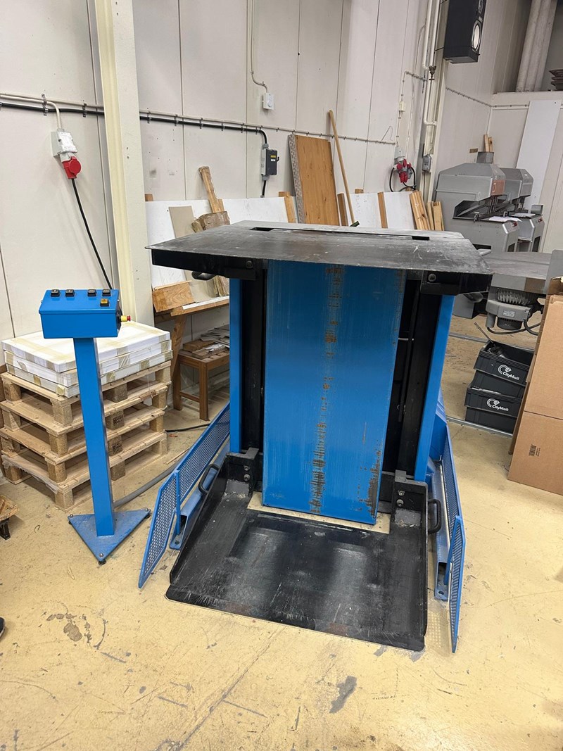Levantador de pilotes Polar LW 450-2; limpiado y probado; Tamaño de la bañera 620x900mm; Capacidad de carga 450kg; Barrera de luz; Carrera 850mm. Elevador de pilotes Polar LW 450-2; limpiado y comprobado; tamaño 620x900mm; capacidad de elevación 450 kg; Sensor fotográfico; Alcance 850mm.