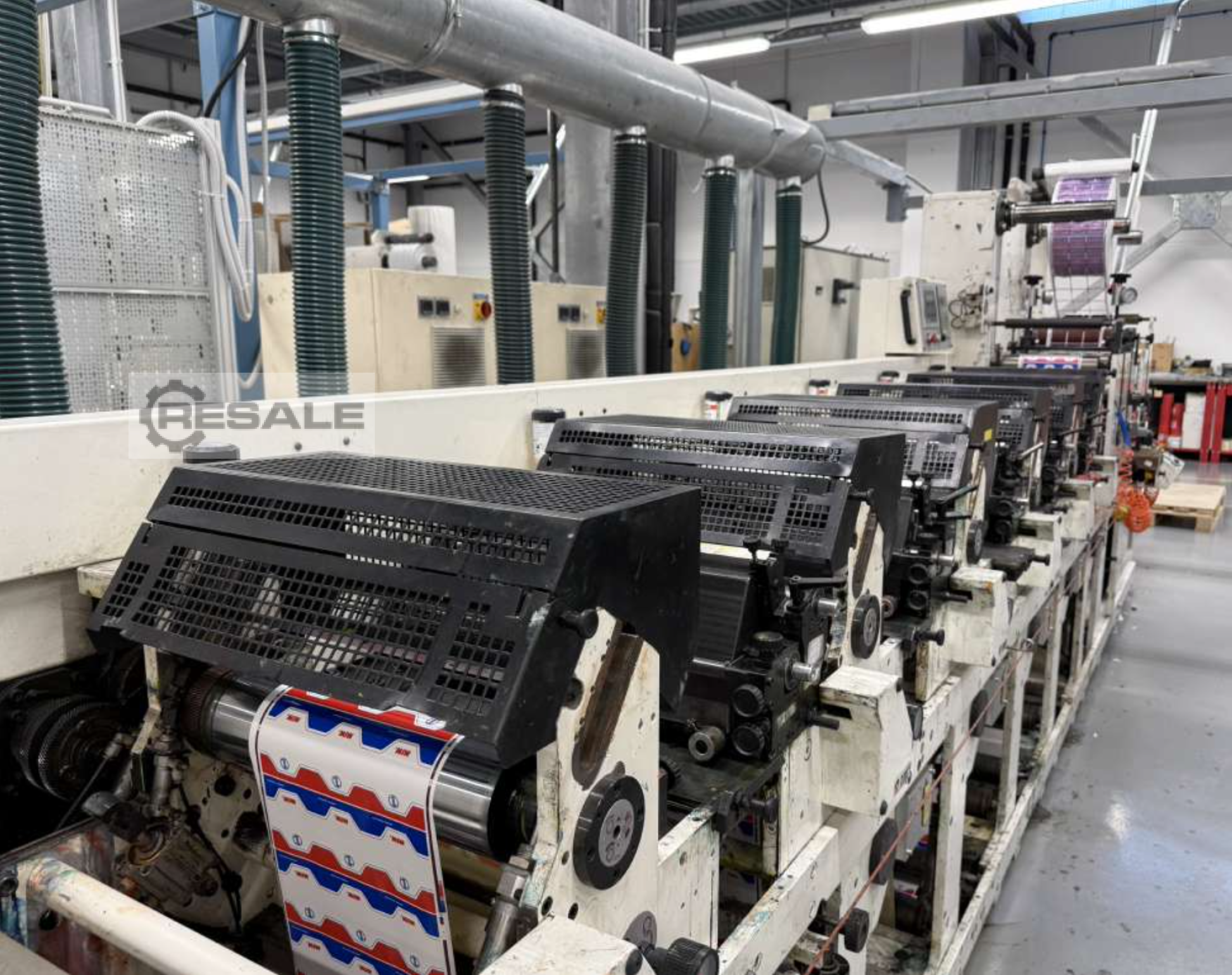 Ancho de impresión: 330 mm Diámetro máximo de desenrollado: 1000 mm Diámetro máximo de rebobinado: 1000 mm Todas las estaciones UV (GEW) Rodillos enfriadores Delam-Relam Lámina fría Laminación Tratamiento Corona Cámara web - BST Estación de troquelado rotativa doble, 1 Gap Master Posibilidad de corte de chapa