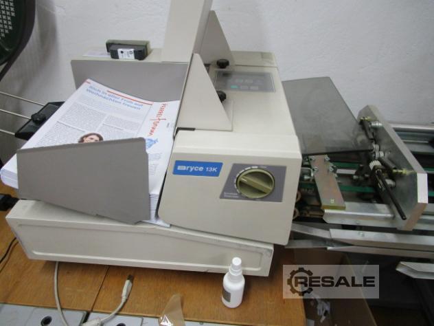 Doble prensado/plegado/prensado de producto de flujo simple o de tejas Estado: revisado, revisado, totalmente funcional, listo para usar Formato mínimo: lomo 180 x ancho 140 mm, número de páginas (45 g/m2) tabloide 8, doble pliego 4 Formato: lomo máx. 450 x ancho 340 mm, número de páginas (45 g/m2) tabloide 128, doble pliego 64 Velocidad mecánica máx.: 10000 rpm/h