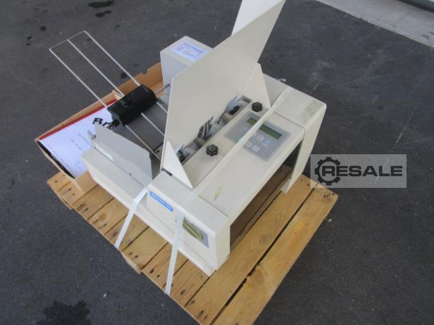 (corte / corte / plegado) M. Nr.: 081058130 // Servicio: folletos A4 (corte a 4 caras, pliegue central) 9 arcos/min (540 arcos/h) Formato: min 210 mm (ancho) x 210 mm (largo) Máx.:320 mm (ancho) x 650 mm (largo) Gramaje (gr./m): min 110/ máx. a 300 Equipo / más información: Ranuras: 1 x cuchilla de pliegue transversal a la dirección de la curva 10 pliegues programables, programables en pasos de 0,1 mm