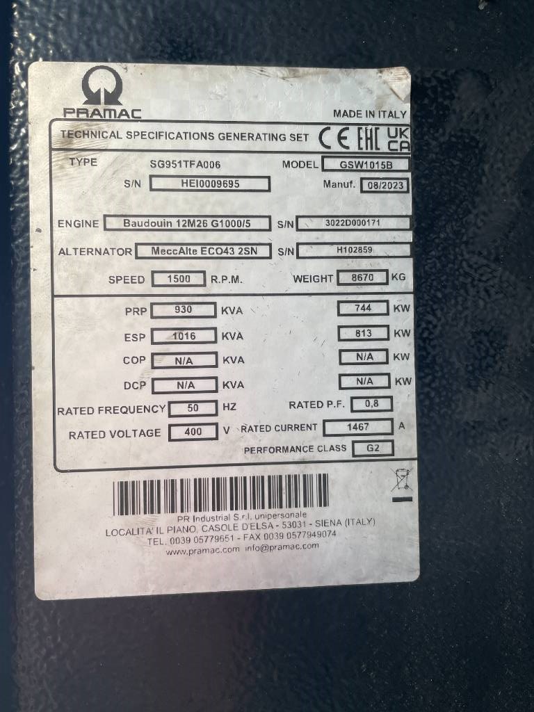 Modelo:GSW1015B - 1016kVA Used Generator - DPX-12660