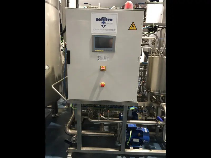 Filtro de flujo cruzado utilizado SEFILTRA hasta 3000 L/h Introducción a la filtración de flujo cruzado En primer lugar, la filtración de flujo cruzado SEFILTRA es una solución de vanguardia en el campo del embotellado. Este modelo específico, el BF2-S SEF, producido en 2020, destaca por su capacidad para procesar hasta 3000 litros por hora. Además, la filtración de flujo cruzado utiliza membranas orgánicas para una eficiencia óptima, representando una técnica avanzada y fiable en tratamiento con líquidos. Características técnicas del BF2-S SEF Además, el BF2-S SEF de Sefiltra está actualmente en producción y sigue demostrando su eficiencia y