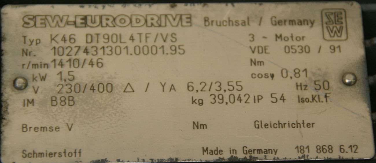 Tipo de máquina: Gear motor 1.5 kW 46 rpm