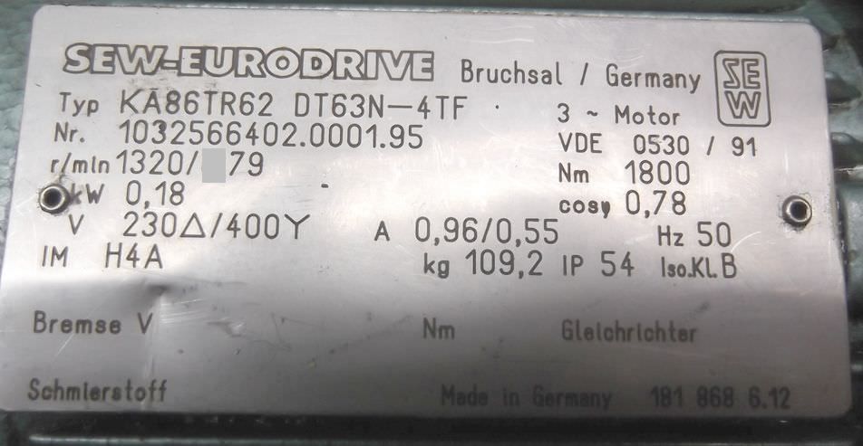 Tipo de máquina: Gear motor 0.18 kW 79 rpm