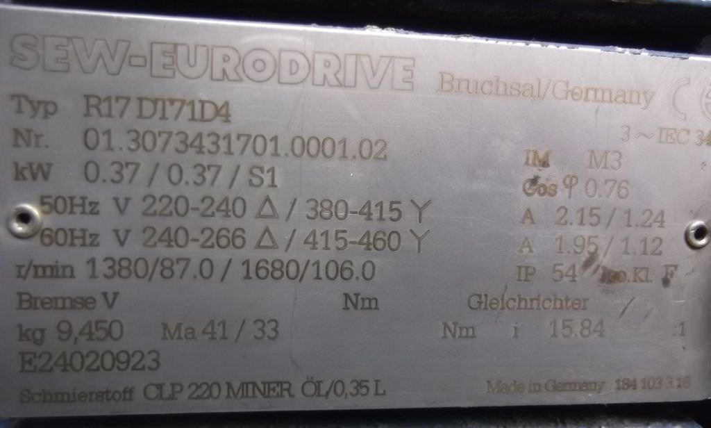 Tipo de máquina: Geared motor 0.37 kW 87/106 rpm