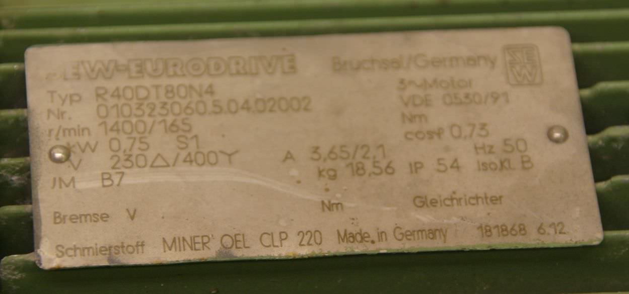 Tipo de máquina: Geared motor 0.75 kW 165 rpm