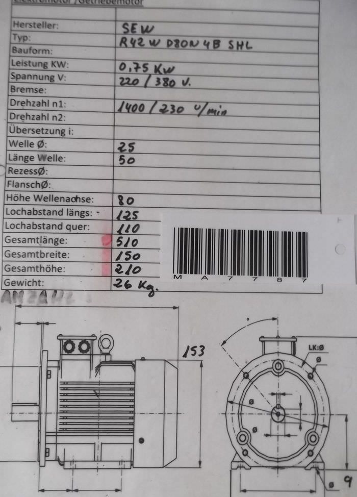 Tipo de máquina: Gear motor 0.75 kW 230 rpm
