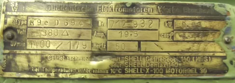 Tipo de máquina: Gear motor 9 kW 179 rpm