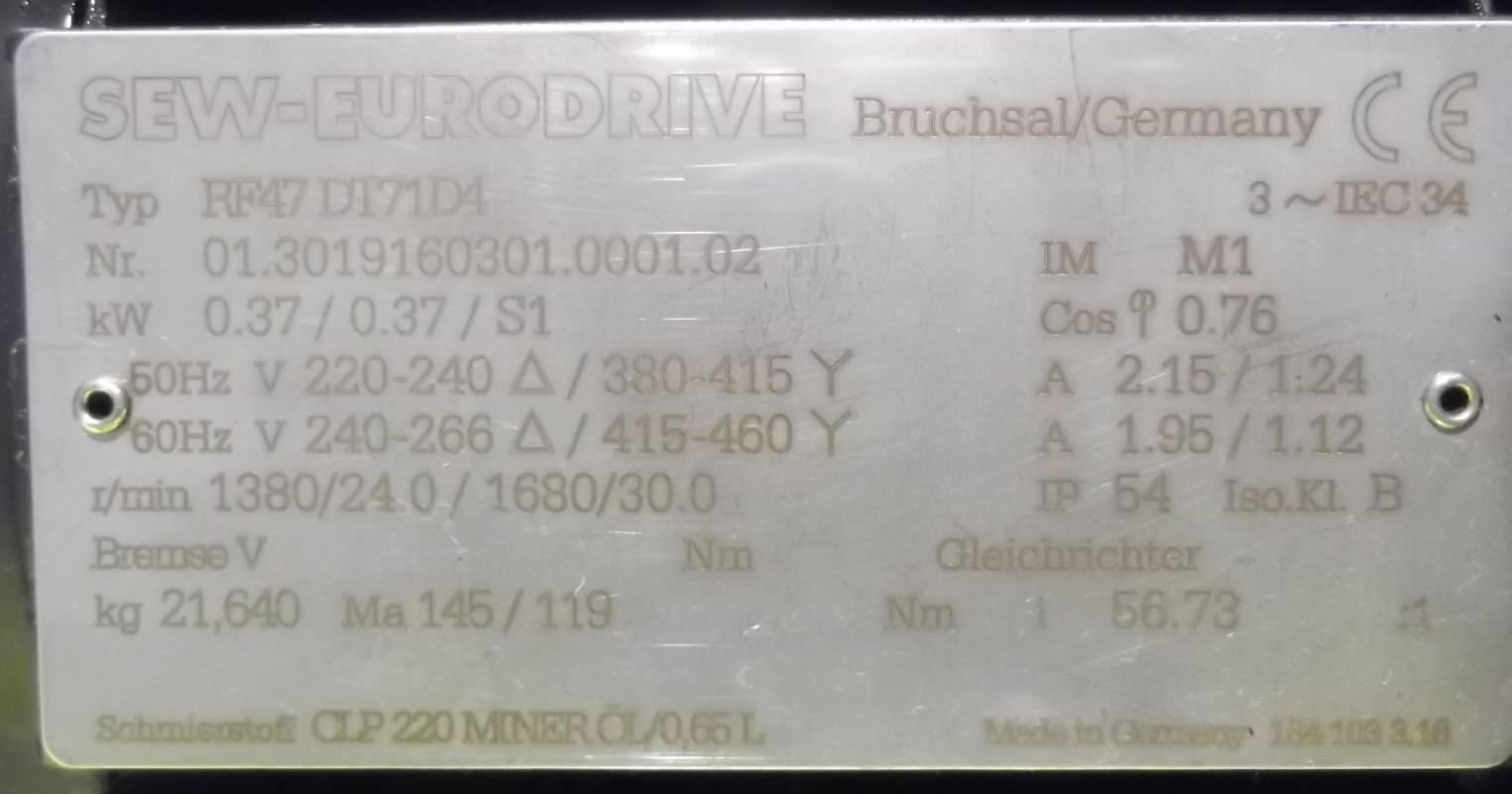 Tipo de máquina: Electric motor 0.37 kW 1380 Rpm