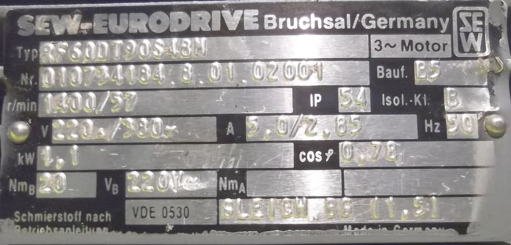 Tipo de máquina: Gear motor 1.1 kW 57 rpm