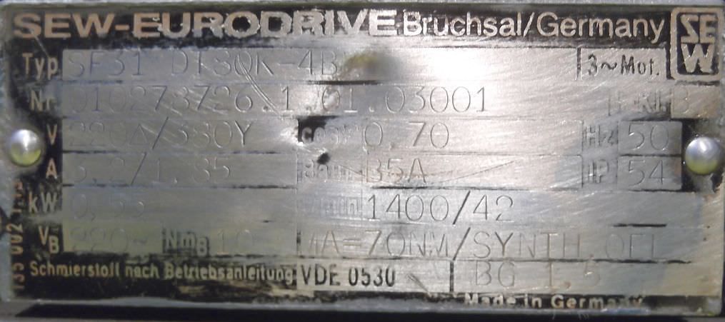 Gear motor 0.55 kW 42 rpm SEW EURODRIVE SF31DT80K-4B