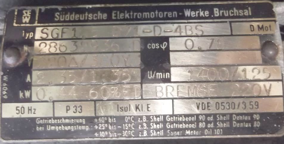 Tipo de máquina: Gear motor 0.44 kW 125 rpm